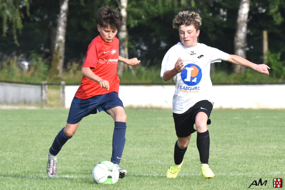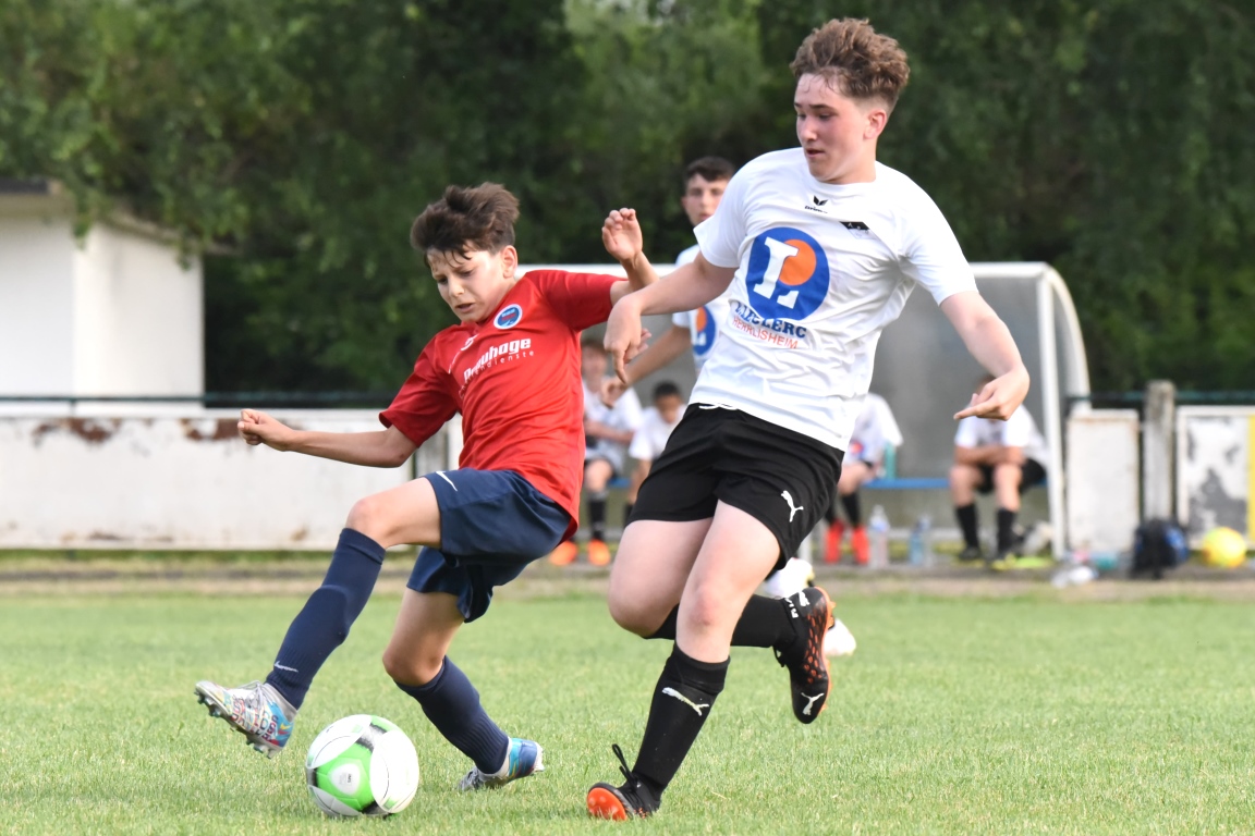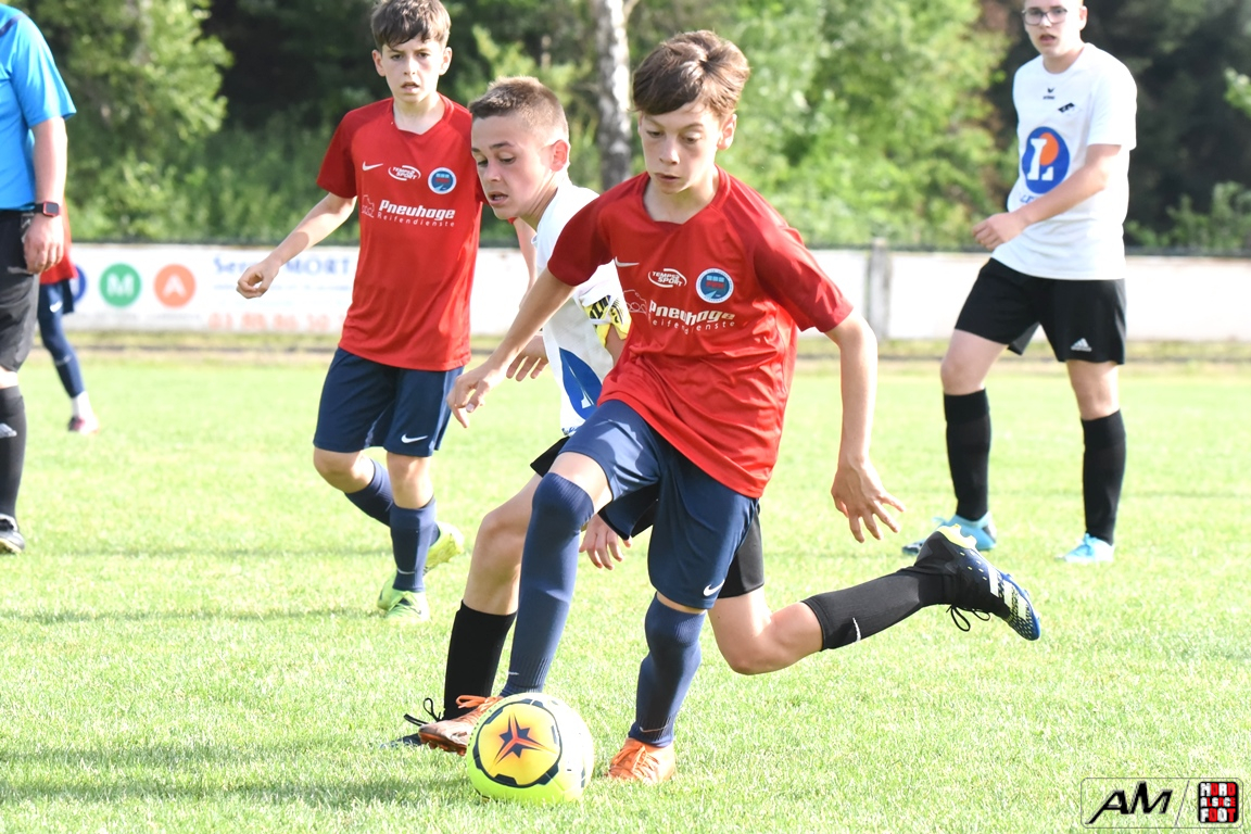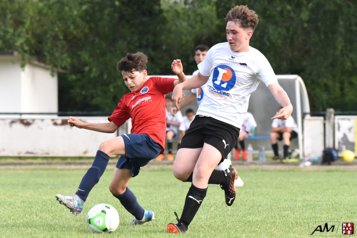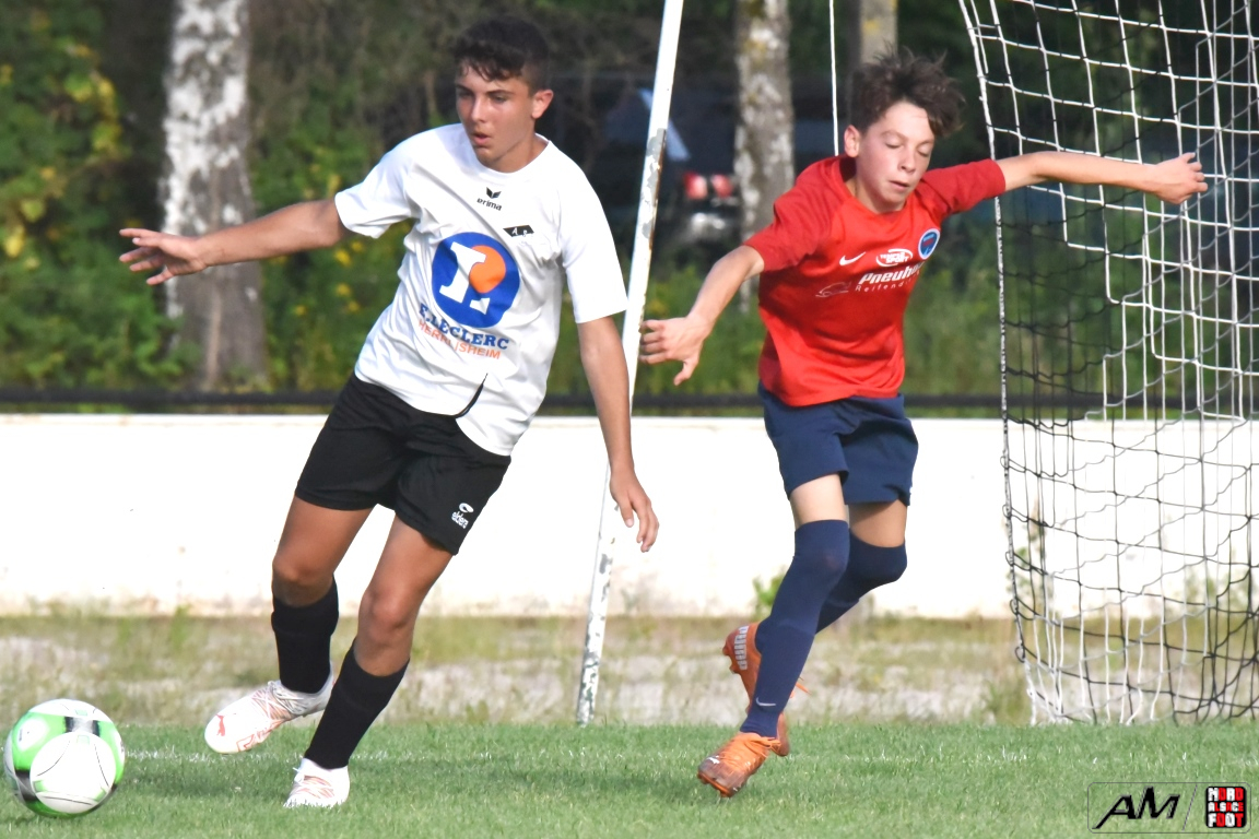 En clôture du Tournoi Gerard Zillox organisé par l’AS Betschdorf, les U15 du club offraient l’hospitalité aux U14 du FCSR Haguenau avec la ferme intention d’offrir une belle parenthèse au public resté en nombre pour assister à la rencontre. Après une première période se soldant par un large avantage en faveur des Haguenoviens grâce à des réalisations signées Ladoire Botelho Eliot (19e), Fornecker Tom (22e), Schmitzer Lucas (33e et 35e) et Tillmann Victor (39e), les blancs et noirs allaient nous proposer du mieux en seconde période mais, malgré toutes les forces jetées dans la bataille, les rouges et bleus allaient corser l’addition à trois reprises grâce à une réalisation signée Ferbach Mathis (47e) et grâce à un doublé signé Condemi Giani (56e et 90e), cette avalanche de buts permettant finalement au U14 du FCSR Haguenau de s’imposer sur ce score sans appel de 0-8! Retrouvez, ci-dessous, quelques images de cette rencontre et, pour en apprécier le contenu, veuillez cliquer sur l’une d’entre-elles pour afficher le diaporama.