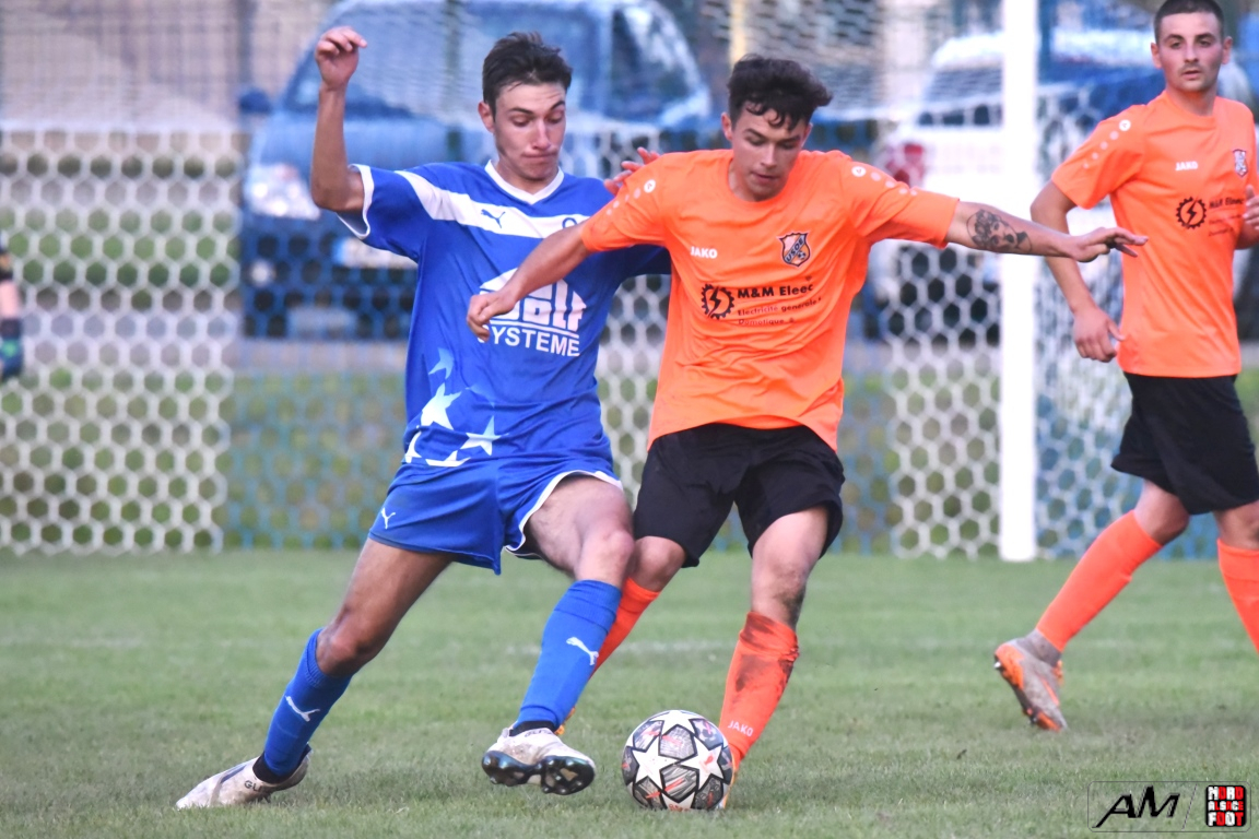 A l’occasion de la troisième rencontre comptant pour la troisième soirée du Challenge Nord Alsace Foot (Groupe C), l’US Oberlauterbach 4 affrontait le FCE Schirrhein 4 afin de tenter d’aller chercher une nouvelle victoire pour s’emparer de la première place de la poule. Après une première période se soldant par un court avantage en faveur des “Oranges” grâce à une réalisation signée Albenesius Corentin (8e), les deux équipes allaient se neutraliser en seconde période avant qu’un penalty ne soit accordé à l’USOE 4 à la 40e minute de jeu et c’est Khaled Lyes qui se chargea de la transformer victorieusement. Retrouvez, ci-dessous, quelques images de cette rencontre et, pour en apprécier le contenu, veuillez cliquer sur l’une d’entre-elles pour afficher le diaporama.