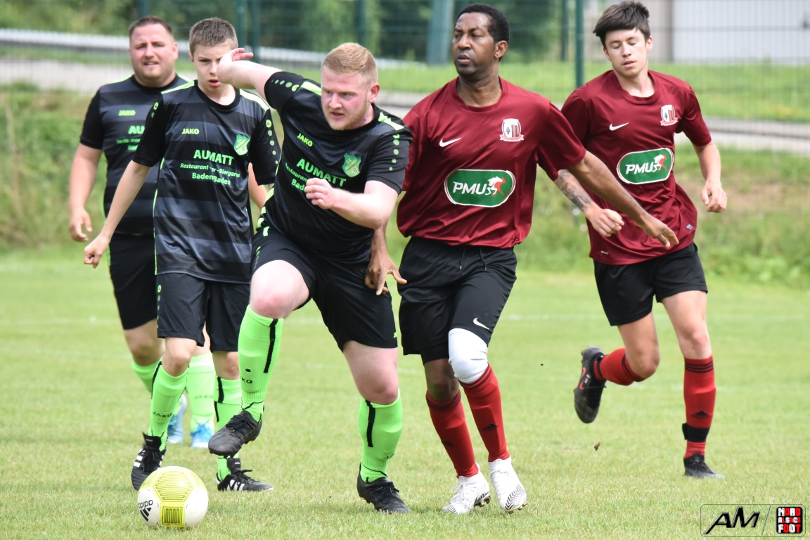 A l’occasion du match pour la 7e place du Challenge Nord Alsace Foot, la SS Beinheim 2 affrontait le SC Roeschwoog 3 afin de tenter de conclure la compétition par un succès face à une équipe à leur portée. Après une première période se soldant par un score nul et vierge, il fallut attendre la dernière minute du temps réglementaire pour voir les rouges et noirs s’adjuger la victoire grâce à une réalisation signée Bauer Kellian! Retrouvez, ci-dessous, quelques images de la rencontre et, pour en apprécier le contenu, veuillez cliquer sur l’une d’entre-elles pour afficher le diaporama.