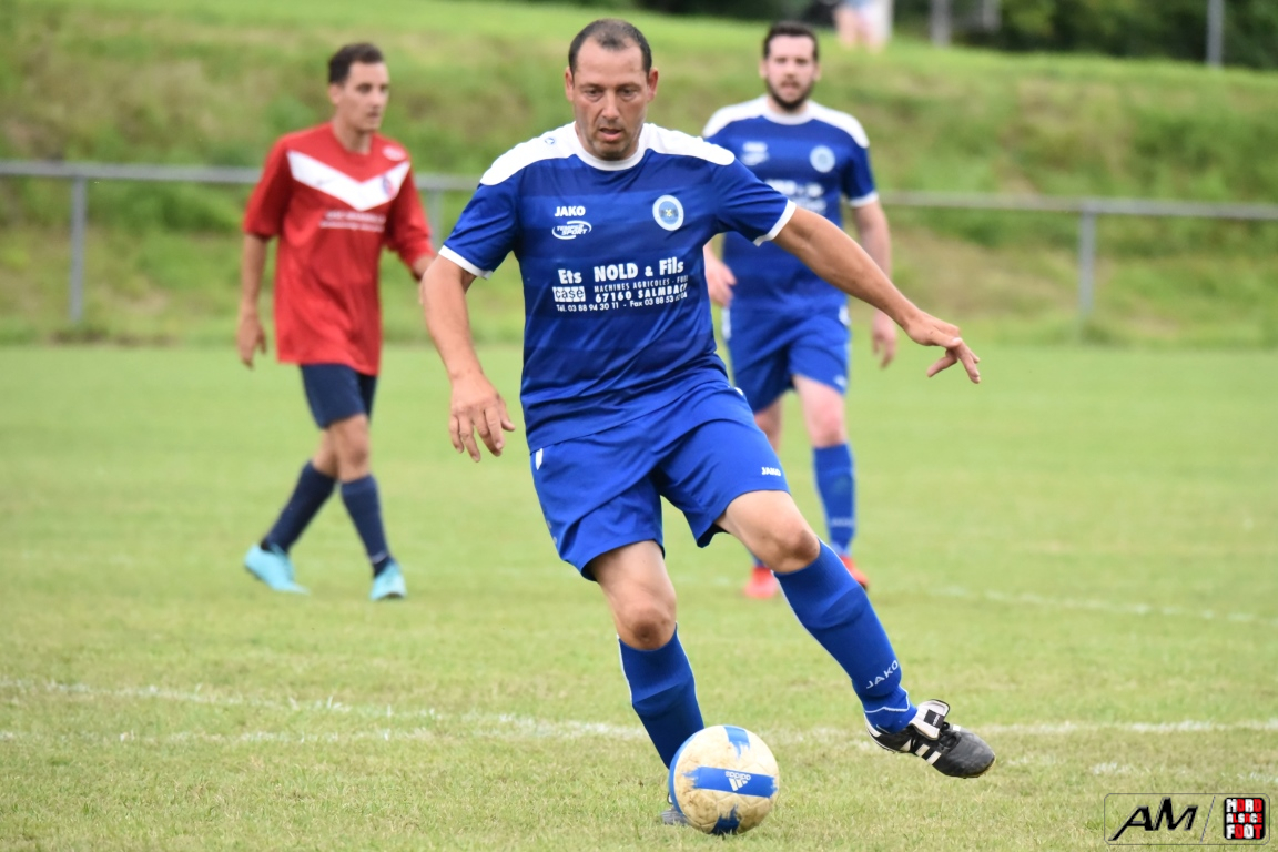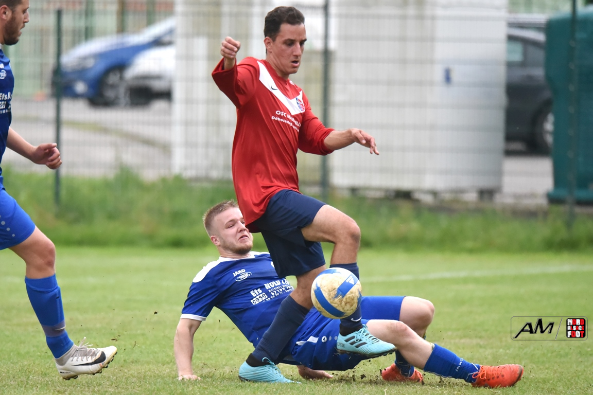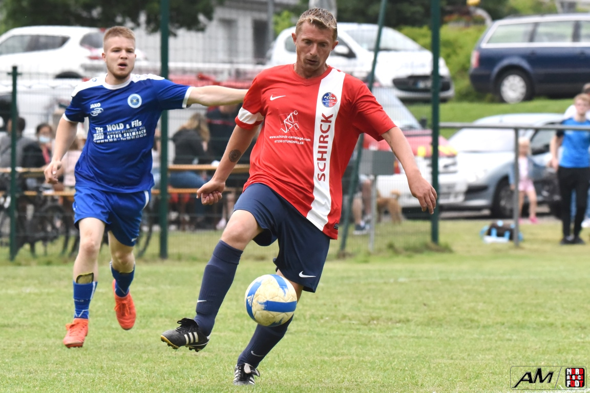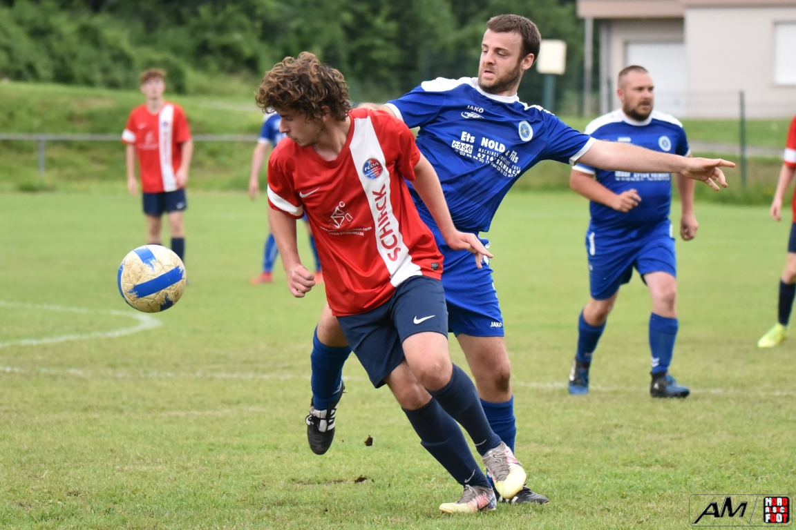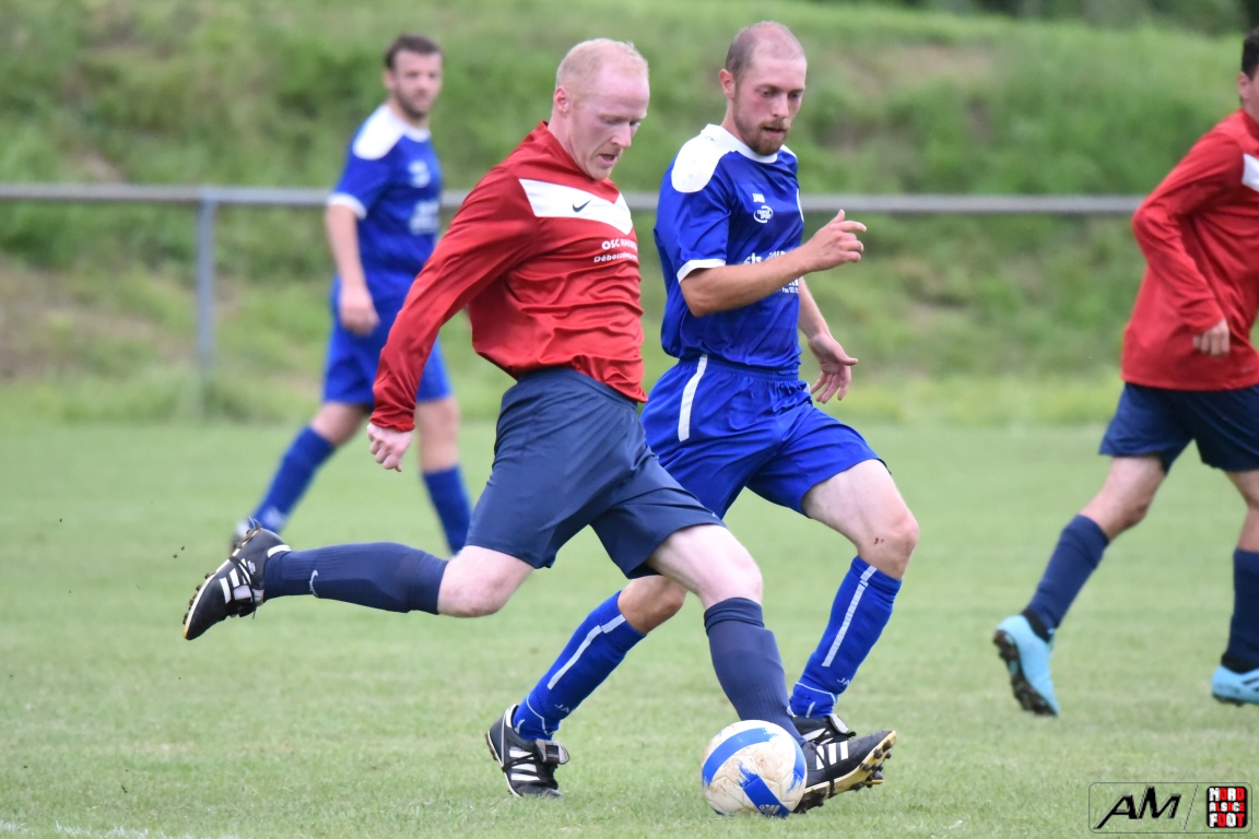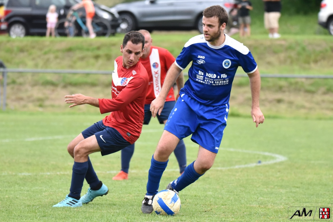 A l’occasion de la première demi-finale du Challenge Nord Alsace Foot, le FC Oberroedern/A. 3 affrontait l’ASSE Salmbach afin de tenter de s’adjuger une place en finale. Après une première période se soldant par un avantage confortable en faveur des hommes de Messmer Martial grâce à un doublé de Christmann Olivier (6e sp et 25e), les deux formations allaient se neutraliser tout au long de la seconde période avant que les rouges et bleus ne finissent par réduire la marque en toute fin de partie grâce à un penalty transformé par Hummel Yann (50e), ce qui n’empêcha pas l’ASSE Salmbach de s’imposer sur ce score de 1-2! Retrouvez, ci-dessous, quelques images de la rencontre et, pour en apprécier le contenu, veuillez cliquer sur l’une d’entre-elles pour afficher le diaporama.