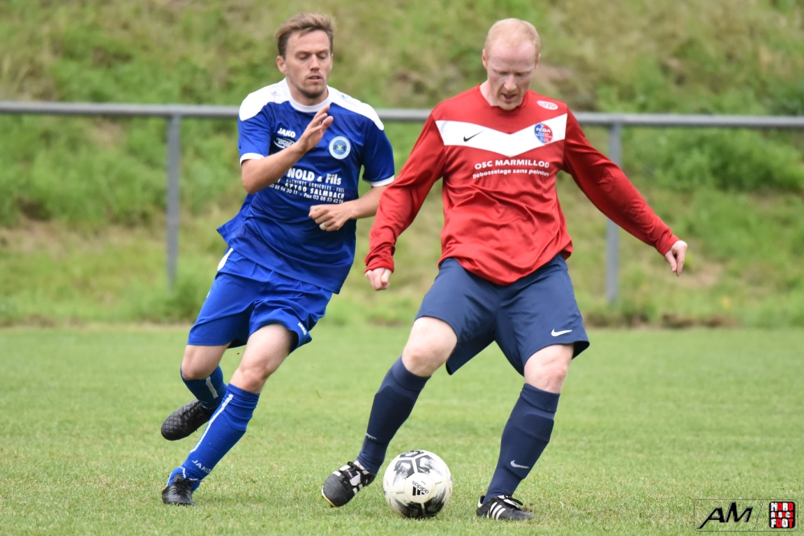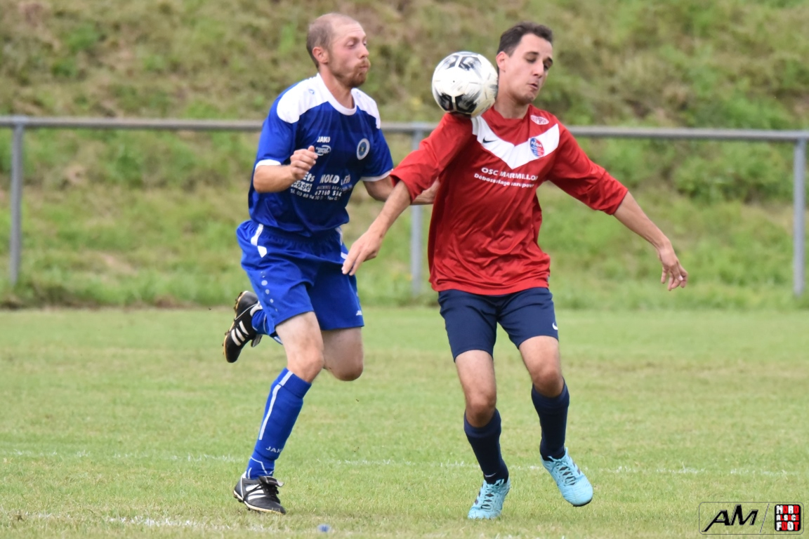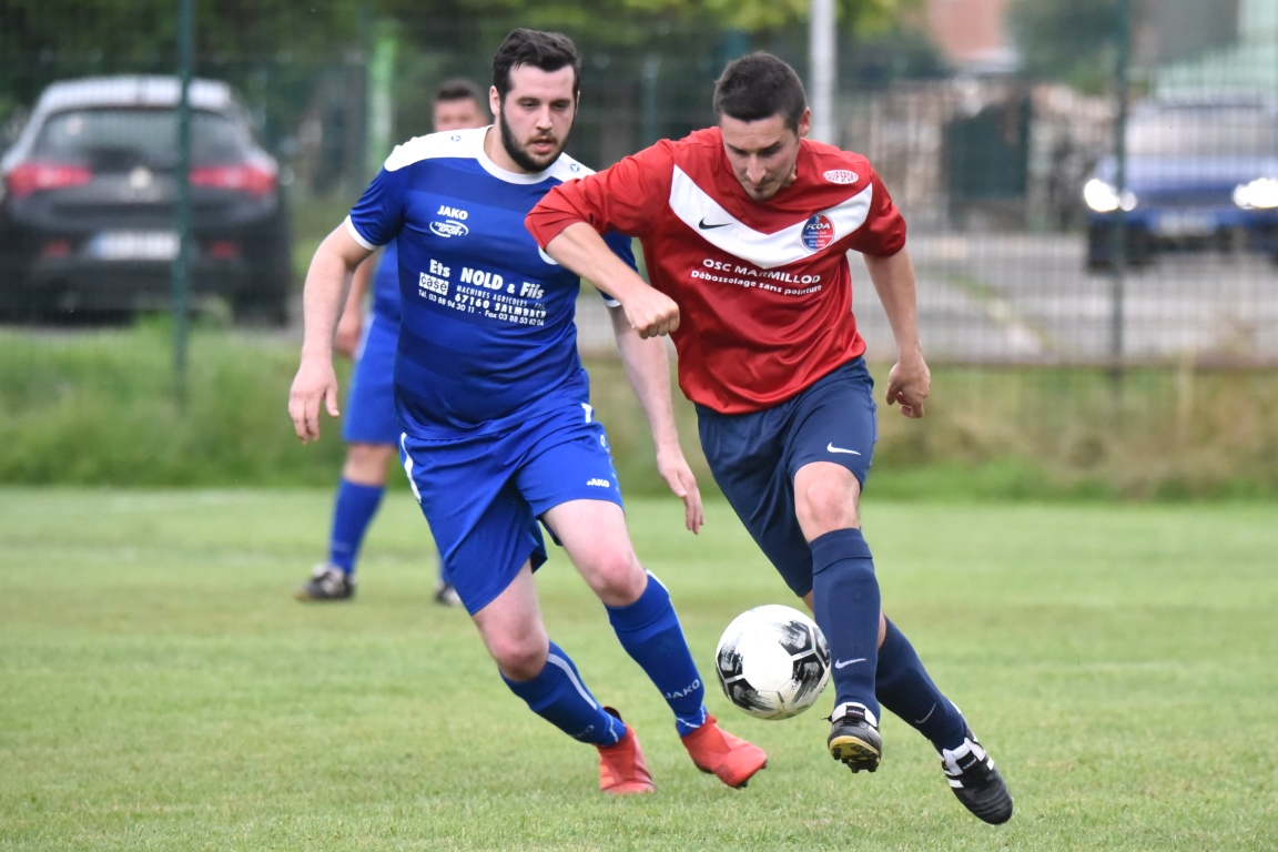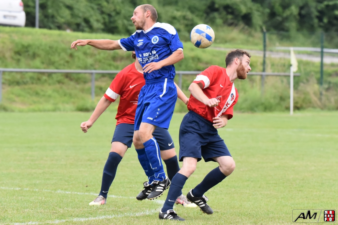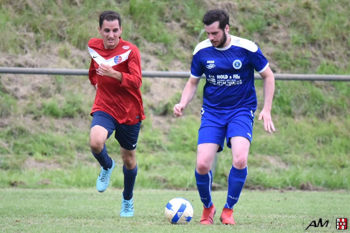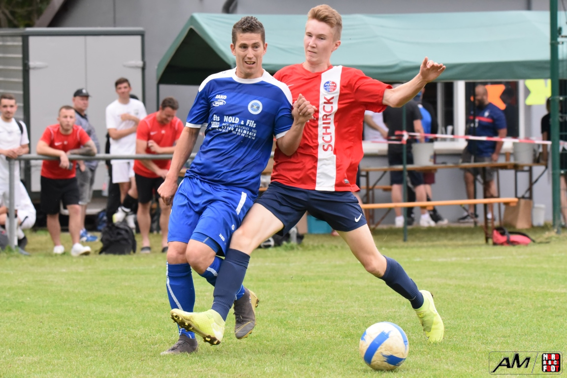 A l’occasion de la première demi-finale du Challenge Nord Alsace Foot, le FC Oberroedern/A. 3 affrontait l’ASSE Salmbach afin de tenter de s’adjuger une place en finale. Après une première période se soldant par un avantage confortable en faveur des hommes de Messmer Martial grâce à un doublé de Christmann Olivier (6e sp et 25e), les deux formations allaient se neutraliser tout au long de la seconde période avant que les rouges et bleus ne finissent par réduire la marque en toute fin de partie grâce à un penalty transformé par Hummel Yann (50e), ce qui n’empêcha pas l’ASSE Salmbach de s’imposer sur ce score de 1-2! Retrouvez, ci-dessous, quelques images de la rencontre et, pour en apprécier le contenu, veuillez cliquer sur l’une d’entre-elles pour afficher le diaporama.