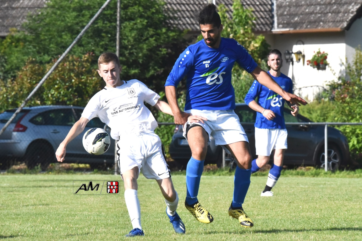 A l’occasion de la dernière rencontre amicale comptant pour la fête d’été organisée par le FC Eschbach, l’AS Mertzwiller affrontait l’International Meinau Académie pour une premier match de préparation au cours duquel, les jeunes de l’ASM auront pu être mis en lumière pour leur première apparition dans l’équipe fanion. Après une première période se soldant par un court avantage en faveur des Interistes (0-1), ce derniers allaient faire le break à la 54e minute de jeu avant de finir par s’imposer face à de vaillants mertzwillerois. Retrouvez, ci-dessous, quelques images de cette rencontre et, pour en apprécier le contenu, veuillez cliquer sur l’une d’entre-elles pour afficher le diaporama.