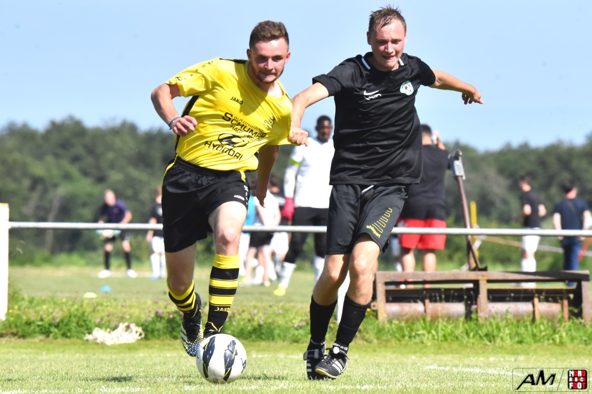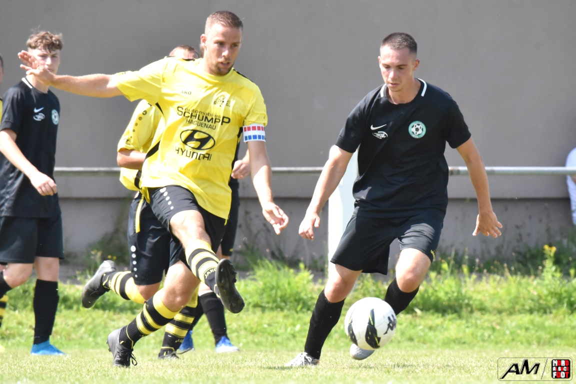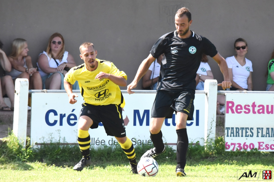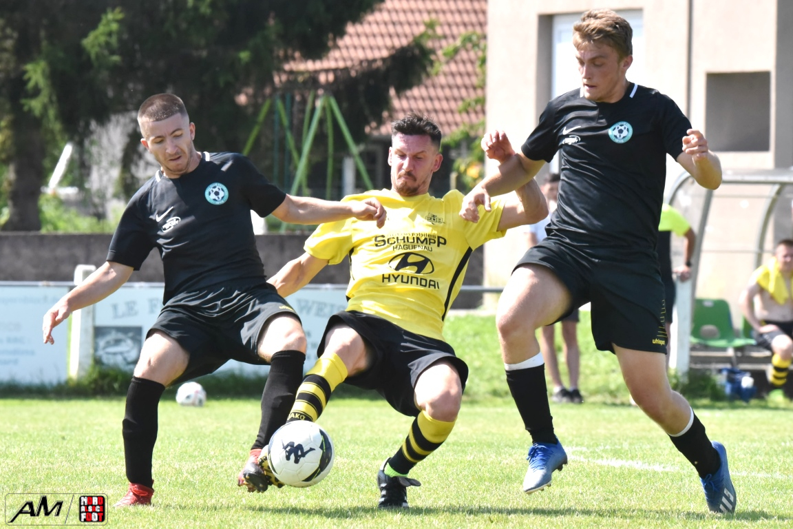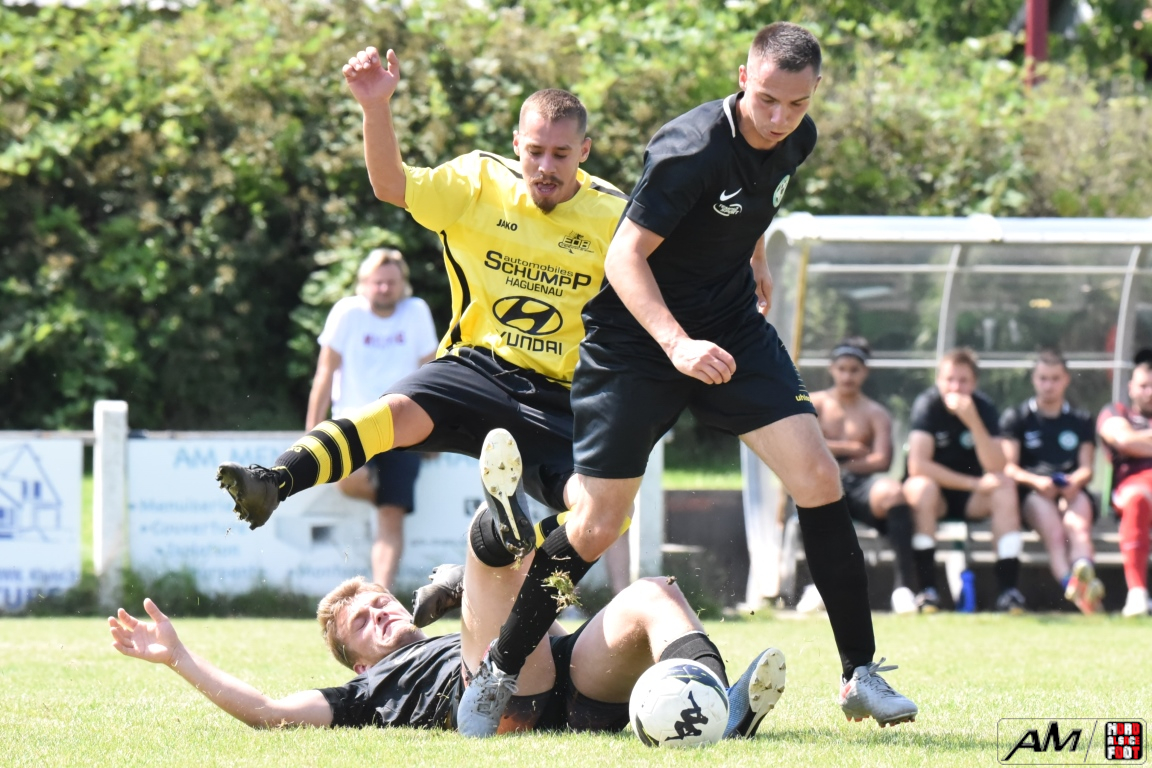 A l’occasion de la quatrième rencontre amicale comptant pour la Fête d’été organisée par le FC Eschbach, l’entente Drachenbronn/Birlenbach affrontait un autre pensionnaire de District 4 en l’occurrence le FC Niederschaeffolsheim pour leur second match de préparation. Après une première période se soldant par un court avantage en faveur des ententistes grâce à des réalisations signées Hickel Thibault (19e) et Kochert Luc (25e) contre un but inscrit par Pfeil Arnaud (7e) pour les Niederschaeffolsheimois, les jaunes et noirs allaient prendre le large en seconde période grâce à un triplé de Hickel Thibault (59e et 89e) et grâce à une réalisation signée Weureuther Simon (69e), cette avalanche de but permettant aux hommes de Hickel Laurent de s’imposer sur ce score de 5-1.