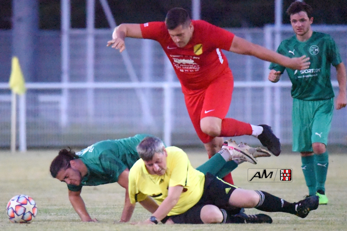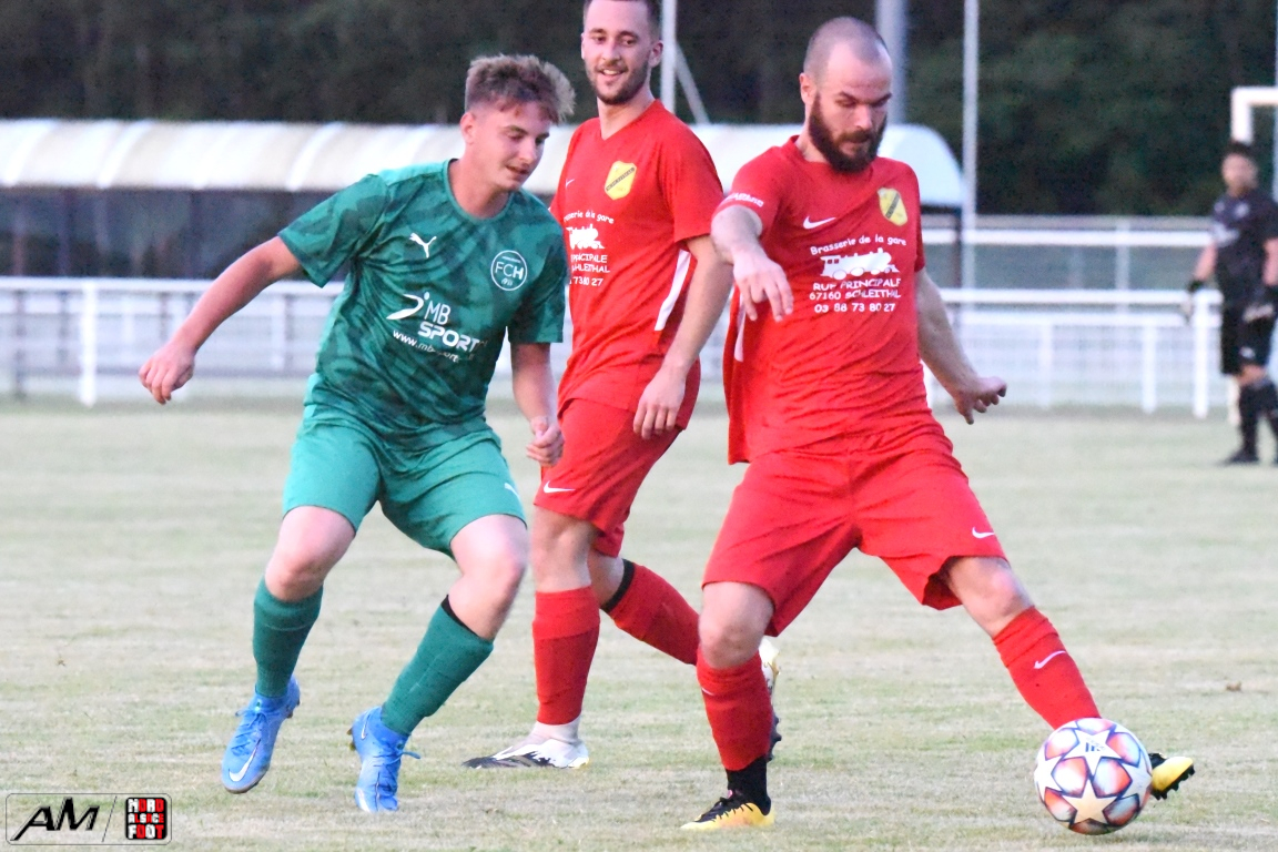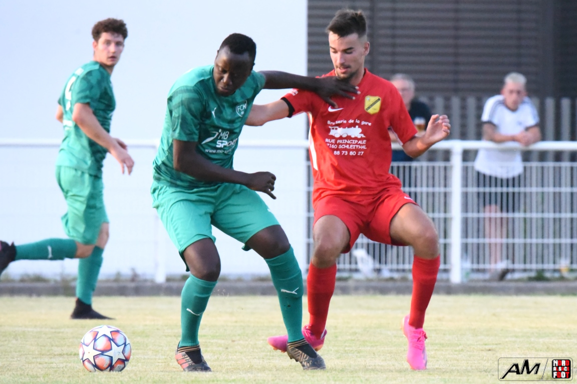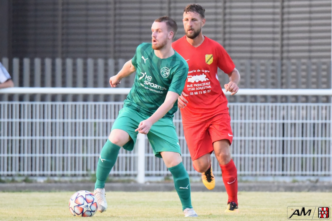 A l’occasion du second et dernier match amical comptant pour la troisième soirée du “Foot en fête” organisé par le FC Seltz, l’US Schleithal de Schmitt Geoffrey affrontait le FC Herrlisheim de Camolli Joël avec la ferme intention de faire parler leur expérience face à la jeunesse herrlisheimoise. Après une première période se soldant par un court avantage en faveur des Schleithalois grâce à des réalisations signées Schmitt Jonas (57e) et Mansour Fawaz (43e) contre un penalty transformé par Criqui Lucas (22e) pour les verts, ce dernier allait mettre les pendules à l’heure en transformant un autre penalty à la 76e minute de jeu avant que Fischer Michel n’offre définitivement la victoire aux siens à la 79e minute de jeu. Retrouvez, ci-dessous, quelques images de cette rencontre et, pour en apprécier le contenu, veuillez cliquer sur l’une d’entre-elles pour afficher le diaporama.