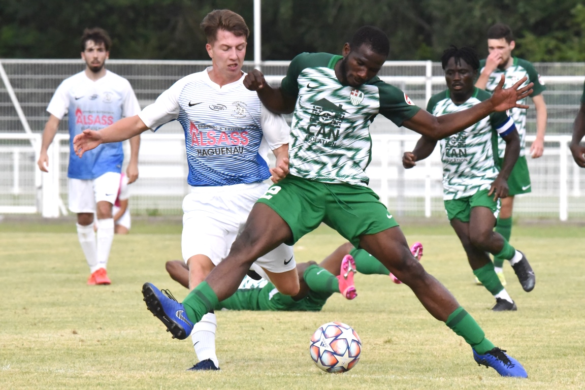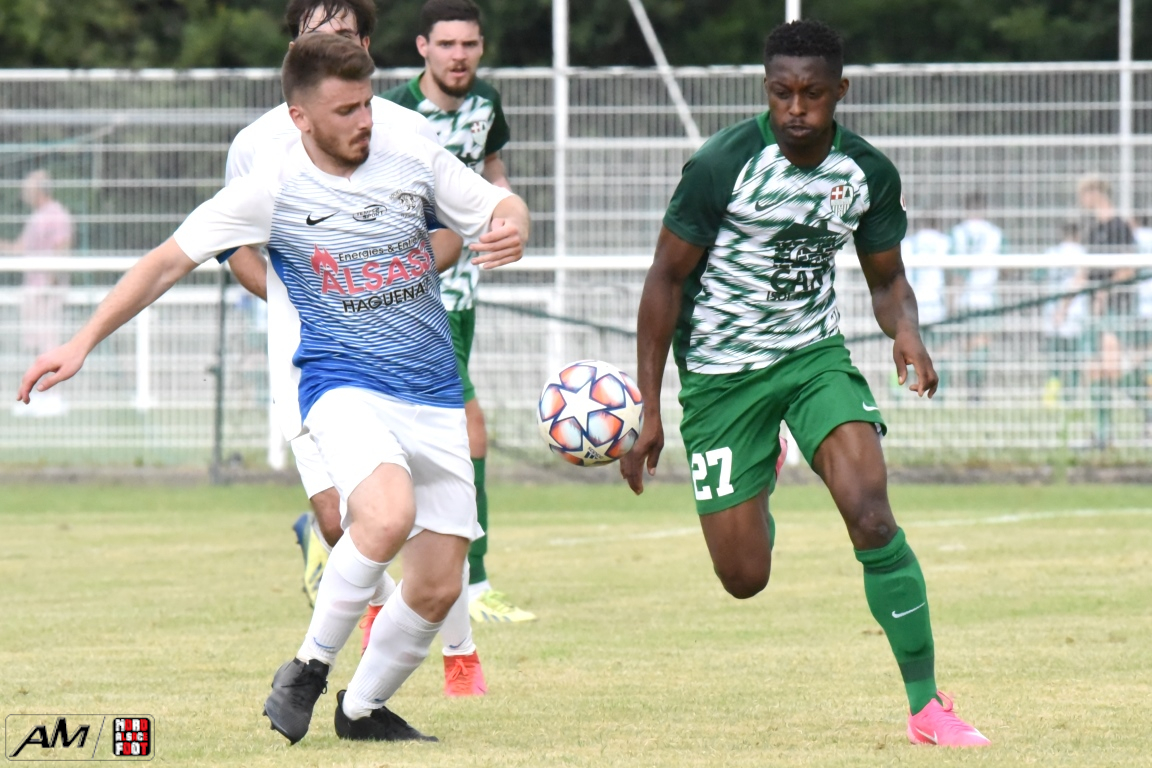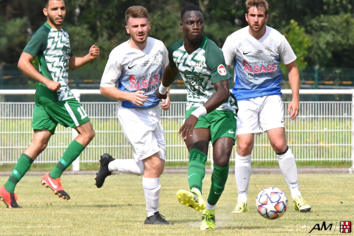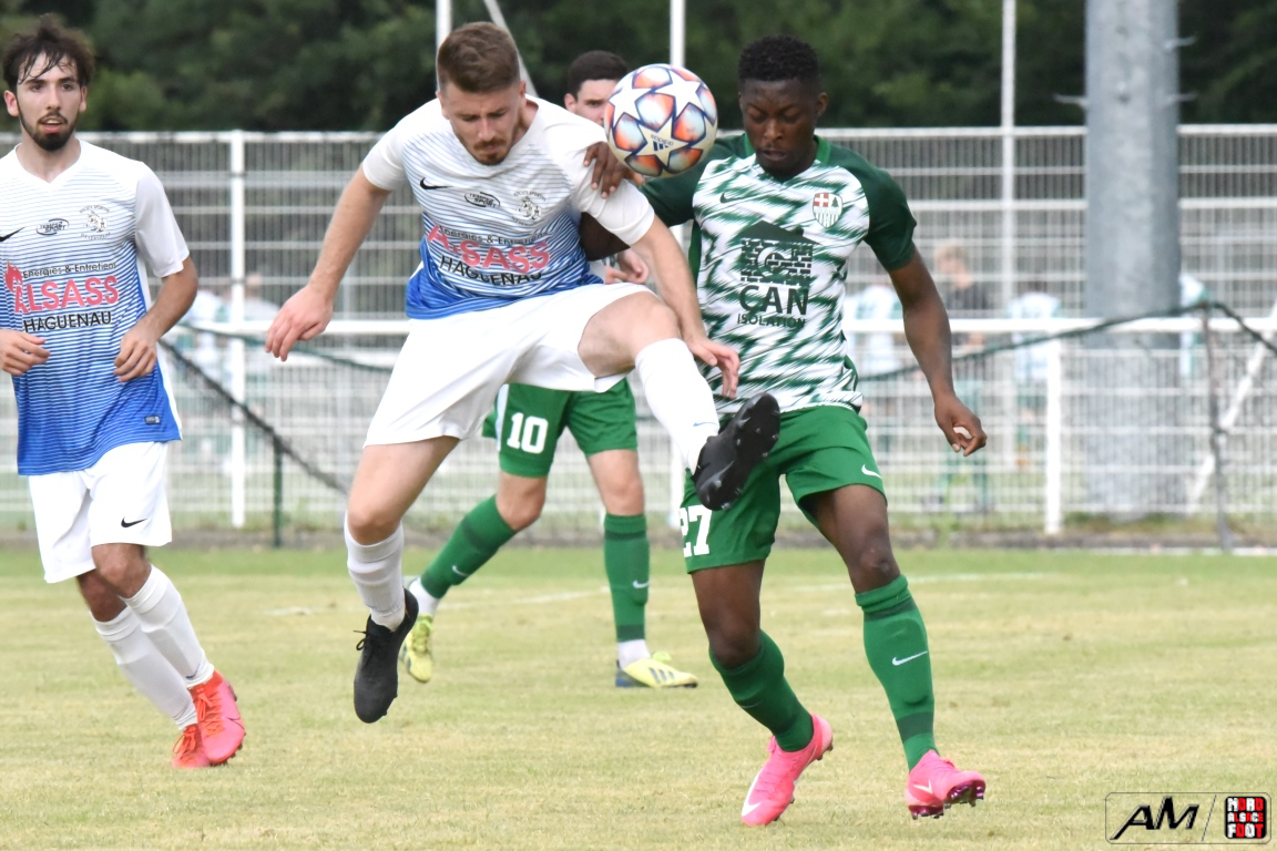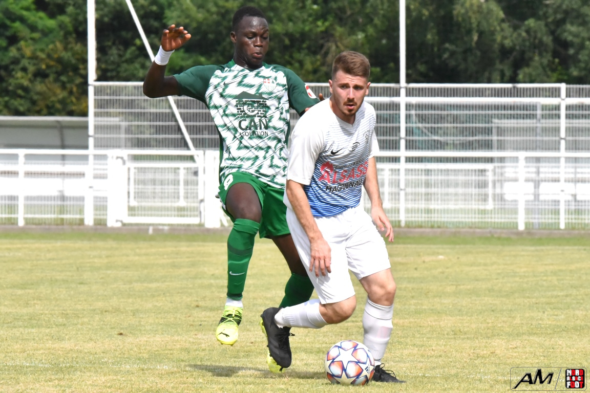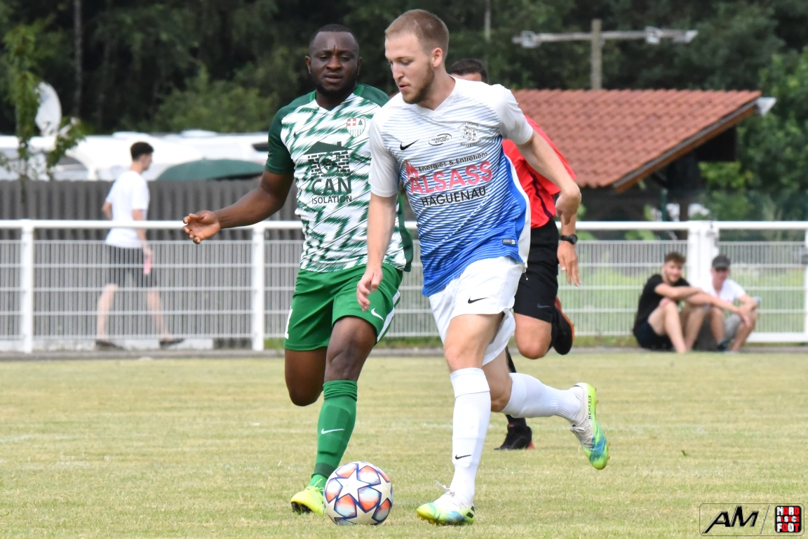 A l’occasion de l’affiche de la quatrième journée du “Foot en fête” organisé par le FC Seltz, le FC Scheibenhard affrontait la SS Weyersheim afin de tenter de débuter leur phase de préparation par une première victoire. Après une première période se soldant par un court avantage en faveur des ciel et blanc grâce à des réalisations signées Frank Elias (11e), Kuntz Antoine (26e) et Adam Aurélien (31e) contre un doublé de Bangoura Abdoulaye (1ere et 21e) pour les verts, ces derniers allaient égaliser à la 56e par l’intermédiaire de Doucoure Boubai avant que Heitz Cyril (61e) et Brechenmacher Nathan (84e) ne permettent à la SSW de prendre le large mais ce fut sans compter sur Hermann Fabrice, l’attaquant scheibenhardois s’offrant un doublé au cours des cinq dernières minutes de jeu (86e et 87e), ce qui permit au FC Scheibenhard et à la SS Weyersheim de se quitter dos à dos sur ce score de 5-5. Retrouvez, ci-dessous, quelques images de cette rencontre et, pour en apprécier le contenu, veuillez cliquer sur l’une d’entre-elles pour afficher le diaporama.