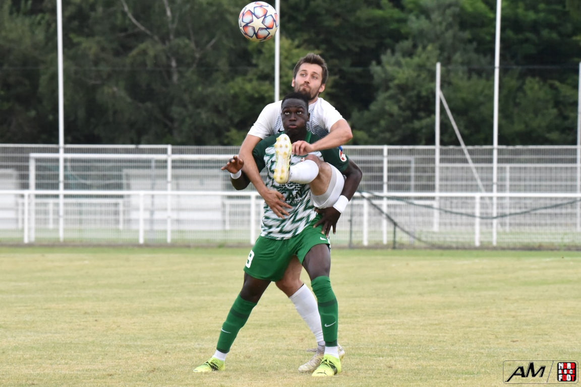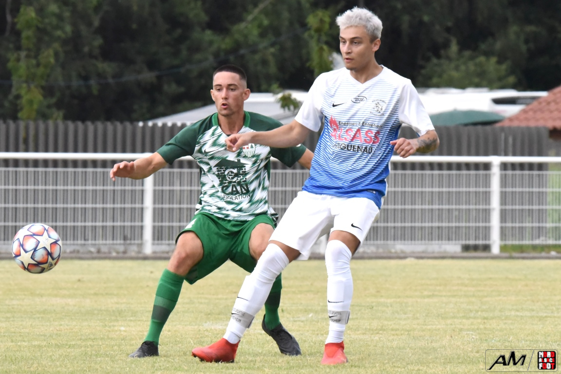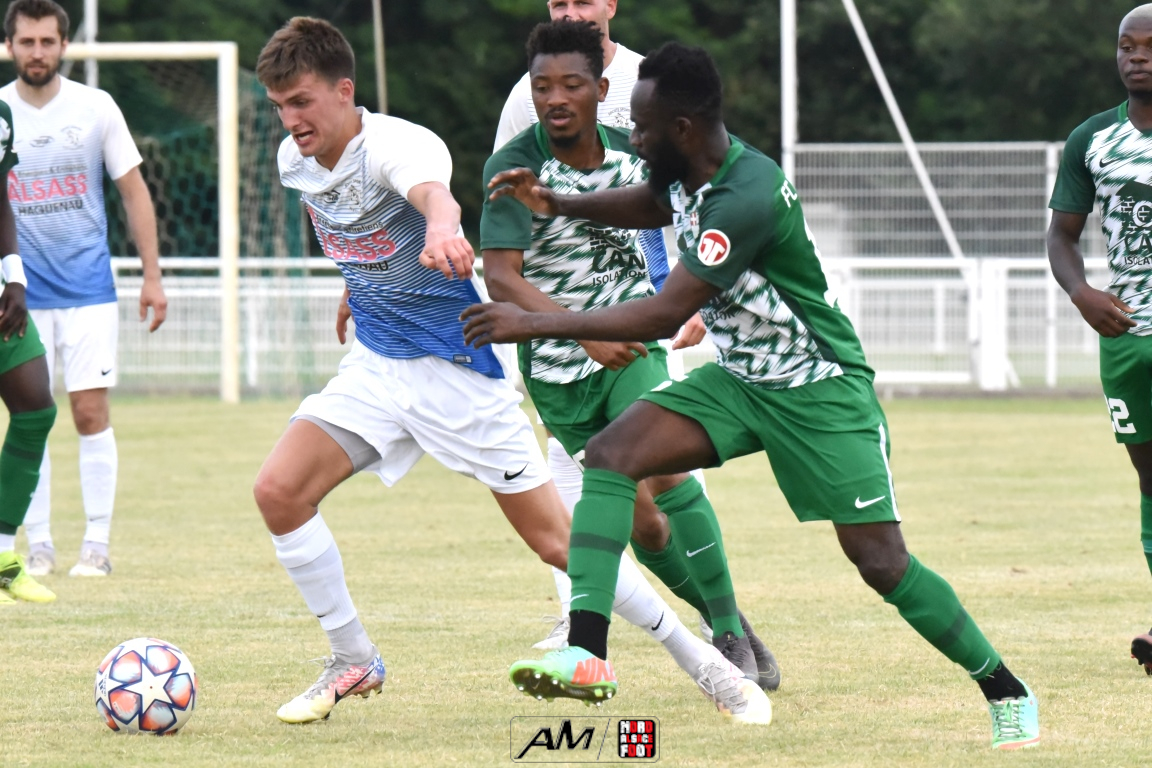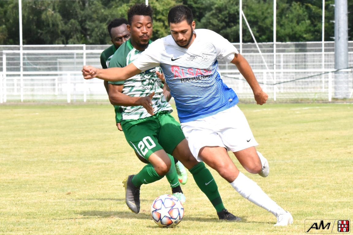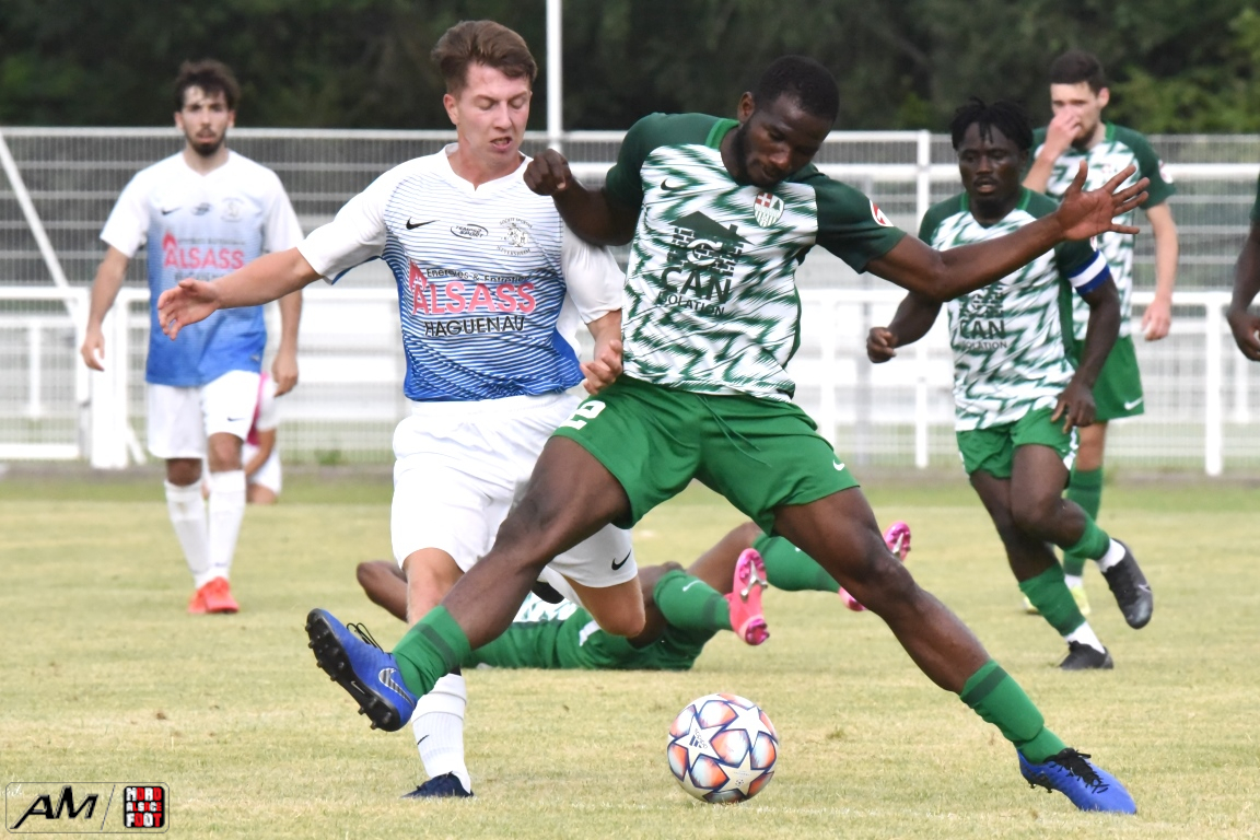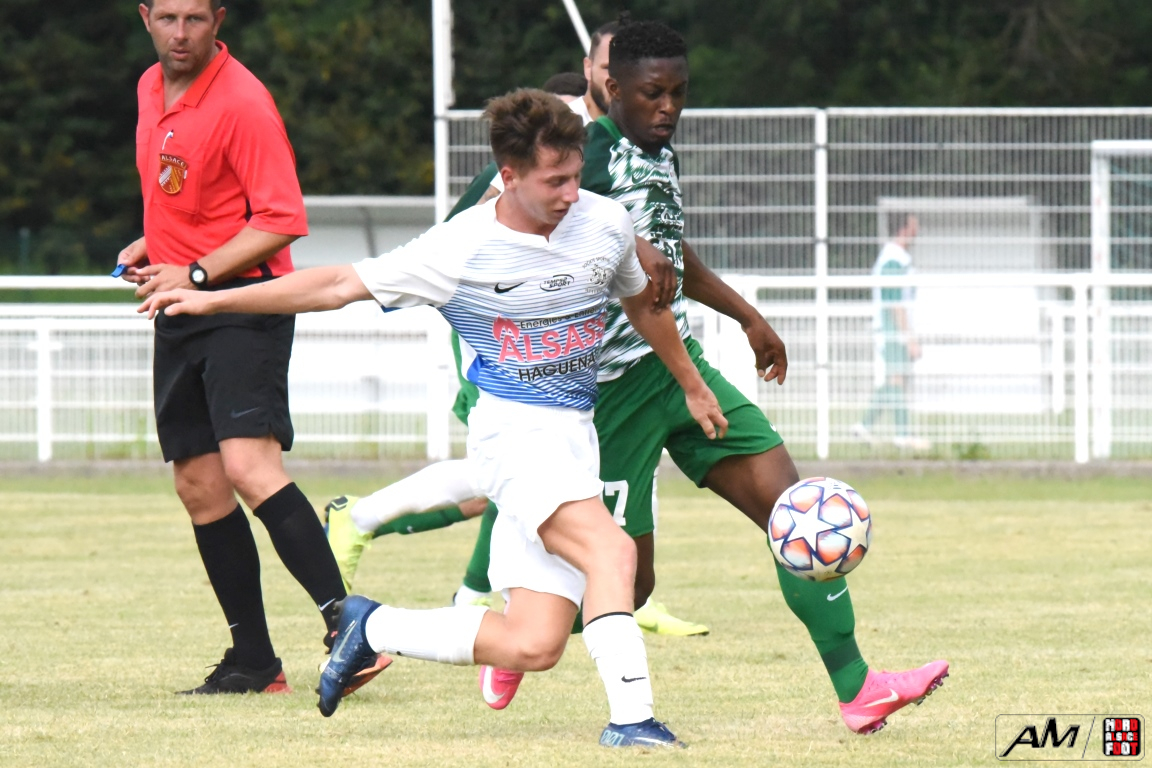 A l’occasion de l’affiche de la quatrième journée du “Foot en fête” organisé par le FC Seltz, le FC Scheibenhard affrontait la SS Weyersheim afin de tenter de débuter leur phase de préparation par une première victoire. Après une première période se soldant par un court avantage en faveur des ciel et blanc grâce à des réalisations signées Frank Elias (11e), Kuntz Antoine (26e) et Adam Aurélien (31e) contre un doublé de Bangoura Abdoulaye (1ere et 21e) pour les verts, ces derniers allaient égaliser à la 56e par l’intermédiaire de Doucoure Boubai avant que Heitz Cyril (61e) et Brechenmacher Nathan (84e) ne permettent à la SSW de prendre le large mais ce fut sans compter sur Hermann Fabrice, l’attaquant scheibenhardois s’offrant un doublé au cours des cinq dernières minutes de jeu (86e et 87e), ce qui permit au FC Scheibenhard et à la SS Weyersheim de se quitter dos à dos sur ce score de 5-5. Retrouvez, ci-dessous, quelques images de cette rencontre et, pour en apprécier le contenu, veuillez cliquer sur l’une d’entre-elles pour afficher le diaporama.