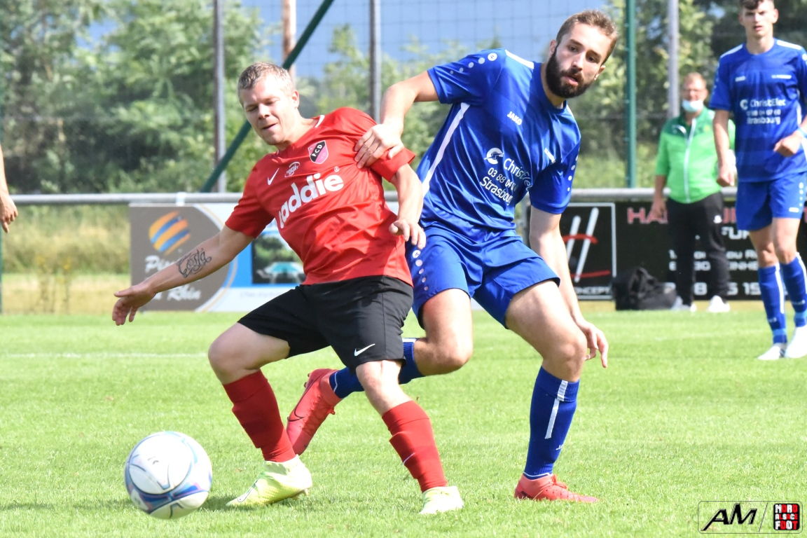 A l’occasion de la seconde rencontre amicale comptant pour la troisième journée du “week-end foot” organisé par le SC Roeschwoog, le FC Drusenheim (R2) affrontait l’US Preuschdorf (R3) afin de travailler les automatismes avant le retour à la compétition intervenant dans trois semaines pour les bleus et dans quatre semaines pour les rouges et noirs. Après une première période se soldant par un court avantage en faveur des Preuschdorfois grâce à une réalisation signée Cvetek Tonny (35e), ces derniers allaient faire le break à la 50e minute de jeu grâce à un but inscrit par Geib Aurélien avant que les deux formations ne se neutralisent jusqu’au coup de sifflet final scellant la victoire de l’US Preuschdorf sur ce score de 0-2! Retrouvez, ci-dessous, quelques images de cette rencontre et, pour en apprécier le contenu, veuillez cliquer sur l’une d’entre-elles pour afficher le diaporama.