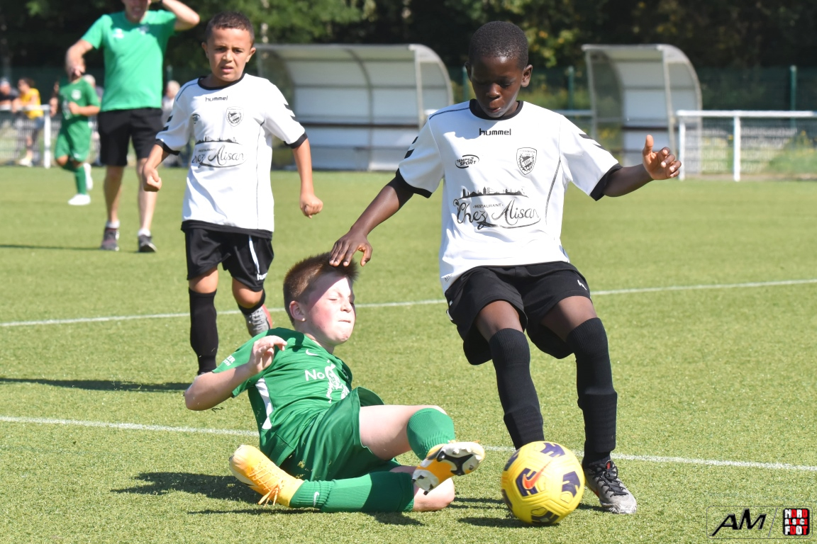 A l’occasion de la première journée de championnat chez les U11/District 1 (Groupe A), le FC Seltz accueillait le SR Hoenheim avec la ferme intention de débuter l’exercice par une victoire, notamment devant leur public ayant répondu présent pour l’occasion. Après une première période se soldant par un avantage confortable en faveur des locaux grâce à des réalisations signées Bey Nolan (3e), Caspar Noa (4e) et Saez Mairon (14e) contre une réduction du score signée Tahtouh Amine (21e) pour les visiteurs, ces derniers allaient à nouvelle fois réduire l’écart grâce à un but inscrit par Messissa Jesse (38e) avant que les locaux ne fassent le break à la 46e minute de jeu grâce à un but somptueux de Saez Mairon mais les Hoenheimois n’allaient pas baisser les bras aussi facilement, Benrouha Enes trouvant le chemin des filets sur coup-franc (47e) avant que les blancs et noirs ne s’arrachent pour tenter de chercher l’égalisation mais, au final, c’est bel et bien les Seltzois qui s’imposèrent sur ce score de 4-3! Retrouvez, ci-dessous, quelques images de cette rencontre et, pour en apprécier le contenu, veuillez cliquer sur l’une d’entre-elles pour afficher le diaporama.