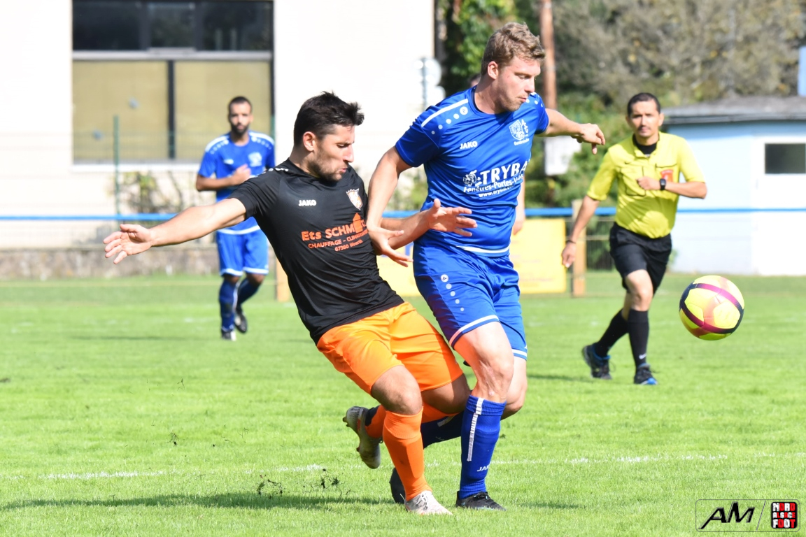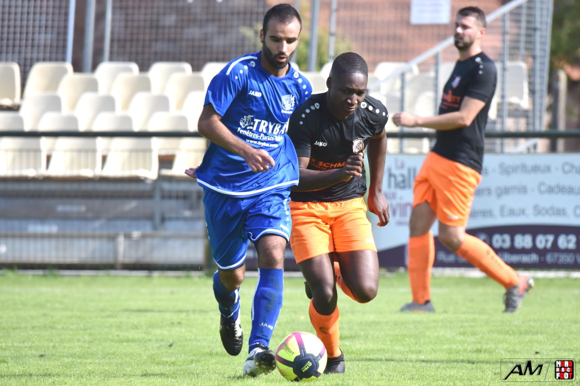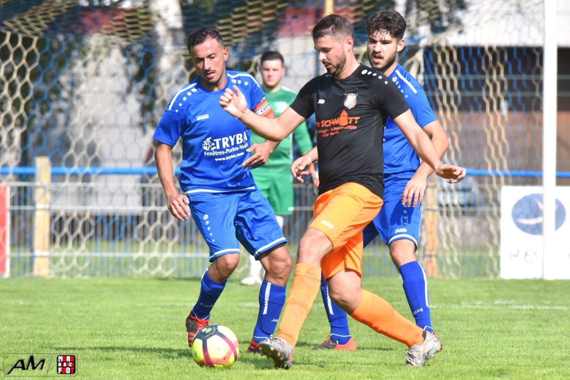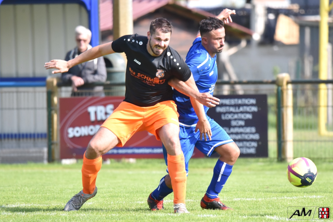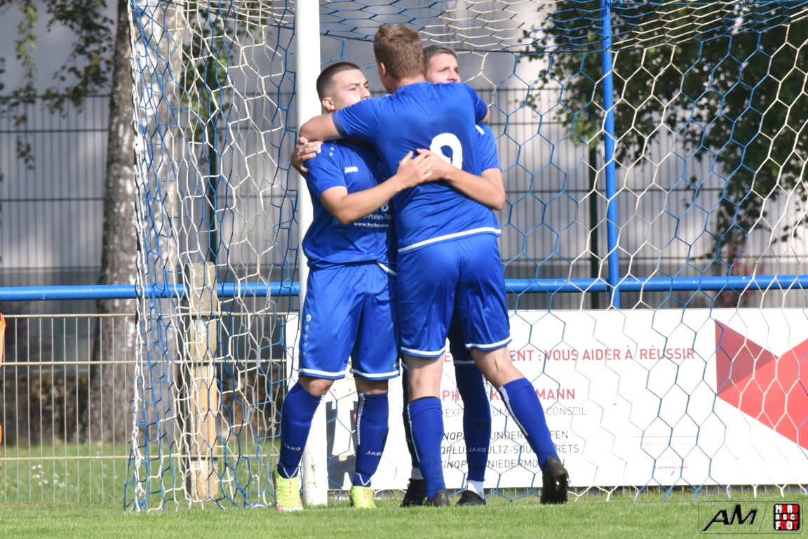 A l’occasion du premier tour de la Coupe des équipes secondes, l’AS Gundershoffen 2 (District 3) accueillait l’US Oberlauterbach 2 (District 1) afin de tenter d’effacer les deux division d’écart, notamment dans leur antre et devant un public ne s’étant pas déplacé en grand nombre pour cette affiche. Après une première période se soldant par un un score de parité grâce à l’ouverture du score des visiteurs signée Joerger Cédric (31e) contre une égalisation locale signée Eksin Sinan (40e), les bleus allaient prendre l’avantage à la 67e minute de jeu grâce à but inscrit par Michalczyk Hervé avant que les doublures oberlauterbachoises ne parviennent à égaliser à la 78e minute de jeu grâce à l’opportunisme de Reichert Julien, les deux équipes finissant par disputer la qualification lors de la séance de tirs-au-but, cette dernière finissant par tourner à l’avantage de l’AS Gundershoffen 2, les bleus s’imposant finalement sur ce score de 2-2 (3-2 tab). Retrouvez, ci-dessous, quelques images de cette rencontre et, pour en apprécier le contenu, veuillez cliquer sur l’une d’entre-elles pour afficher le diaporama.