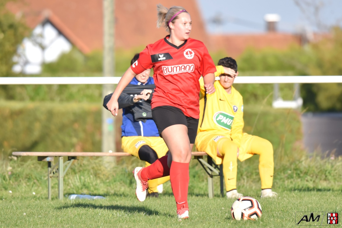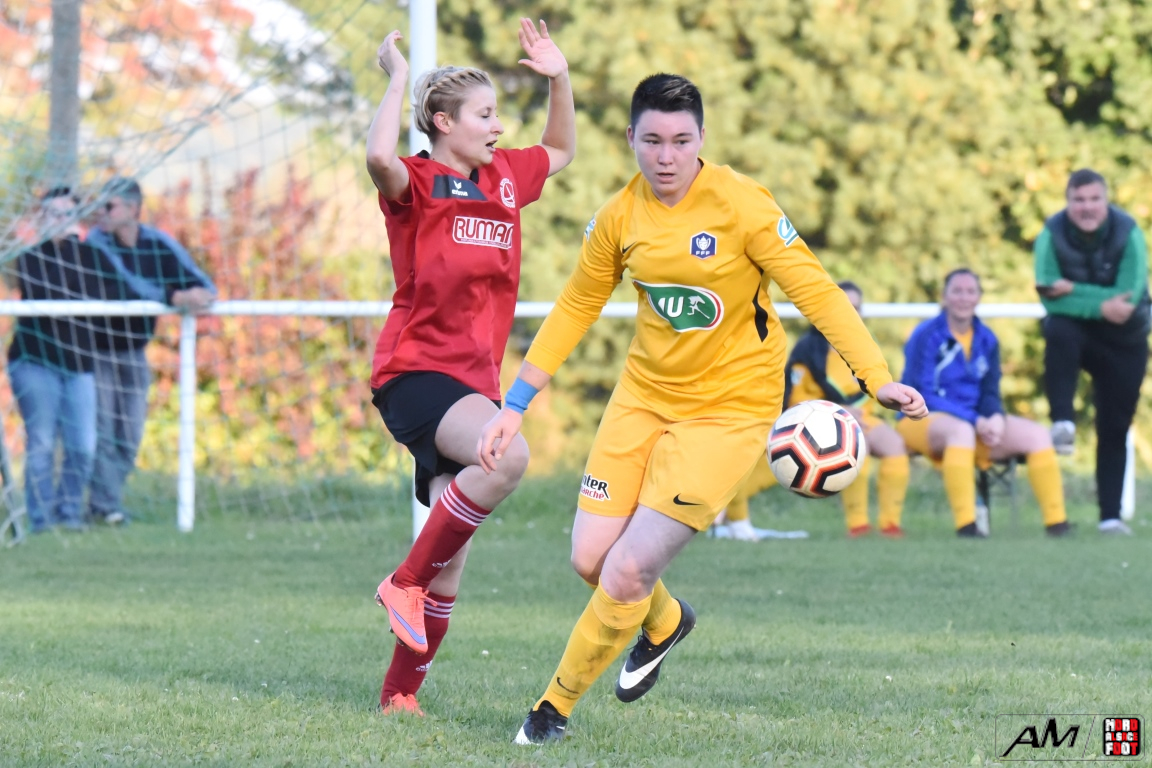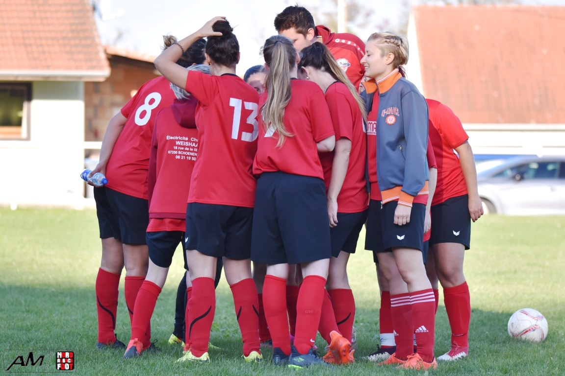 A l’occasion du premier tour de la Coupe Crédit Mutuel dans la catégorie Seniors à 8 Féminine, le FR Schoenenbourg/Memmelshoffen F accueillait l’ES Morsbronn F afin de profiter de la Coupe pour entrevoir un petit coin de ciel bleu après un début de championnat quelque peu compliqué. Après une première période se soldant par un court avantage en faveur des visiteuses (1-2), ces dernières allaient finalement prendre le large en seconde période en ajoutant trois buts au compteur avant de finir par s’imposer sur ce score de 1-5! Retrouvez, ci-dessous, quelques images de cette rencontre et, pour en apprécier le contenu, veuillez cliquer sur l’une d’entre-elles pour afficher le diaporama.