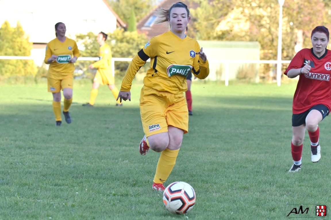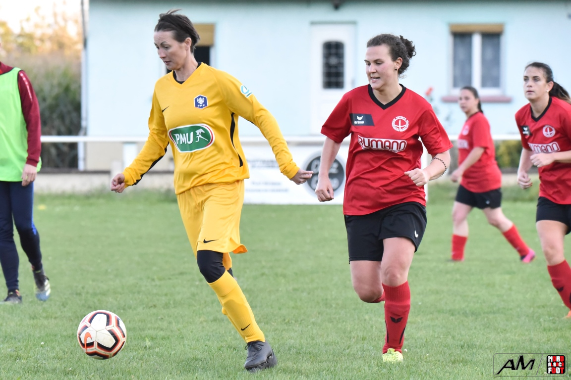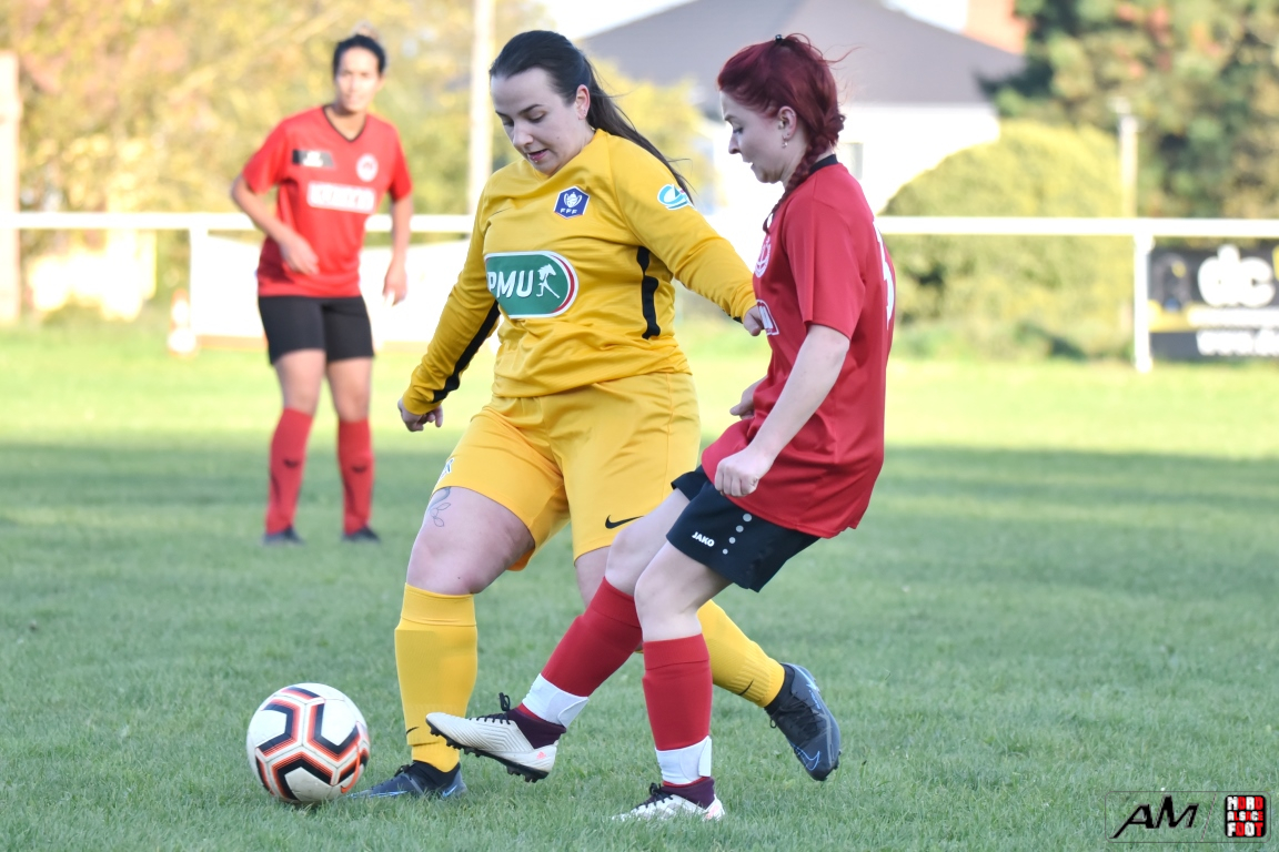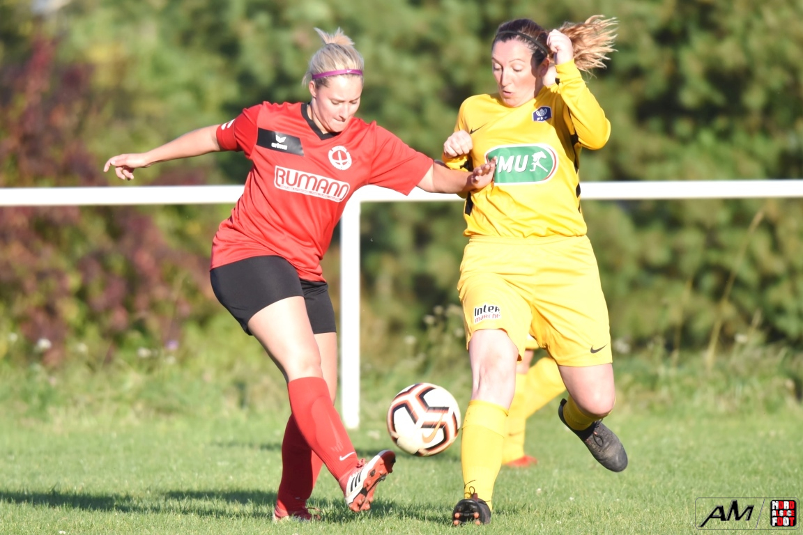 A l’occasion du premier tour de la Coupe Crédit Mutuel dans la catégorie Seniors à 8 Féminine, le FR Schoenenbourg/Memmelshoffen F accueillait l’ES Morsbronn F afin de profiter de la Coupe pour entrevoir un petit coin de ciel bleu après un début de championnat quelque peu compliqué. Après une première période se soldant par un court avantage en faveur des visiteuses (1-2), ces dernières allaient finalement prendre le large en seconde période en ajoutant trois buts au compteur avant de finir par s’imposer sur ce score de 1-5! Retrouvez, ci-dessous, quelques images de cette rencontre et, pour en apprécier le contenu, veuillez cliquer sur l’une d’entre-elles pour afficher le diaporama.