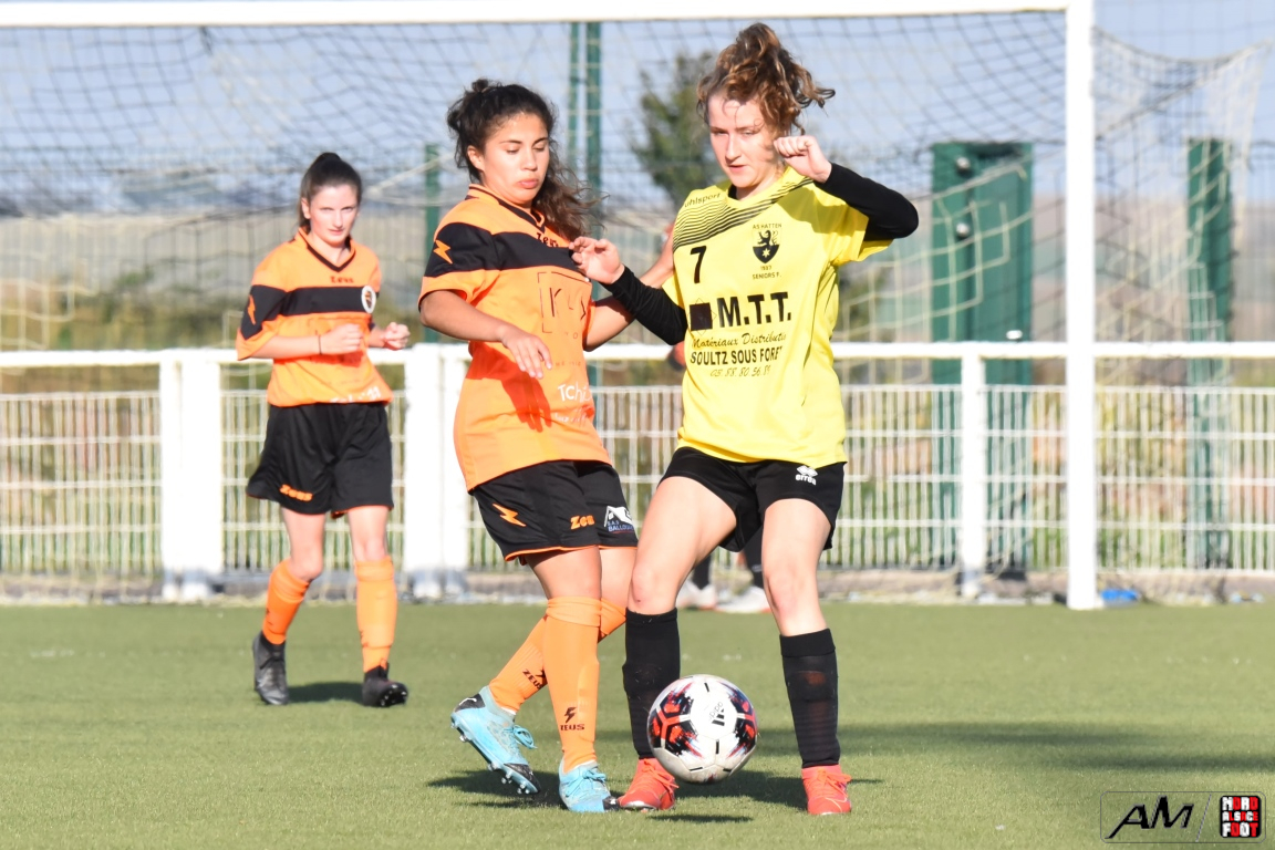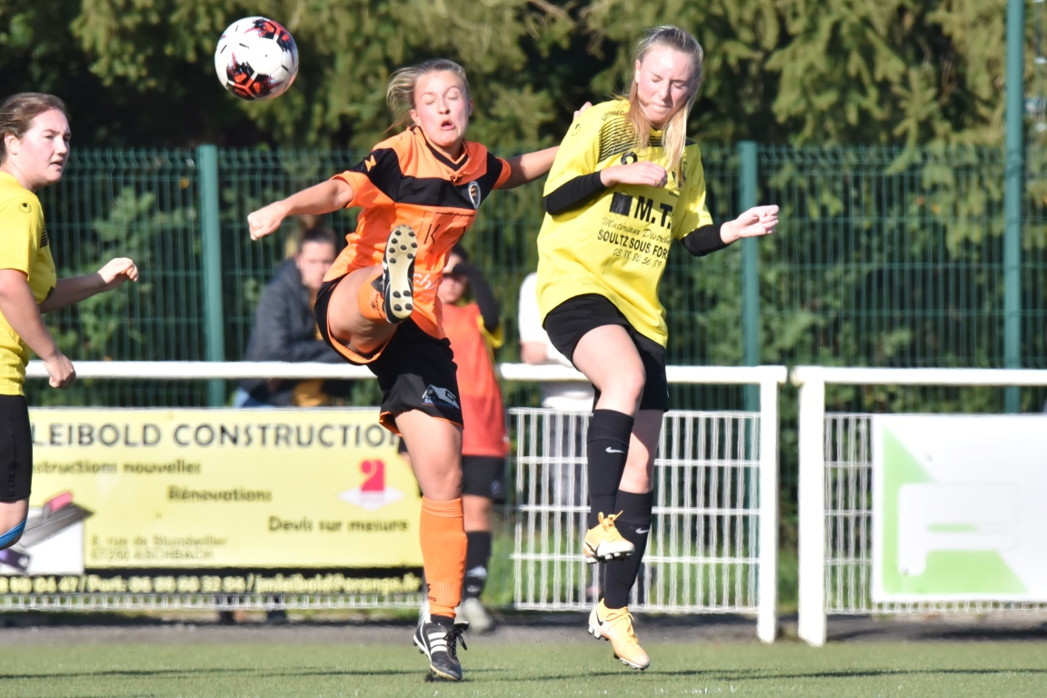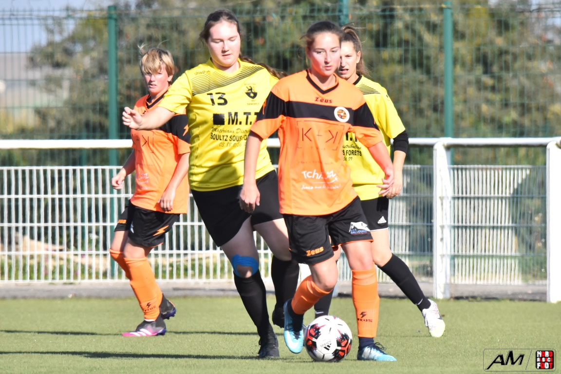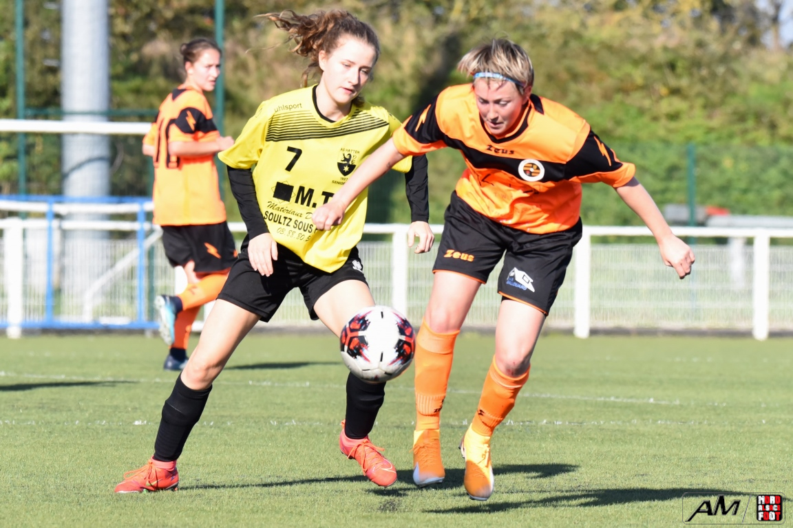 A l’occasion du troisième tour de la Coupe de France Féminine, l’AS Hatten F (Régionale 2) accueillait les SR Saint-Dié Kellermann F (Régionale 1) afin de tenter de réaliser un petit exploit dans leur antre, et ce, face à des adversaires en difficulté dans leur championnat. Après une première période se soldant par un court avantage en faveur des visiteuses grâce à une réalisation signée Andre Marion (1ère), ces dernières allaient faire le break à la 63e minute de jeu grâce à une réalisation inscrite par Abdou Raichat avant que les Hattenoises ne se réveillent au cours du dernier quart d’heure de jeu, les protégées de Bonnet Esteban réduisant la marque sur un penalty transformé par Pichot Cheryl avant qu’elle ne rate deux face-à-face qui auraient put tout changer en fin de partie mais les jaunes et noires allaient finalement s’incliner sur ce score de 1-2! Retrouvez, ci-dessous, quelques images de cette rencontre et, pour en apprécier le contenu, veuillez cliquer sur l’une d’entre-elles pour afficher le diaporama.