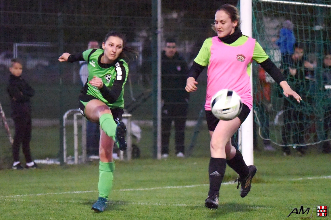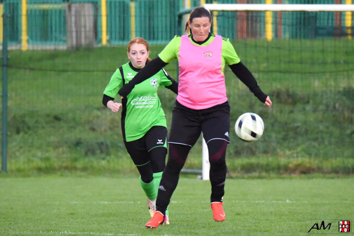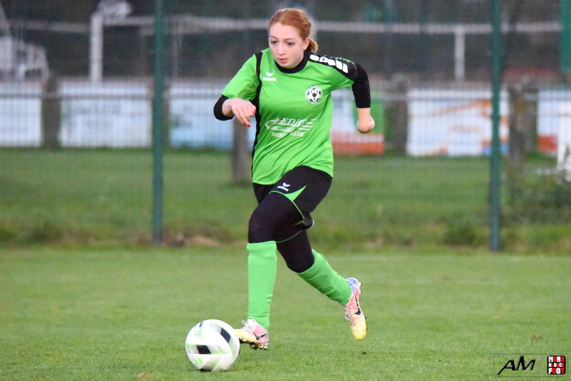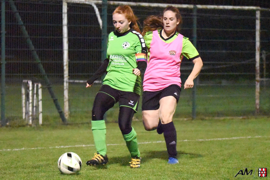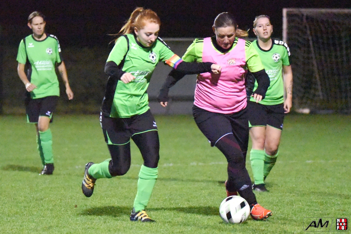 A l’occasion du premier tour de la Coupe Crédit Mutuel de la catégorie Seniors à 8 F, l’AS Hunspach F accueillait le FC Eschbach F avec la ferme intention de demeurer invaincues (toutes compétitions confondues), et ce, face à des Eschbachoises fières d’une première victoire décrochée en championnat, le week-end dernier, face à l’AS Mertzwiller (1-0). Après une première période se soldant par un avantage confortable en faveur des Hunspachoises grâce à des réalisations signées Boehl Delphine (22e et 29e) et Arbogast Elodie (39e) contre un but inscrit par Ledig Olivia (7e) en faveur des visiteuses, les protégées de Muller Julien allaient ajouter deux buts au compteur en seconde période grâce à des réalisations signées Billmann Anaïs (57e) et Wagner Marlène (65e) avant que les Eschbachoises ne parviennent à réduire la marque grâce à un but inscrit par Lienhardt Mallaury (72e), ce qui n’empêcha pas les Hunspachoises de s’imposer sur ce score de 5-2! Retrouvez, ci-dessous, quelques images de cette rencontre et, pour en apprécier le contenu, veuillez cliquer sur l’une d’entre-elles pour afficher le diaporama.