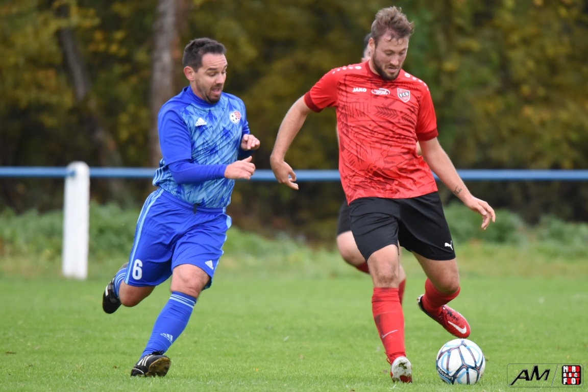 A l’occasion de la cinquième journée de championnat en District 6 (Groupe B), l’entente Durrenbach/Hegeney 2 (3e) accueillait le FC Drusenheim 2 (4e) afin de tenter de prendre le large sur leur poursuivant direct. Après une première période se soldant par un court avantage en faveur des locaux grâce à des réalisations signées Jaggi Maxime (24e) et Niess Quentin (41e) contre un but inscrit par Dias Mathéo (21e) pour les visiteurs, il fallut attendre la toute fin du temps réglementaire pour voir les doublures locales faire le break par l’intermédiaire de Stefek Geoffrey (89e), ce dernier assurant définitivement la victoire des ententistes sur ce score de 3-1! Retrouvez, ci-dessous, quelques images de cette rencontre et, pour en apprécier le contenu, veuillez cliquer sur l’une d’entre-elles pour afficher le diaporama.