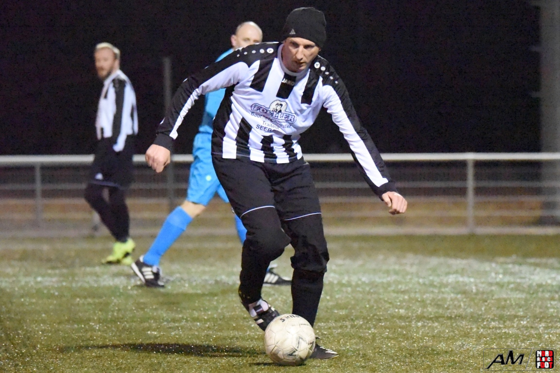 A l’occasion de la huitième journée de championnat chez les Vétérans (Groupe D), l’entente Wissembourg/EWANRS 51 (lanterne rouge) accueillait l’entente Preuschdorf/EPDH 51 (1er) pour un choc des extrêmes pouvant permettre aux visiteurs de conforter un peu plus leur place de leader de cette poule en faveur d’une victoire ce vendredi face à des locaux s’étant présentés avec un effectif limité de onze joueurs. Après une première période se soldant par un avantage confortable en faveur des visiteurs grâce à des réalisations signées Hirlemann Julien (18e) et Bricka Fabrice (22e), ces derniers allaient corser l’addition à deux reprises en seconde période grâce à des réalisations signées Le Dreves Guillaume (40e) et Goehry Stéphane (55e) avant de finir par s’imposer sur ce score de 0-4! Retrouvez, ci-dessous, quelques images de cette rencontre et, pour en apprécier le contenu, veuillez cliquer sur l’une d’entre-elles pour afficher le diaporama.