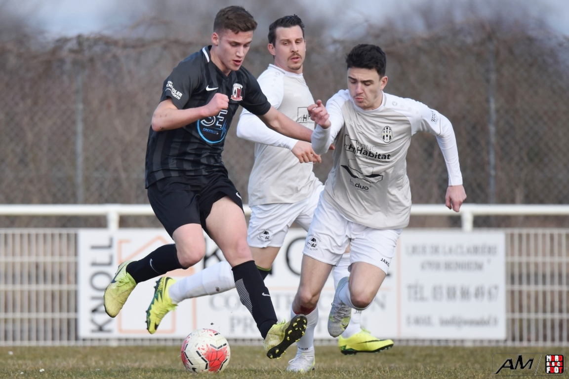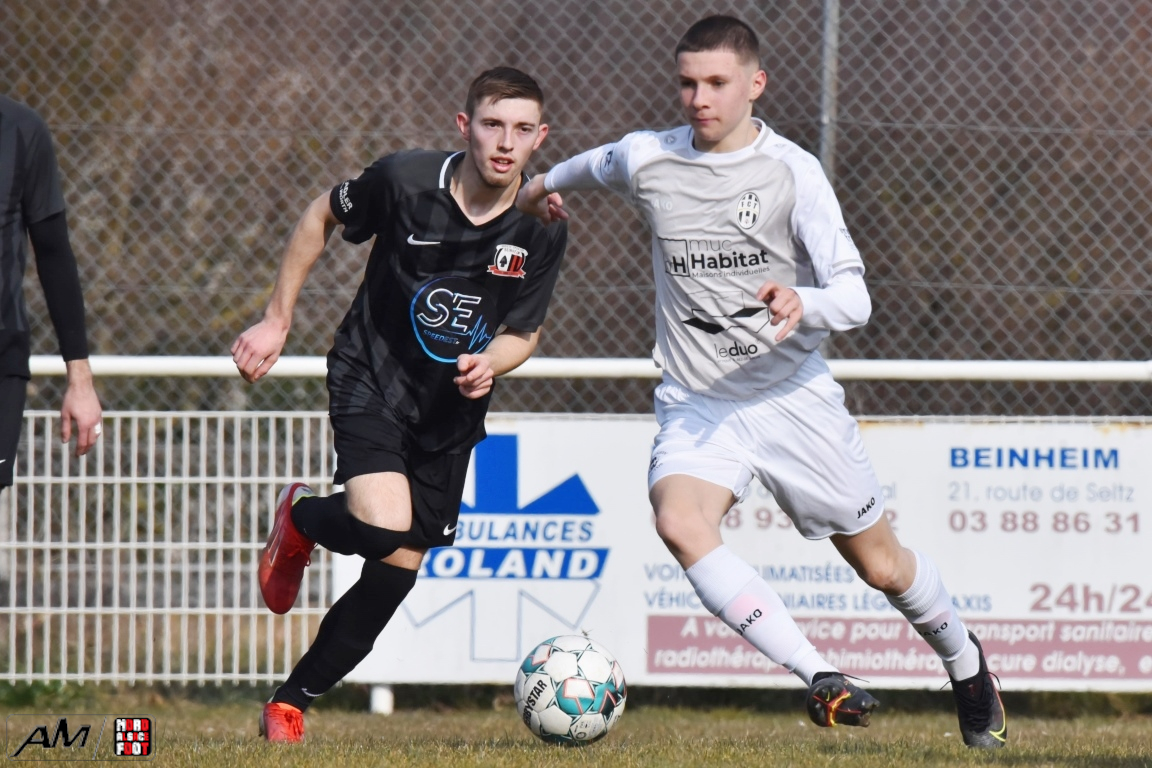 A l’occasion des seizièmes de finale de la Coupe d’Alsace, la SS Beinheim (D3) accueillait l’entente Truchtersheim/Stutzheim (D1) afin de tenter de réaliser un petit exploit face à des adversaires n’étant pas forcément à la fête dans leur championnat en comptabilisant autant de points que la premier reléguable. Après une première période se soldant par un avantage confortable en faveur des visiteurs grâce à un doublé signé El Ouali Alami Ahmed (1ère et 29e), les deux équipes allaient ensuite se neutraliser jusqu’à la 93e minute de jeu, moment choisi par Ehretsmann Steve pour planter un troisième but, ce dernier permettant finalement à l’entente Truchtersheim/Stutzheim de se qualifier sur ce score de 0-3! Retrouvez, ci-dessous, quelques images de cette rencontre et, pour en apprécier le contenu, veuillez cliquer sur l’une d’entre-elles pour afficher le diaporama.