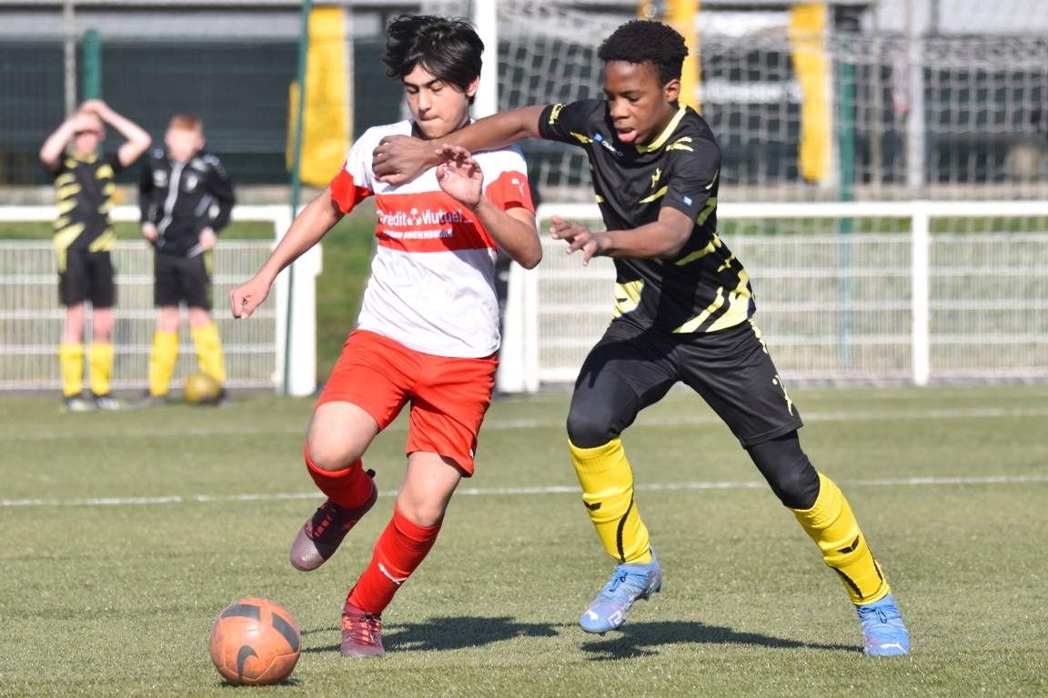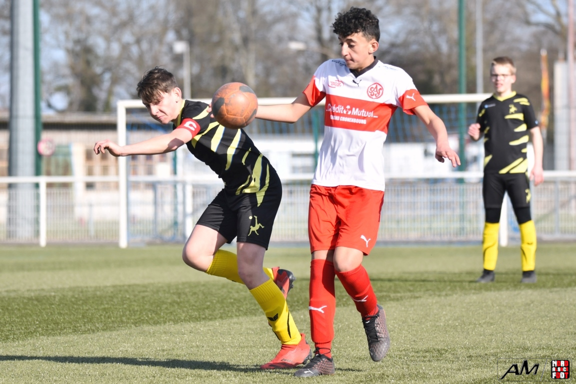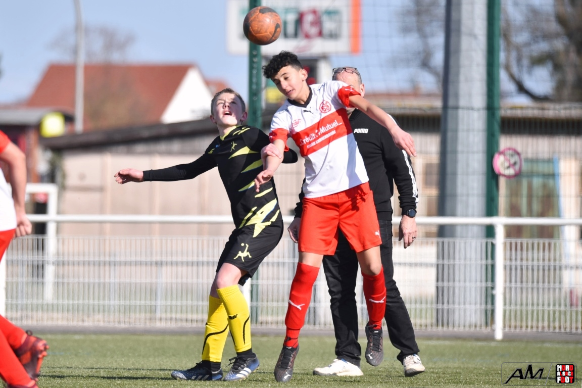 A l’occasion de la deuxième journée de cette chez les U13/D2 Titre (Groupe B), l’entente Schleithal/GJAN accueillait l’AS Strasbourg afin de tenter de confirmer leur récent succès décroché lors de leur déplacement à Marienthal (2-5), et ce, face à des Strasbourgeois devant remettre le pied à l’étrier après leur première défaite enregistrée face aux doublures de l’Inter Meinau (2-3). Après une première période se soldant par un court avantage en faveur des visiteurs grâce à un but inscrit sur coup-franc par Guimiot Mathis (29e), les locaux allaient parvenir à inverser la tendance en deuxième période grâce à des réalisations signées Barin Beill Ilhen (38e) et Mosser Matthieu (48e) avant de finir par s’imposer sur ce score de 2-1! Retrouvez, ci-dessous, quelques images de cette rencontre et, pour en apprécier le contenu, veuillez cliquer sur l’une d’entre-elles pour afficher le diaporama.