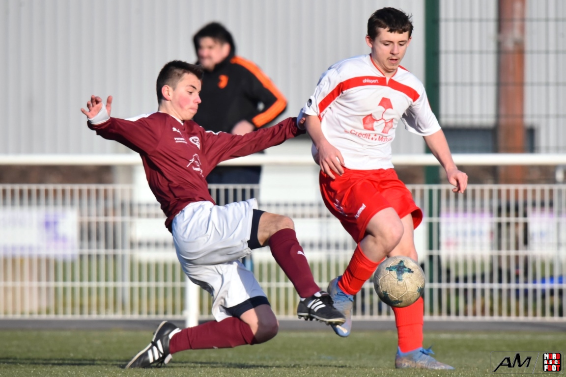 A l’occasion de la deuxième journée de championnat dans cette phase printanière chez les U18/D3, l’entente Riedseltz/GJAN 2 accueillait le FCE Schirrhein 2 afin de tenter de confirmer leur récente victoire enregistrée le week-end dernier du côté de Wolfisheim (1-3), et ce, face à des adversaires étant ressortis larges vainqueurs de leur rencontre face aux doublures de l’entente UFFRIED (4-0). Après une première période se soldant par un score nul et vierge, les visiteurs débloquèrent la situation en seconde période par l’intermédiaire de Zimmermann Raphaël avant de finir par s’imposer sur le plus petit des scores. Retrouvez, ci-dessous, quelques images de cette rencontre et, pour en apprécier le contenu, veuillez cliquer sur l’une d’entre-elles pour afficher le diaporama.