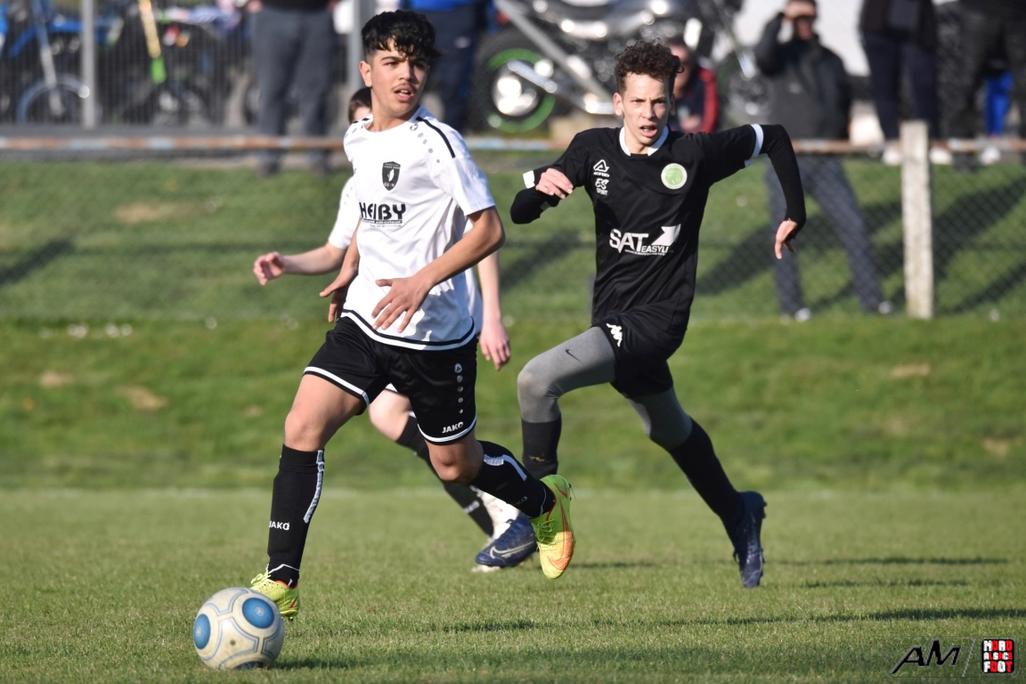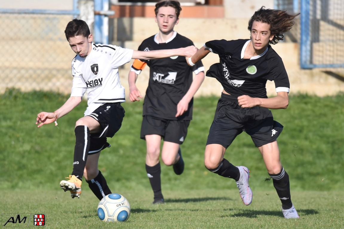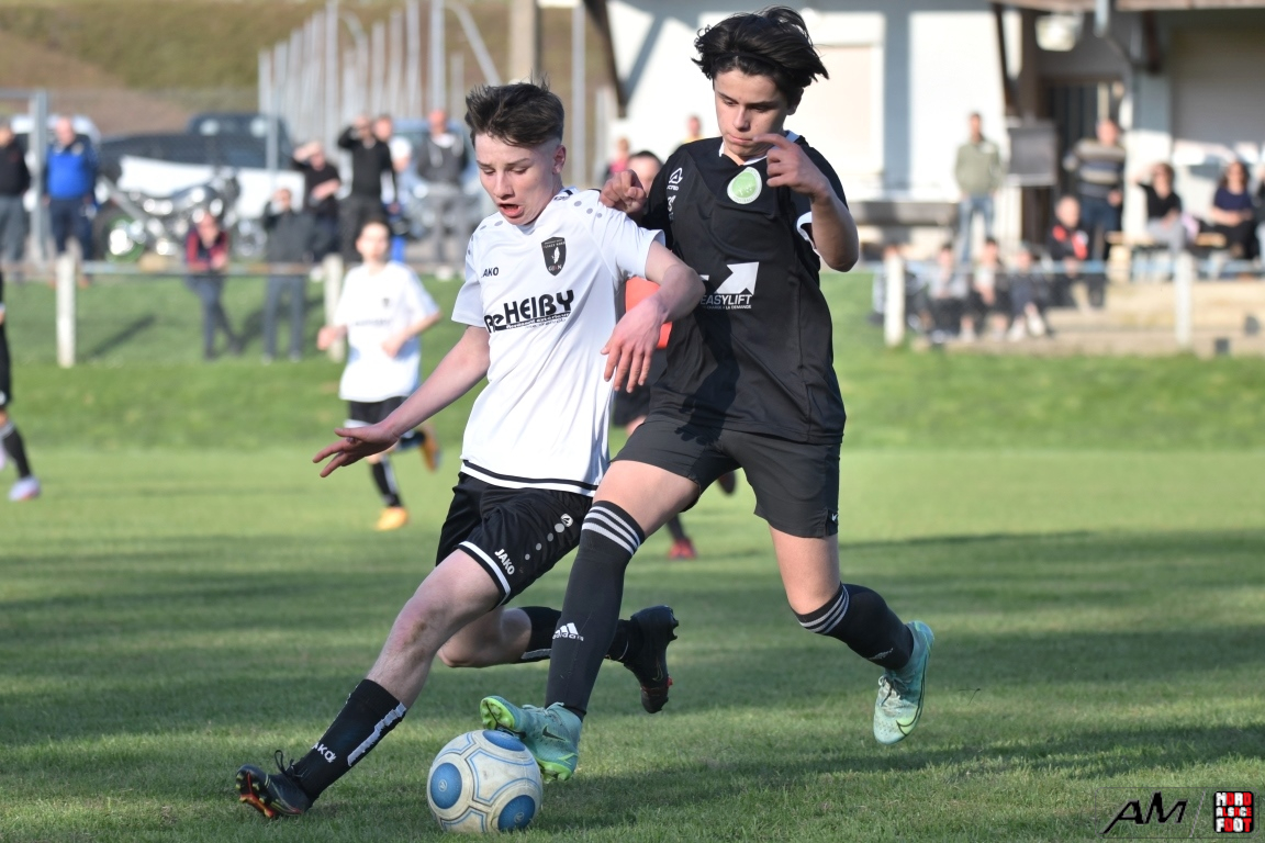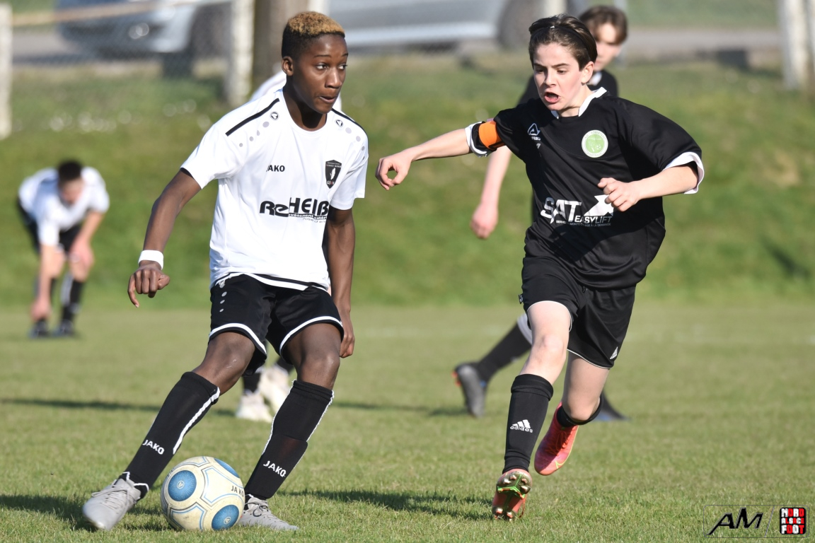 A l’occasion d’un match en retard comptant pour les huitièmes de finale de la Coupe d’Encouragement – Crédit Mutuel de la catégorie U15, l’entente Steinseltz/GJAN (District 1) accueillait l’ASL Strg Robertsau (D2) afin de tenter de décrocher l’un des deux tickets encore en jeu ce samedi pouvant leur ouvrir les portes des quarts de finale de cette compétition. Après une première période se soldant par un léger avantage en faveur des visiteurs grâce à des réalisations signées Bustos Salvador (20e) et Tarazit Daris (31e) contre une ouverture du score locale signée Jautzy Maxime (17e), les ententistes allaient rehausser leur niveau de jeu, ce qui leur permit d’égaliser par l’intermédiaire de Schorn Noah (52e) avant que Boheim Mathieu (57e), Lusumbu Donald (65e) et Gentes Anthony (80+2) ne lui emboitent le pas afin de permettre au GJAN de s’adjuger une qualification pour les quarts de finale de cette compétition sur ce score de 5-2!
