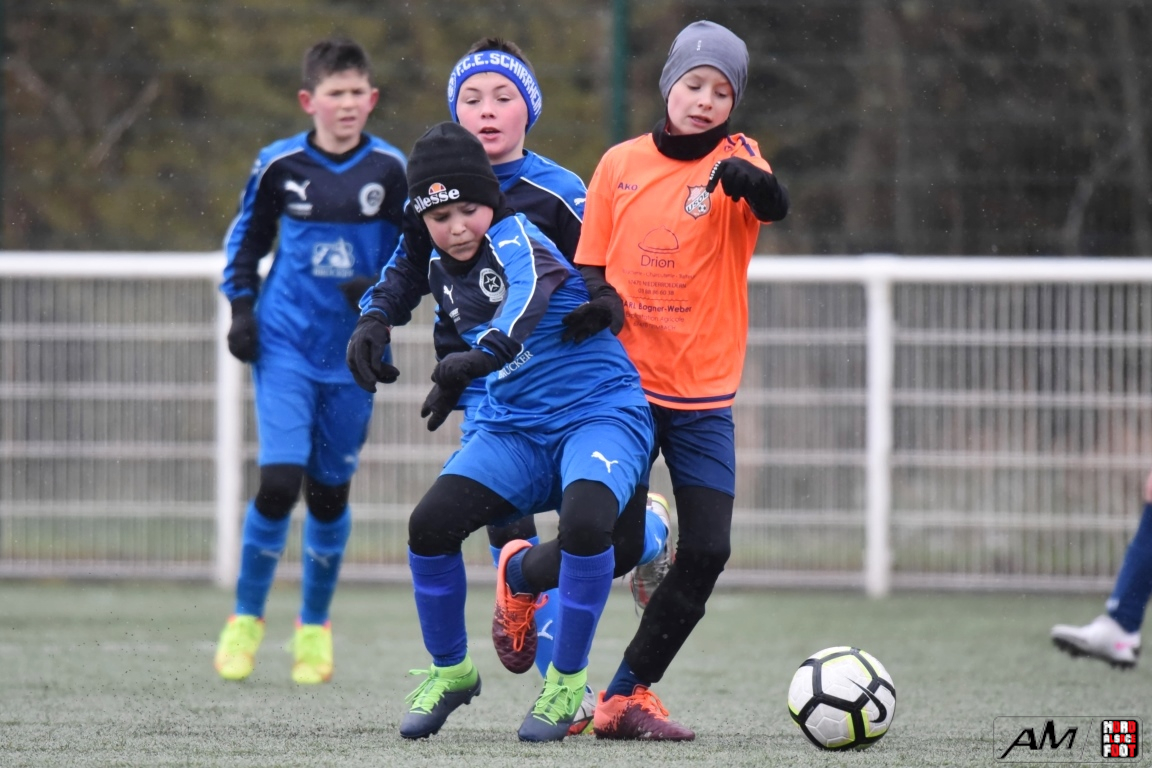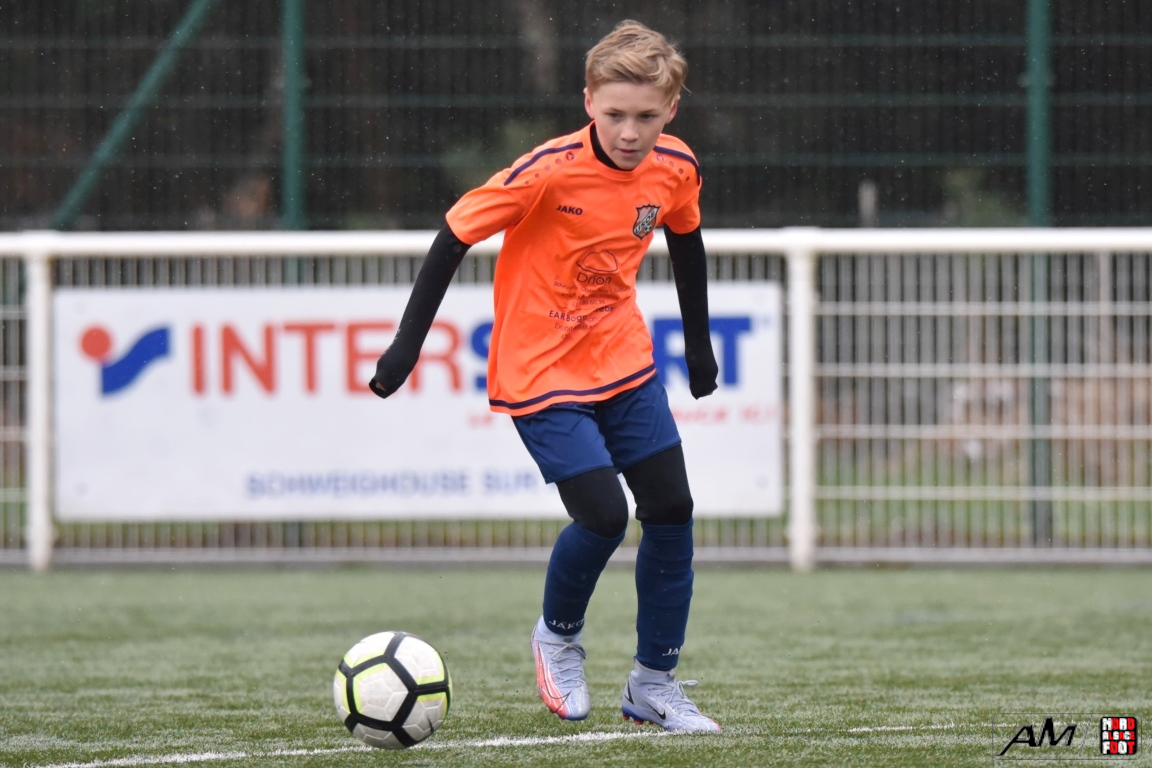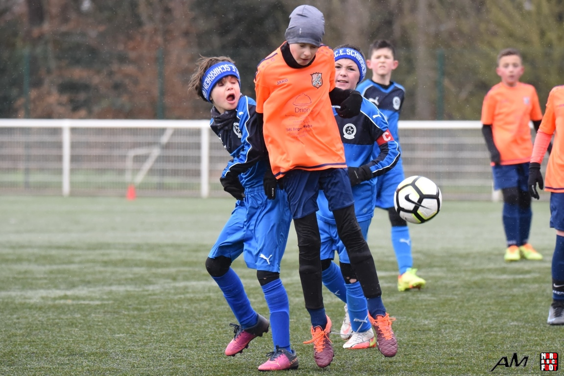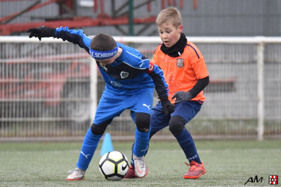A l’occasion de la quatrième journée de championnat dans cette phase printanière chez les U11/D1 (Groupe A), le FCE Schirrhein accueillait l’US Oberlauterbach afin de tenter de s’adjuger un premier succès cette année, et ce, face à des adversaires ayant remporté, avec la manière, leur match en retard les opposant, mercredi, au FCSR Haguenau 2 (7-3). Après une première période se soldant par un avantage confortable en faveur des visiteurs grâce à des réalisations signées Schmittheisler Thomas (6e), Beyer Liam (10e) et Muller Tilio (13e) contre une réduction du score signée Pinton Mattéo (15e) pour les locaux, les “Oranges” allaient corser l’addition en seconde période grâce à des réalisations inscrites par Kraemer Maé (28e et 44e), Muller Tilio (31e) et Hoerth Maé (30e) tout en concédant un but ayant été inscrit par Issenschmitt Esteban (43e), les protégés de Kraemer Sébastien finissant donc par largement s’imposer sur ce score de 2-7! Retrouvez, ci-dessous, quelques images de cette rencontre et, pour en apprécier le contenu, veuillez cliquer sur l’une d’entre-elles pour afficher le diaporama.