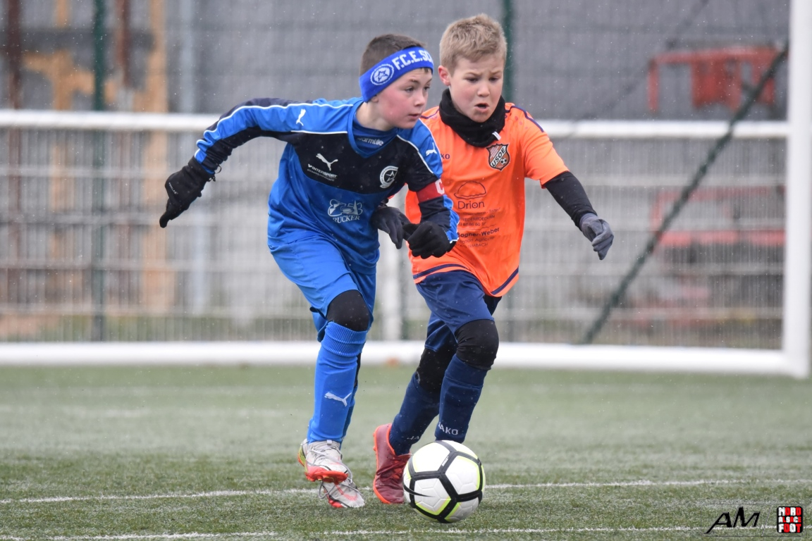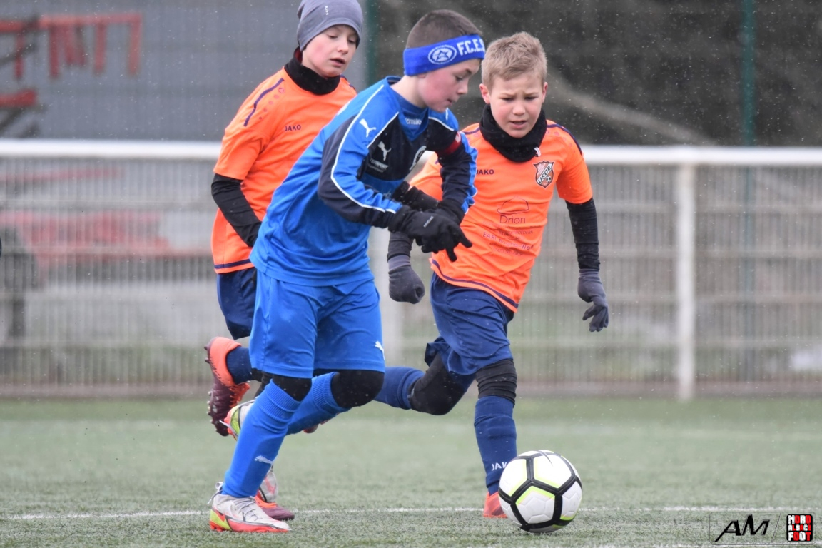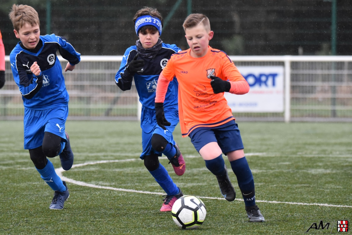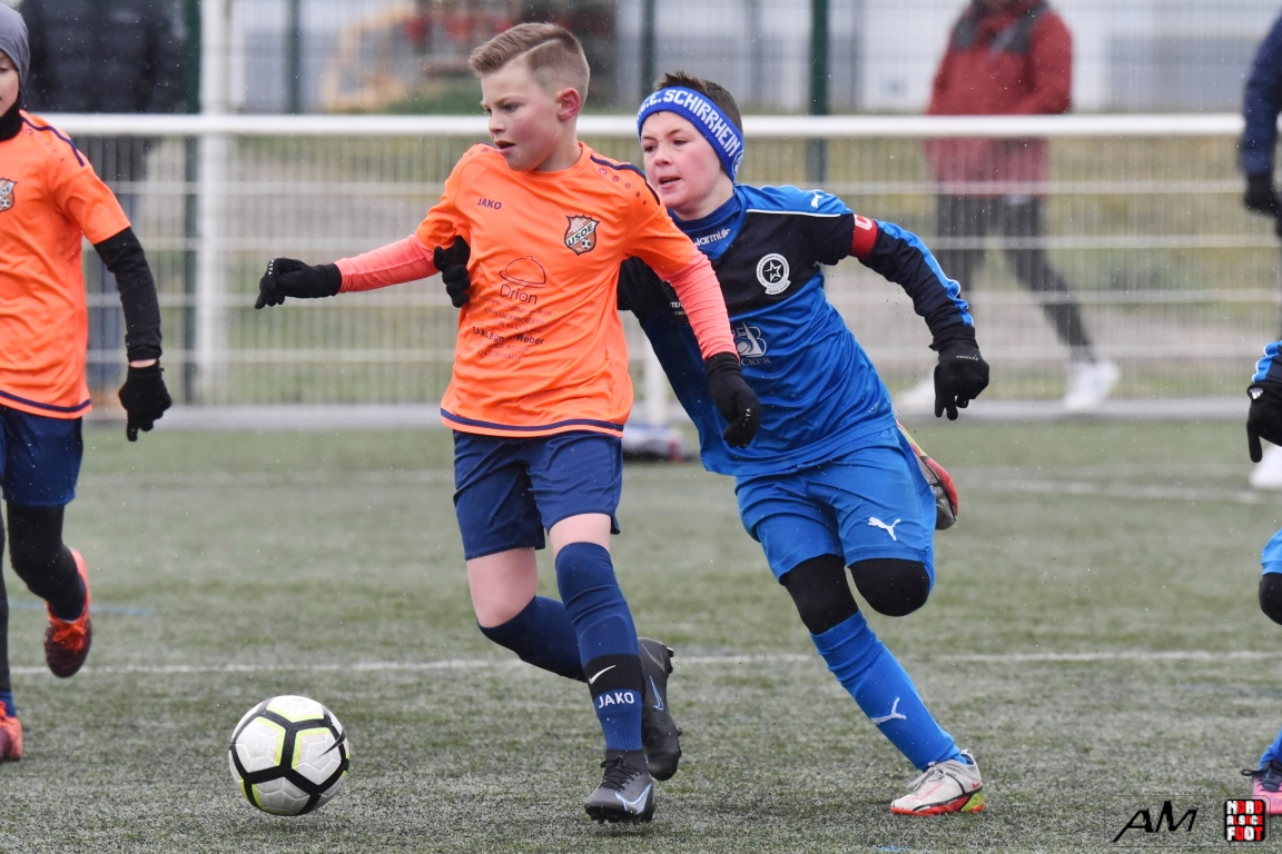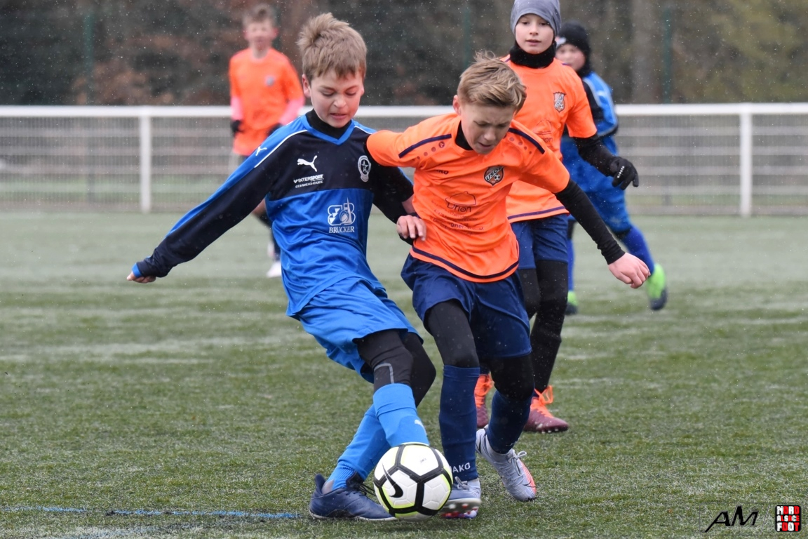 A l’occasion de la quatrième journée de championnat dans cette phase printanière chez les U11/D1 (Groupe A), le FCE Schirrhein accueillait l’US Oberlauterbach afin de tenter de s’adjuger un premier succès cette année, et ce, face à des adversaires ayant remporté, avec la manière, leur match en retard les opposant, mercredi, au FCSR Haguenau 2 (7-3). Après une première période se soldant par un avantage confortable en faveur des visiteurs grâce à des réalisations signées Schmittheisler Thomas (6e), Beyer Liam (10e) et Muller Tilio (13e) contre une réduction du score signée Pinton Mattéo (15e) pour les locaux, les “Oranges” allaient corser l’addition en seconde période grâce à des réalisations inscrites par Kraemer Maé (28e et 44e), Muller Tilio (31e) et Hoerth Maé (30e) tout en concédant un but ayant été inscrit par Issenschmitt Esteban (43e), les protégés de Kraemer Sébastien finissant donc par largement s’imposer sur ce score de 2-7! Retrouvez, ci-dessous, quelques images de cette rencontre et, pour en apprécier le contenu, veuillez cliquer sur l’une d’entre-elles pour afficher le diaporama.
