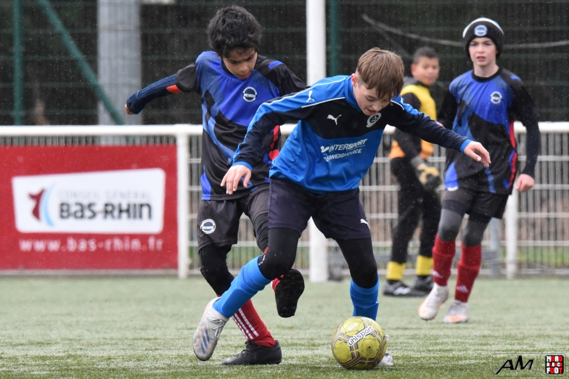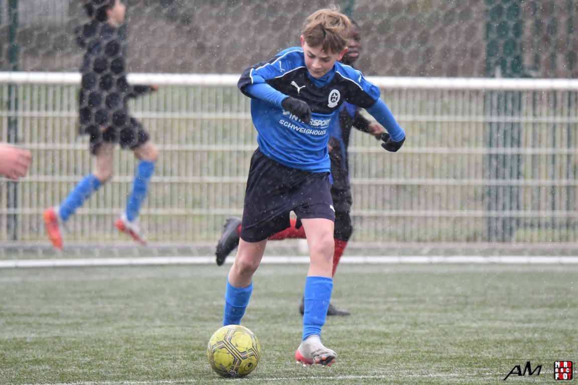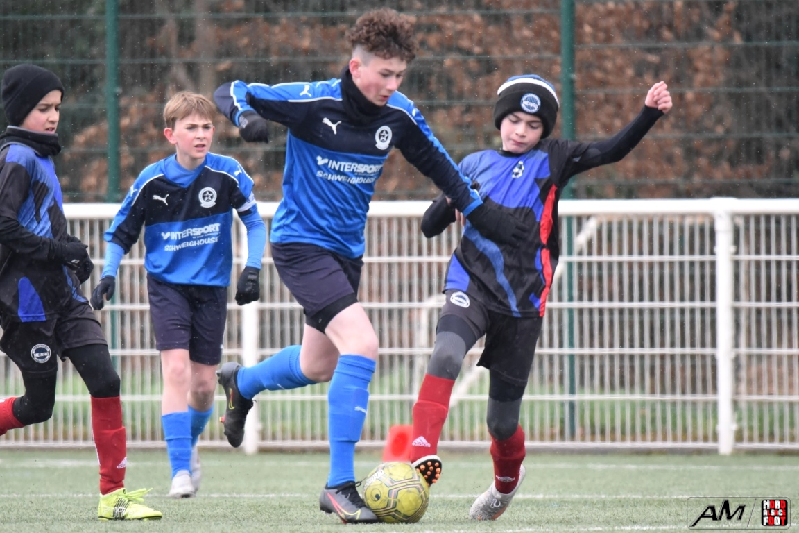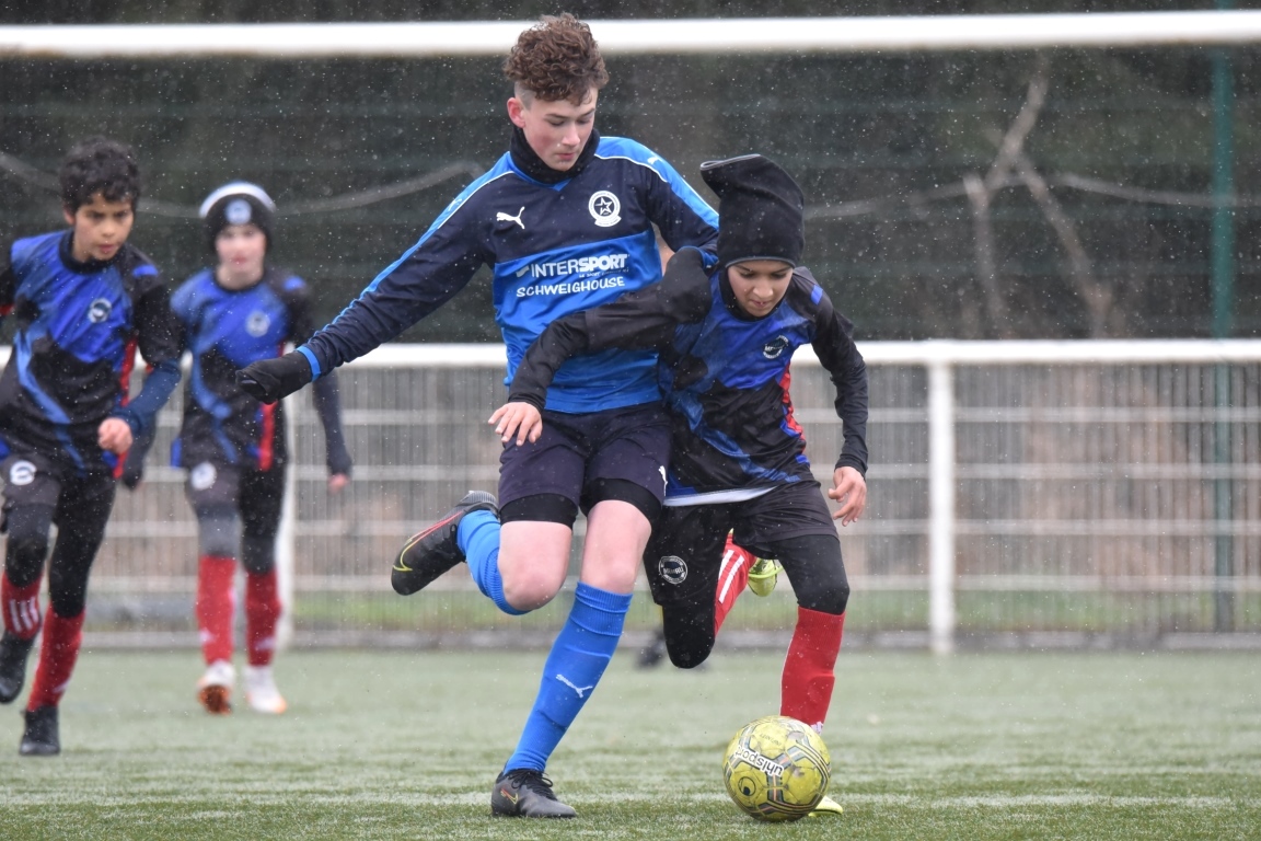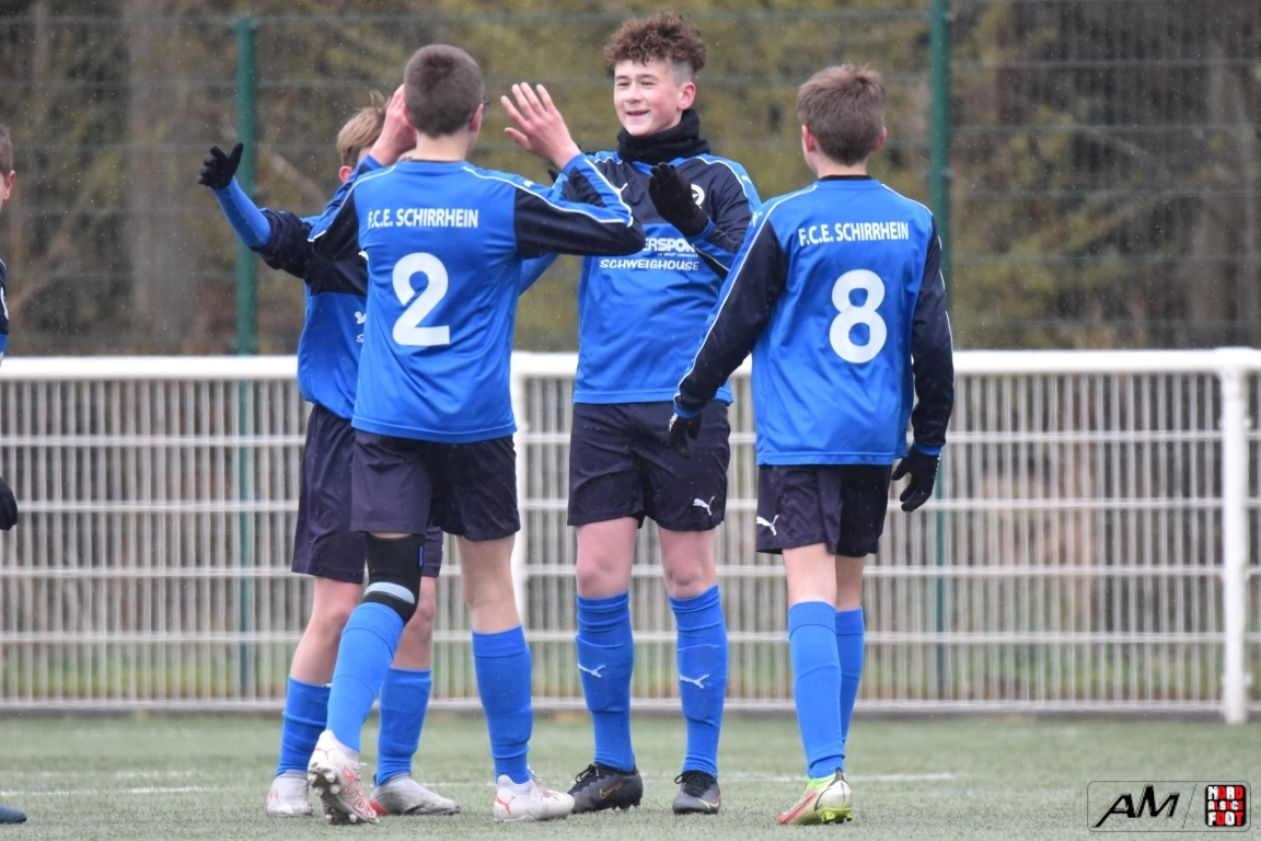 A l’occasion de la quatrième journée de championnat dans cette phase printanière chez les U13/D2 Titre (Groupe B), le FCE Schirrhein (2e) accueillait les doublures de l’Inter Meinau (3e) afin de tenter de demeurer invaincus dans cette phase avant le match au sommet de cette poule ayant lieu samedi prochain face au GJAN (15h00). Après une première période se soldant par un large avantage en faveur des locaux grâce à des doublés signés Mack (1ère et 18e) et Pierrel (22e et 26e), ces derniers allaient corser l’addition en seconde période en ajoutant trois buts au compteur par l’intermédiaire de Gérard (41e et 51e) et de Mosser (58e), cette avalanche de buts leur permettant finalement de largement s’imposer sur ce score de 7-0! Retrouvez, ci-dessous, quelques images de cette rencontre et, pour en apprécier le contenu, veuillez cliquer sur l’une d’entre-elles pour afficher le diaporama.