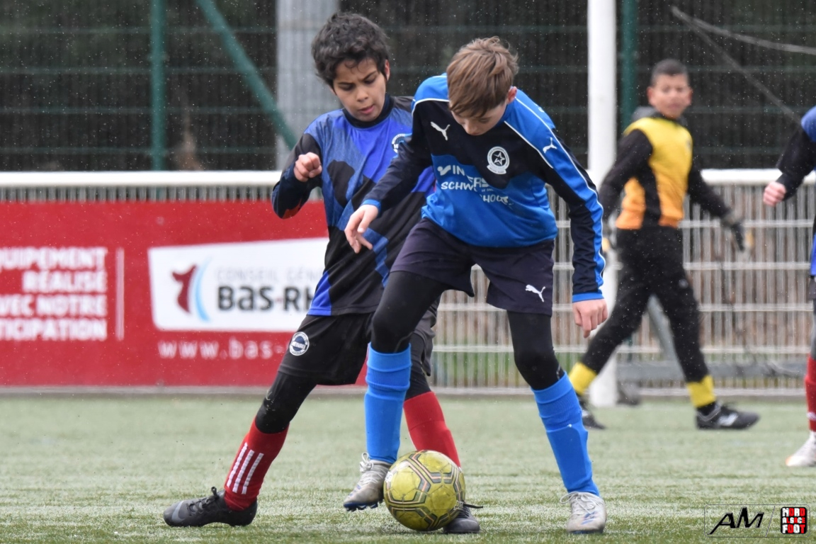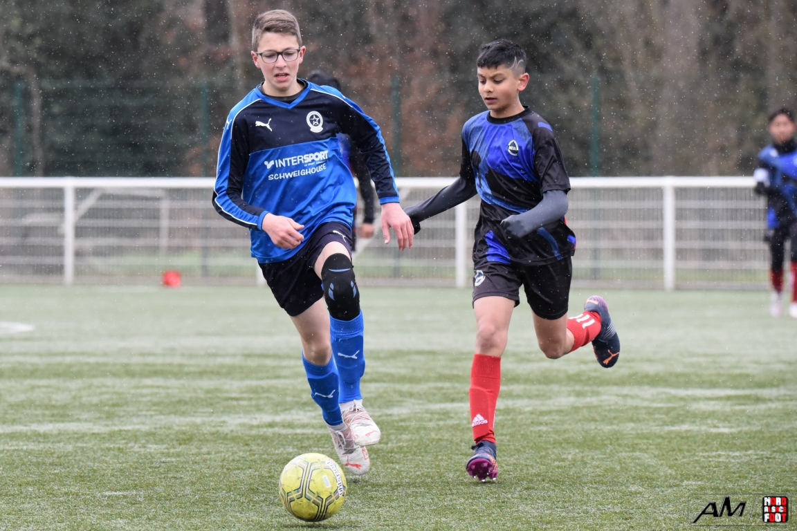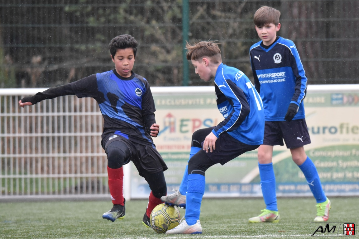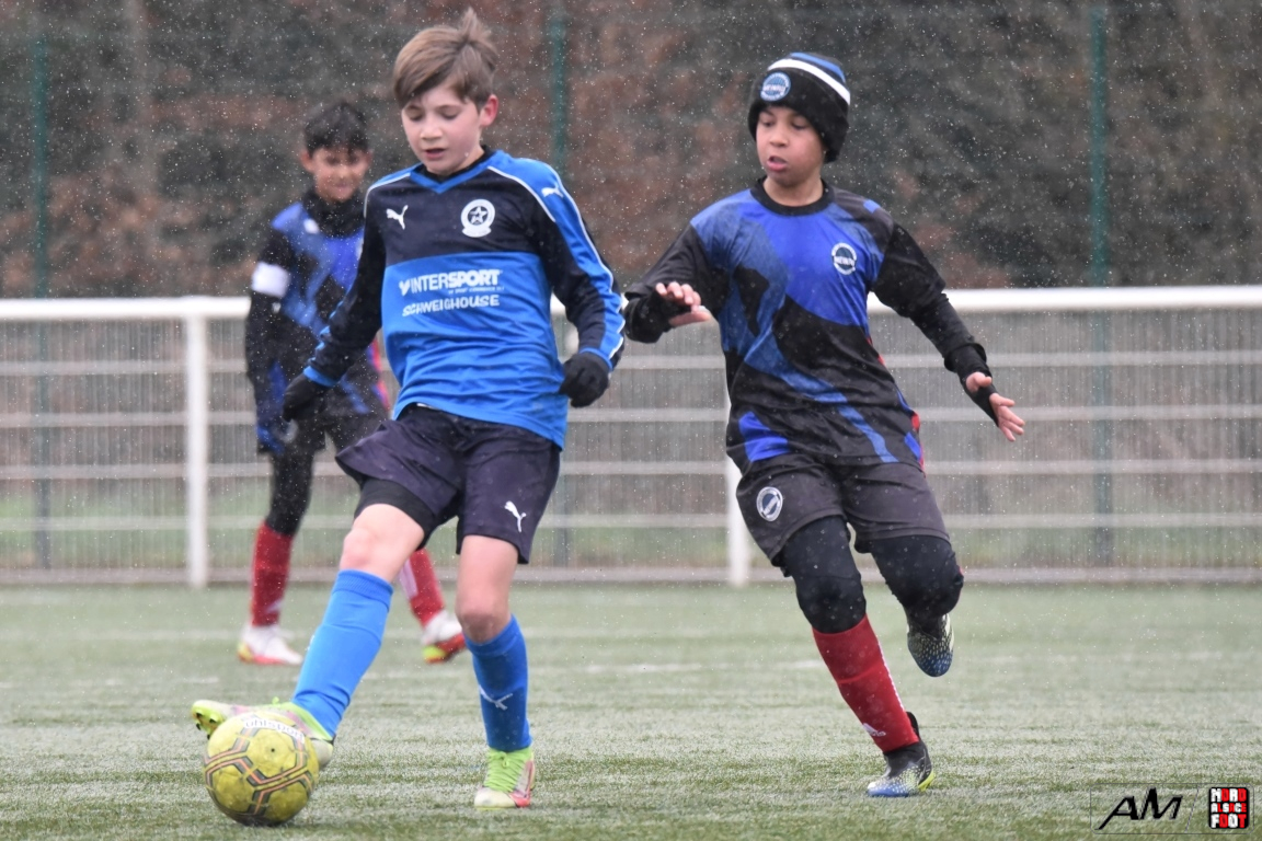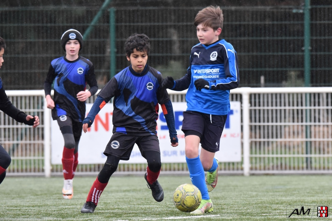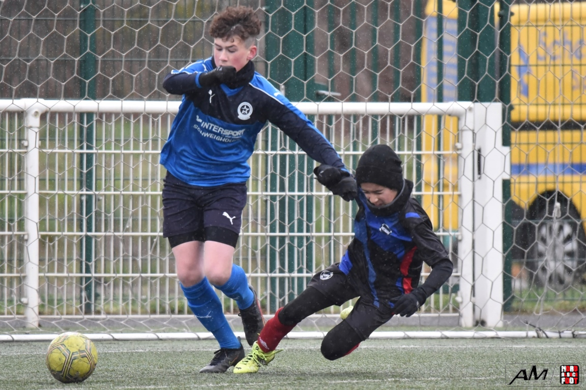 A l’occasion de la quatrième journée de championnat dans cette phase printanière chez les U13/D2 Titre (Groupe B), le FCE Schirrhein (2e) accueillait les doublures de l’Inter Meinau (3e) afin de tenter de demeurer invaincus dans cette phase avant le match au sommet de cette poule ayant lieu samedi prochain face au GJAN (15h00). Après une première période se soldant par un large avantage en faveur des locaux grâce à des doublés signés Mack (1ère et 18e) et Pierrel (22e et 26e), ces derniers allaient corser l’addition en seconde période en ajoutant trois buts au compteur par l’intermédiaire de Gérard (41e et 51e) et de Mosser (58e), cette avalanche de buts leur permettant finalement de largement s’imposer sur ce score de 7-0! Retrouvez, ci-dessous, quelques images de cette rencontre et, pour en apprécier le contenu, veuillez cliquer sur l’une d’entre-elles pour afficher le diaporama.