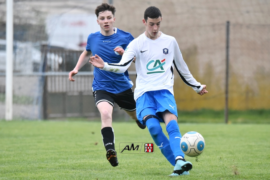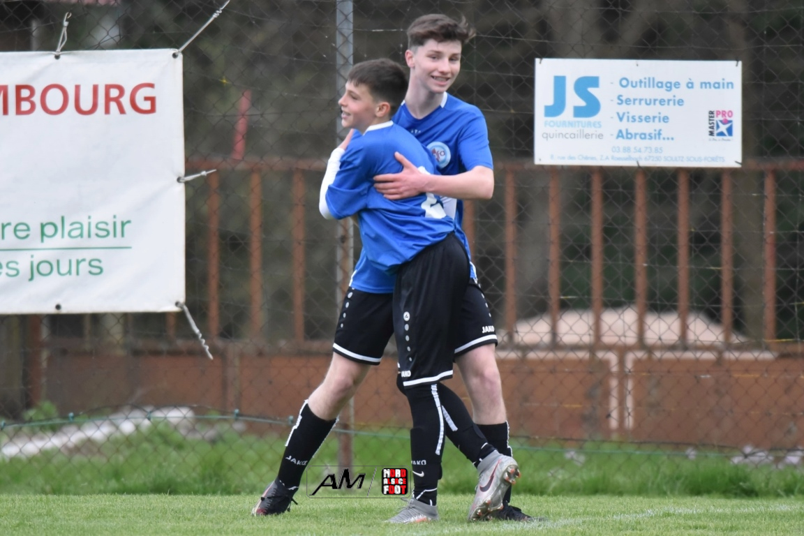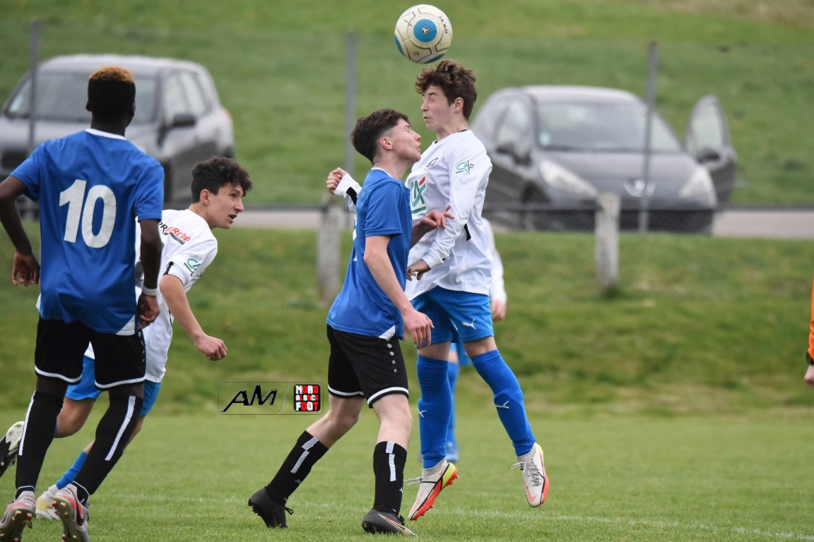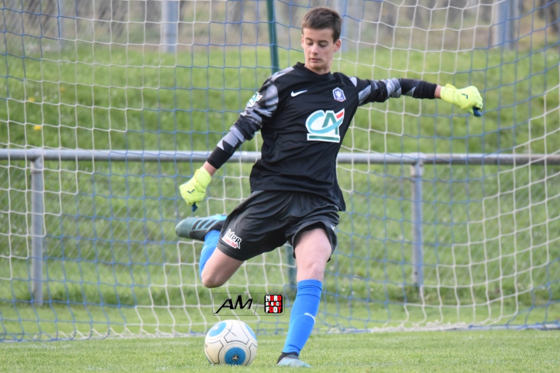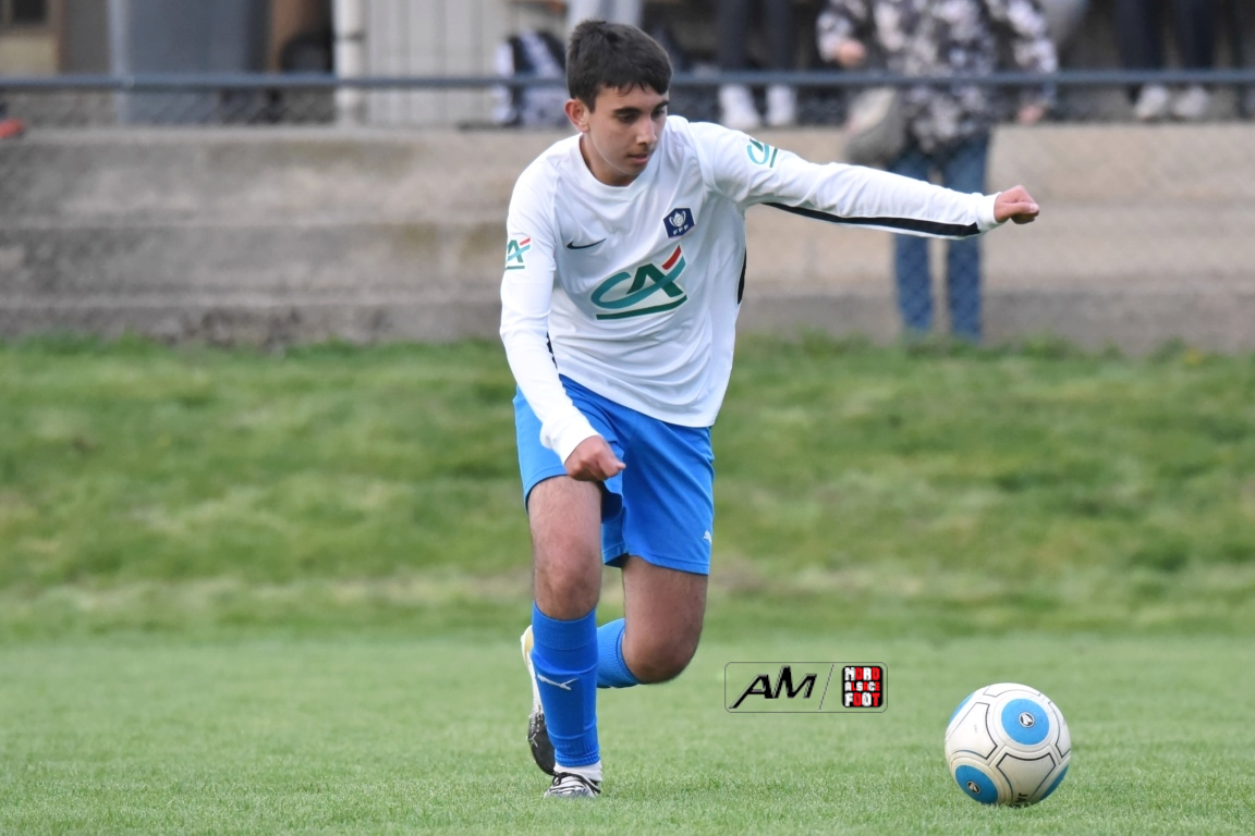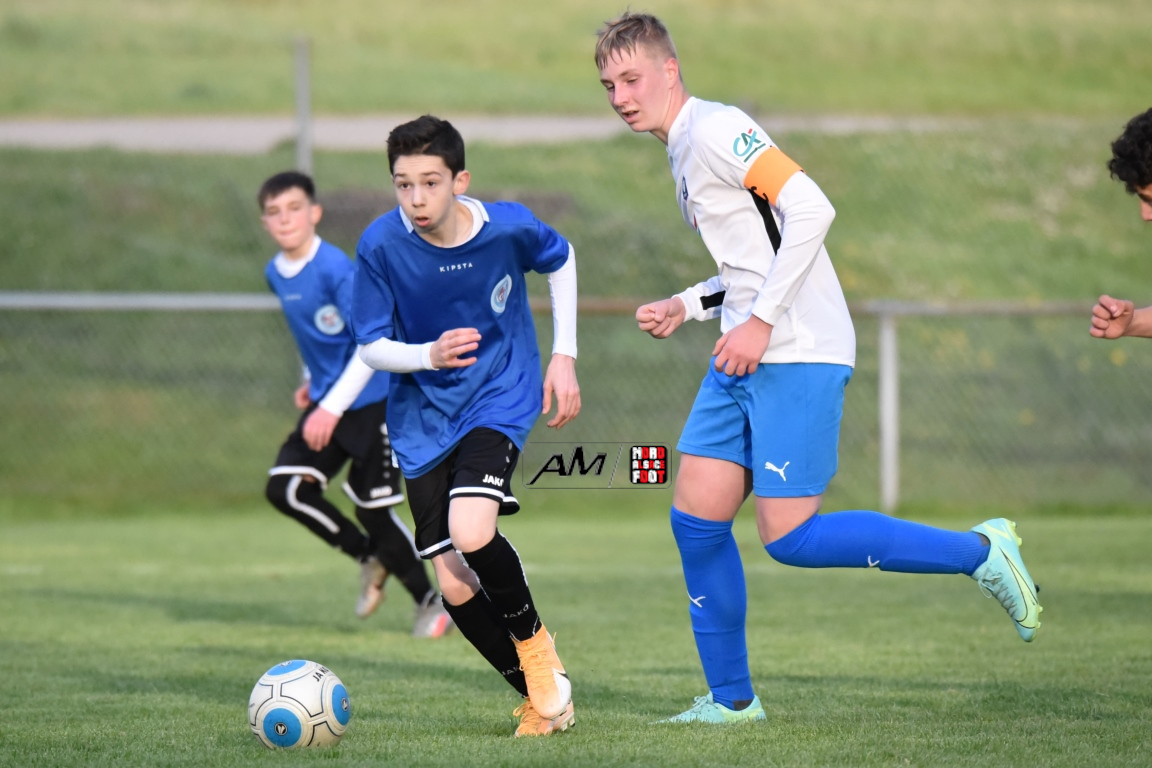 A l’occasion des quarts de finale de la Coupe d’Encouragement – Crédit Mutuel de la catégorie U15, le Groupement Jeunes d’Alsace du Nord (District 1) accueillait l’US Sarre-Union (District 3) afin de tenter de s’adjuger l’un des quatre ticket pour le dernier carré de cette compétition. Après une première période se soldant par un score de parité grâce à l’ouverture du score des locaux signée Schucke Pierre (25e) contre une égalisation des visiteurs signée Mahraoui Naël (30e), les protégés de Treger Yannick allaient reprendre l’avantage à la 45e minute de jeu par l’intermédiaire de Lusumbu Luvumbu Donald avant que les visiteurs ne parviennent à égaliser à la 65e minute de jeu par l’intermédiaire de Emanuele David, les deux formations se neutralisant ensuite jusqu’au coup de sifflet final les envoyant tout droit à la séance de tirs-au-but. Lors du premier tir, Schucke Quentin (GJAN) répondit à Rostoucher Luc. Lors du second tir, Boheim Mathieu (GJAN) répondit à Mahraoui Naël. Lors du troisième tir, Schorn Noah (GJAN) répondit à Leyser Simon. Lors du quatrième tir, Schucke Pierre (GJAN) loupa son face-à-face et Emanuele David transforma parfaitement son penalty. Lors du cinquième tir, Jautzy Maxime (GJAN) convertit son penalty tandis que Schneider Nicolas loupa son face-à-face avec Hoffschier Baptiste. Lors du sixième tir, Lusumbu Luvumbu Donald (GJAN) répondit à Bleichner Noah. Lors du septième tir, Laffitte Leopoldes Kylian (USSU) loupa son face-à-face avant que Khalaf Omar n’offre la qualification au GJAN après avoir pris Bleichner Noah à contre-pied. Retrouvez, ci-dessous, quelques images de cette rencontre et, pour en apprécier le contenu, veuillez cliquer sur l’une d’entre-elles pour afficher le diaporama.