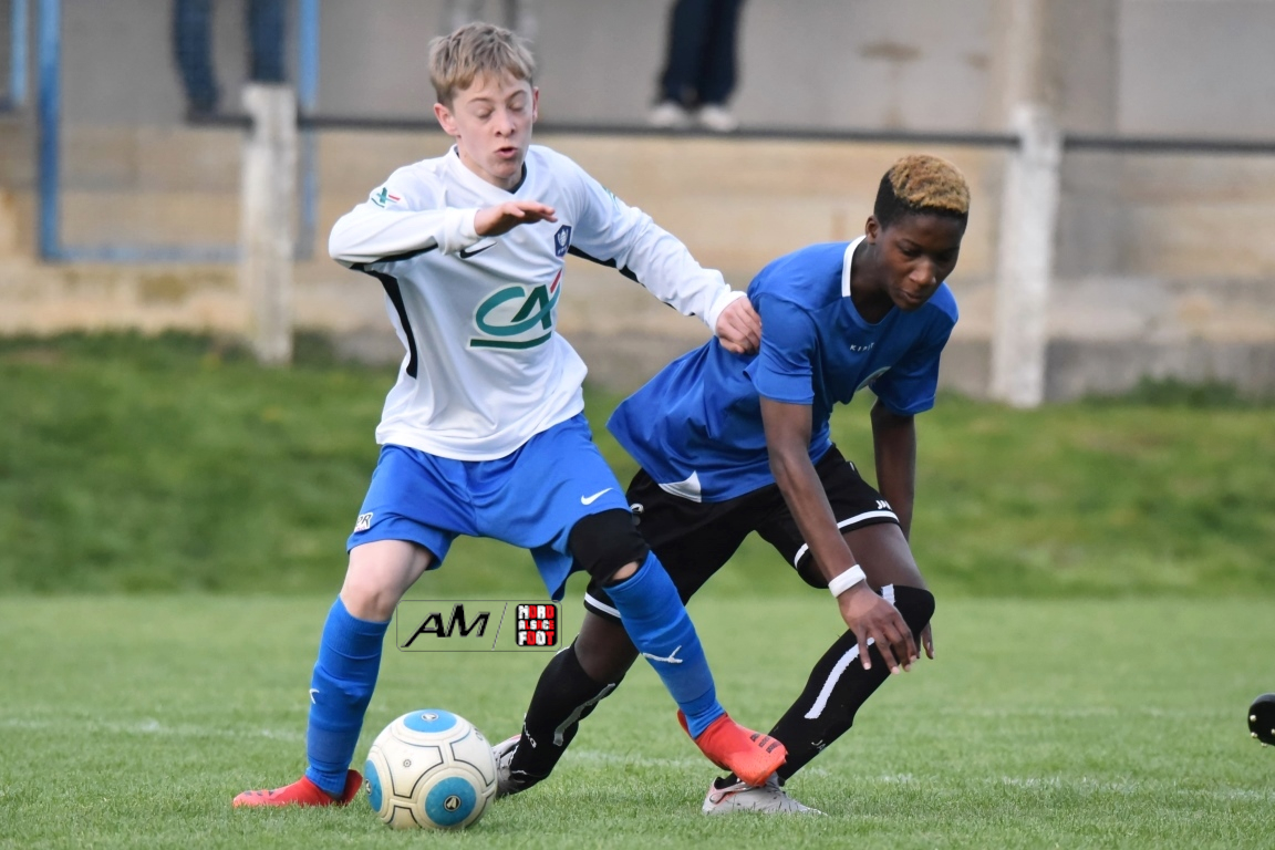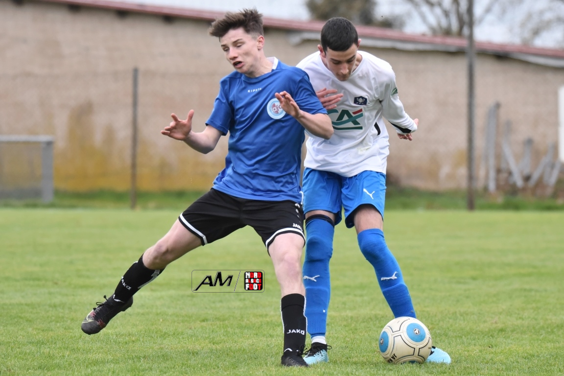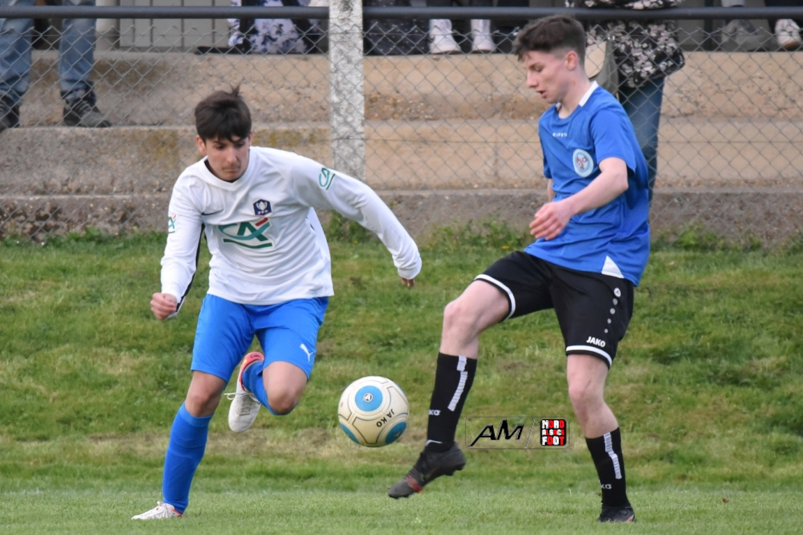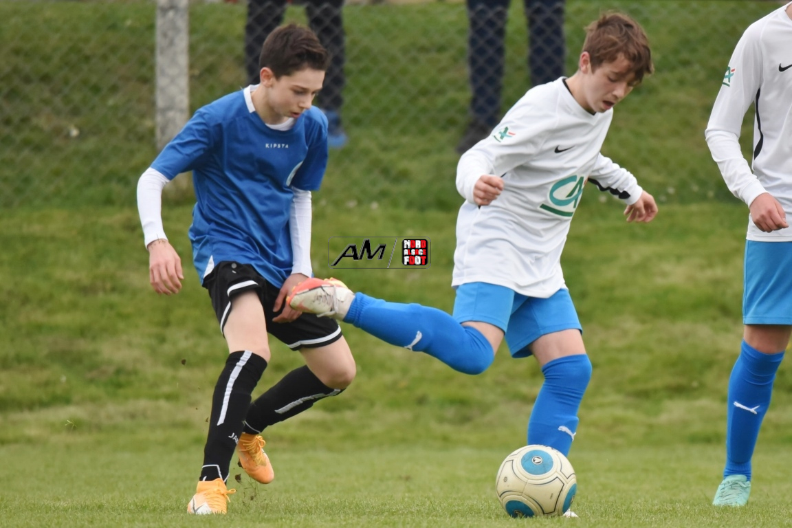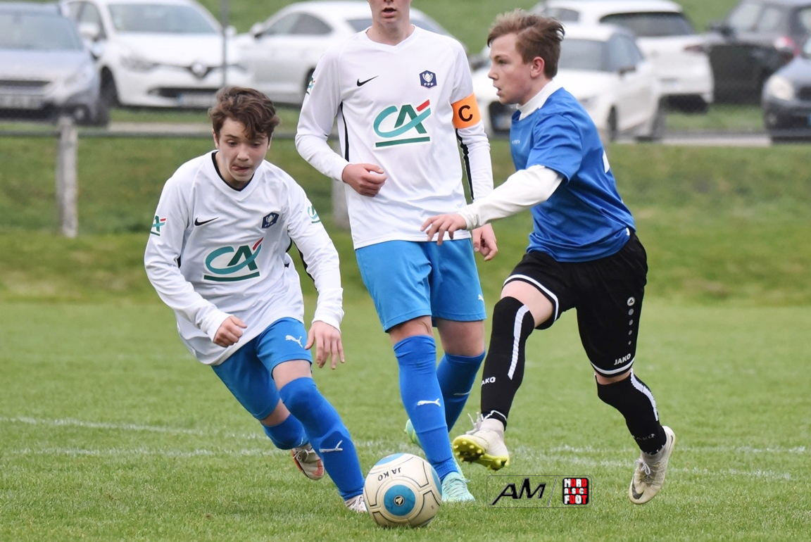 A l’occasion des quarts de finale de la Coupe d’Encouragement – Crédit Mutuel de la catégorie U15, le Groupement Jeunes d’Alsace du Nord (District 1) accueillait l’US Sarre-Union (District 3) afin de tenter de s’adjuger l’un des quatre ticket pour le dernier carré de cette compétition. Après une première période se soldant par un score de parité grâce à l’ouverture du score des locaux signée Schucke Pierre (25e) contre une égalisation des visiteurs signée Mahraoui Naël (30e), les protégés de Treger Yannick allaient reprendre l’avantage à la 45e minute de jeu par l’intermédiaire de Lusumbu Luvumbu Donald avant que les visiteurs ne parviennent à égaliser à la 65e minute de jeu par l’intermédiaire de Emanuele David, les deux formations se neutralisant ensuite jusqu’au coup de sifflet final les envoyant tout droit à la séance de tirs-au-but. Lors du premier tir, Schucke Quentin (GJAN) répondit à Rostoucher Luc. Lors du second tir, Boheim Mathieu (GJAN) répondit à Mahraoui Naël. Lors du troisième tir, Schorn Noah (GJAN) répondit à Leyser Simon. Lors du quatrième tir, Schucke Pierre (GJAN) loupa son face-à-face et Emanuele David transforma parfaitement son penalty. Lors du cinquième tir, Jautzy Maxime (GJAN) convertit son penalty tandis que Schneider Nicolas loupa son face-à-face avec Hoffschier Baptiste. Lors du sixième tir, Lusumbu Luvumbu Donald (GJAN) répondit à Bleichner Noah. Lors du septième tir, Laffitte Leopoldes Kylian (USSU) loupa son face-à-face avant que Khalaf Omar n’offre la qualification au GJAN après avoir pris Bleichner Noah à contre-pied. Retrouvez, ci-dessous, quelques images de cette rencontre et, pour en apprécier le contenu, veuillez cliquer sur l’une d’entre-elles pour afficher le diaporama.