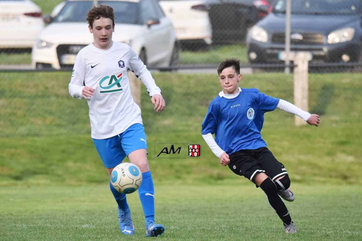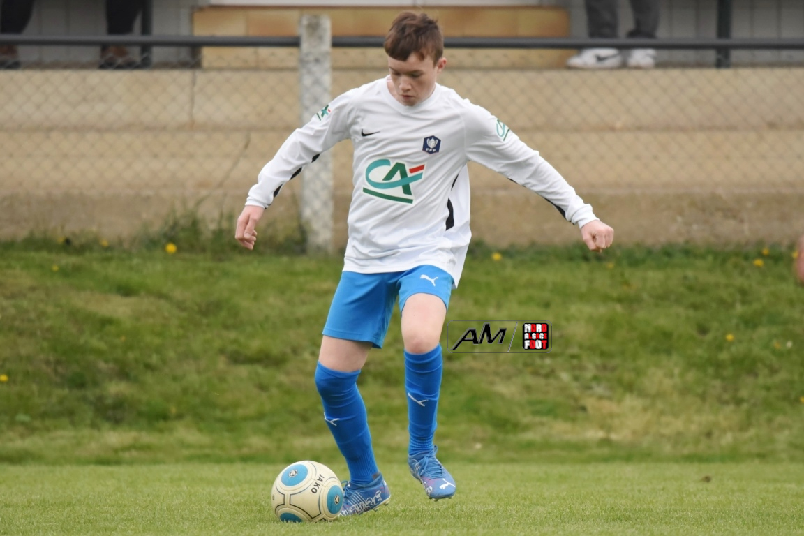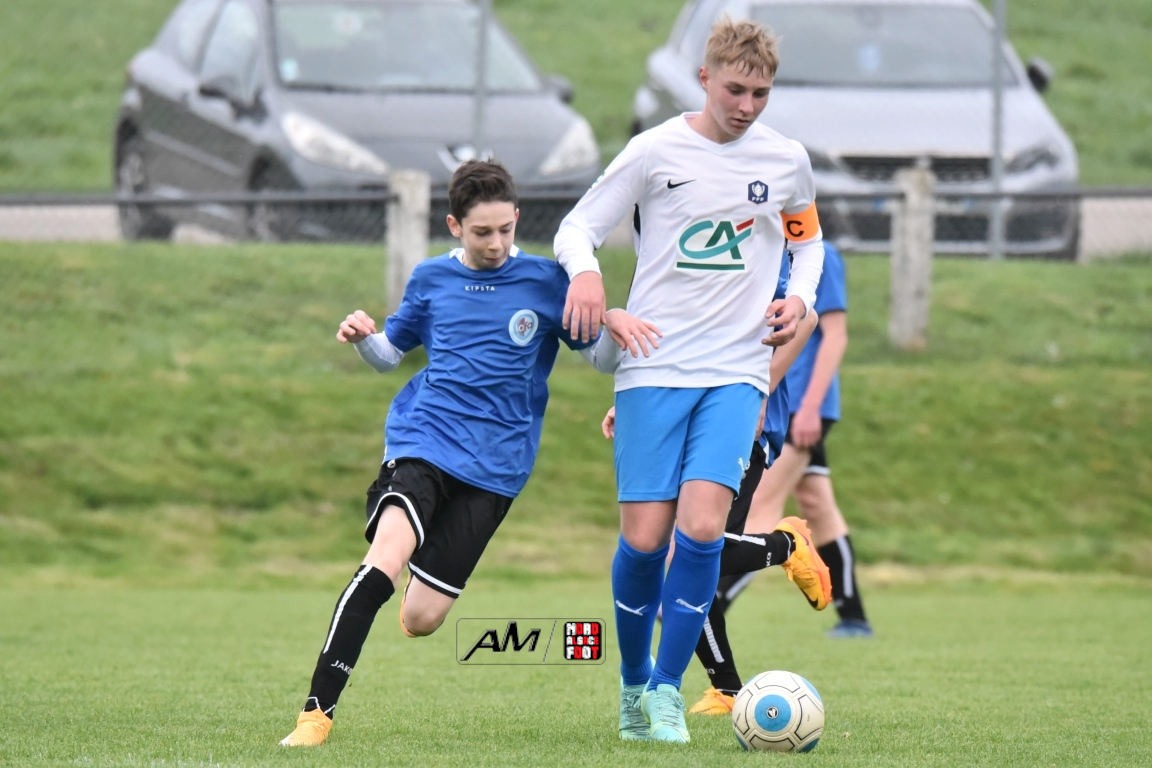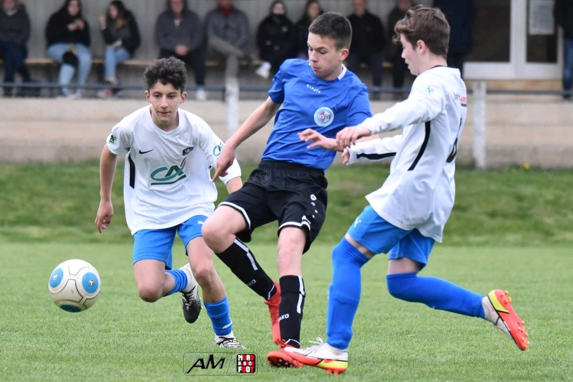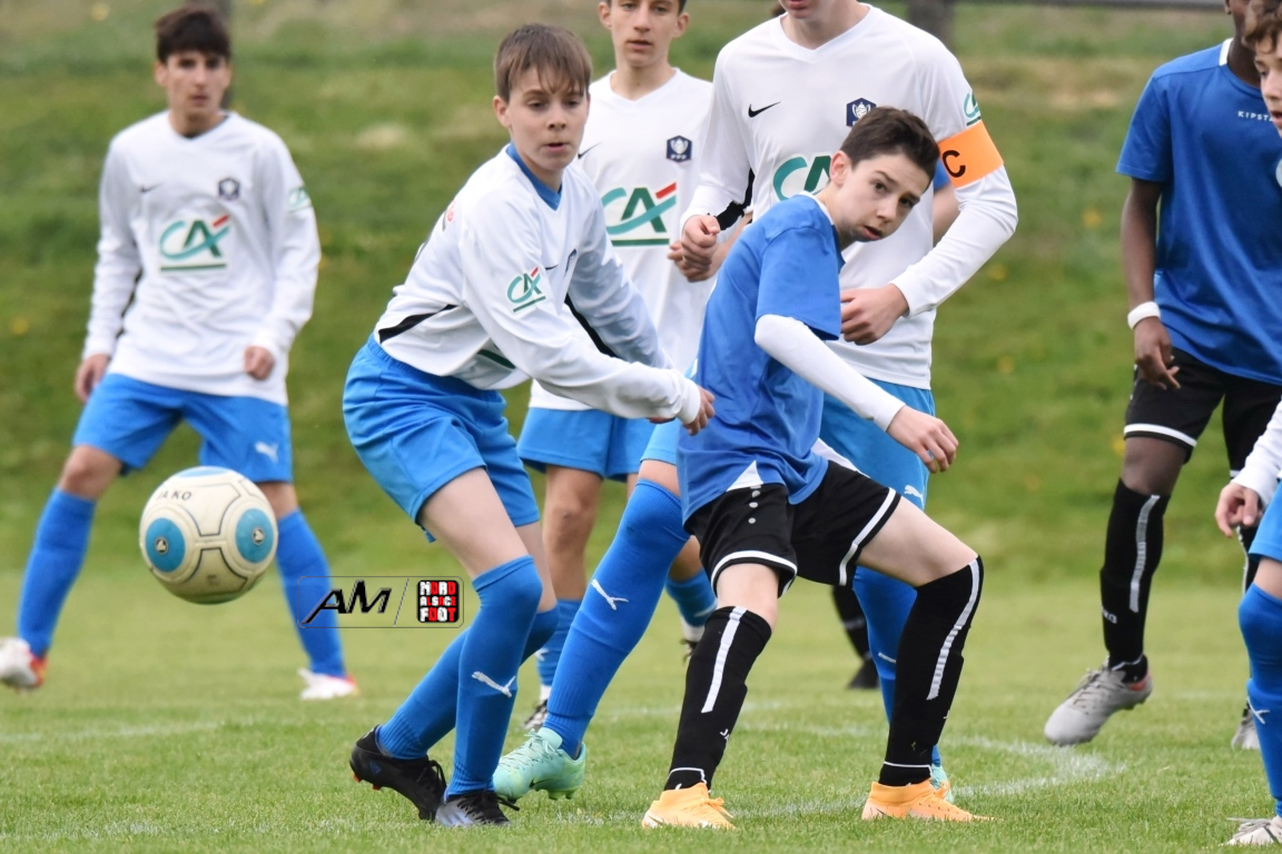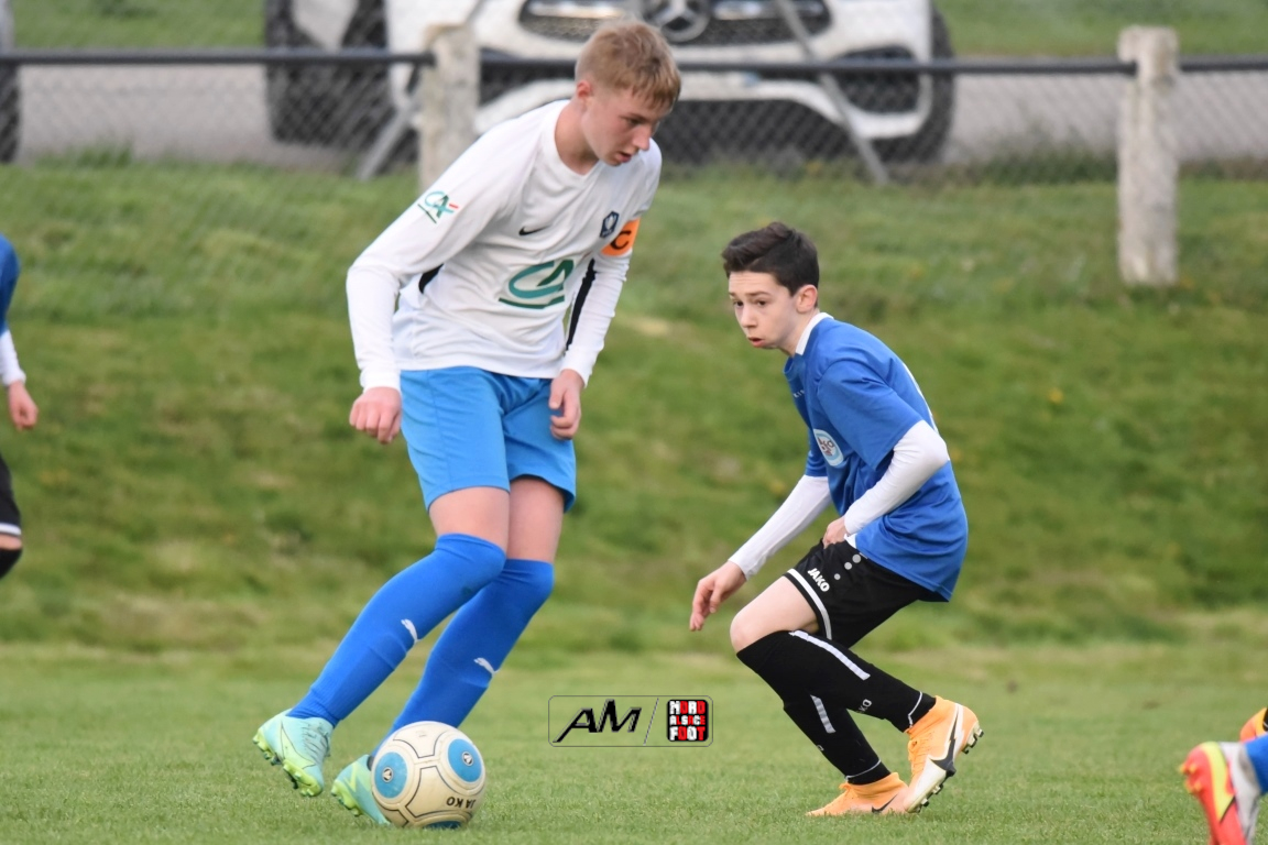 A l’occasion des quarts de finale de la Coupe d’Encouragement – Crédit Mutuel de la catégorie U15, le Groupement Jeunes d’Alsace du Nord (District 1) accueillait l’US Sarre-Union (District 3) afin de tenter de s’adjuger l’un des quatre ticket pour le dernier carré de cette compétition. Après une première période se soldant par un score de parité grâce à l’ouverture du score des locaux signée Schucke Pierre (25e) contre une égalisation des visiteurs signée Mahraoui Naël (30e), les protégés de Treger Yannick allaient reprendre l’avantage à la 45e minute de jeu par l’intermédiaire de Lusumbu Luvumbu Donald avant que les visiteurs ne parviennent à égaliser à la 65e minute de jeu par l’intermédiaire de Emanuele David, les deux formations se neutralisant ensuite jusqu’au coup de sifflet final les envoyant tout droit à la séance de tirs-au-but. Lors du premier tir, Schucke Quentin (GJAN) répondit à Rostoucher Luc. Lors du second tir, Boheim Mathieu (GJAN) répondit à Mahraoui Naël. Lors du troisième tir, Schorn Noah (GJAN) répondit à Leyser Simon. Lors du quatrième tir, Schucke Pierre (GJAN) loupa son face-à-face et Emanuele David transforma parfaitement son penalty. Lors du cinquième tir, Jautzy Maxime (GJAN) convertit son penalty tandis que Schneider Nicolas loupa son face-à-face avec Hoffschier Baptiste. Lors du sixième tir, Lusumbu Luvumbu Donald (GJAN) répondit à Bleichner Noah. Lors du septième tir, Laffitte Leopoldes Kylian (USSU) loupa son face-à-face avant que Khalaf Omar n’offre la qualification au GJAN après avoir pris Bleichner Noah à contre-pied. Retrouvez, ci-dessous, quelques images de cette rencontre et, pour en apprécier le contenu, veuillez cliquer sur l’une d’entre-elles pour afficher le diaporama.