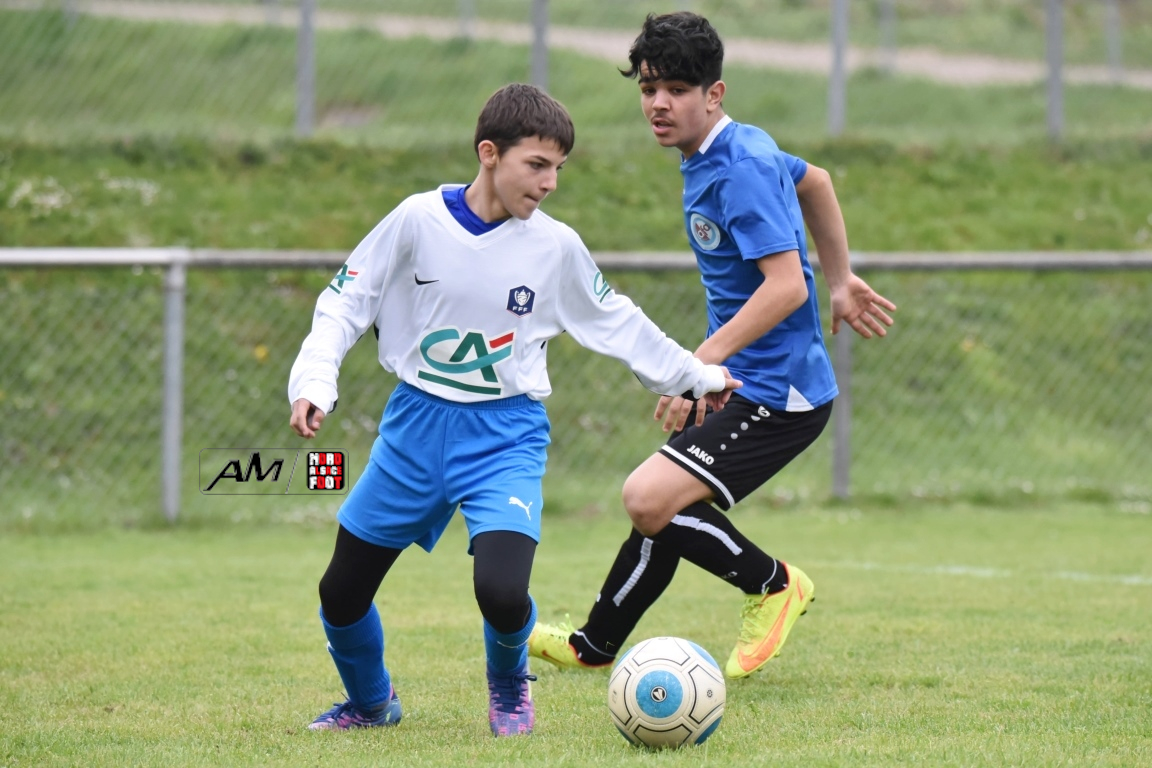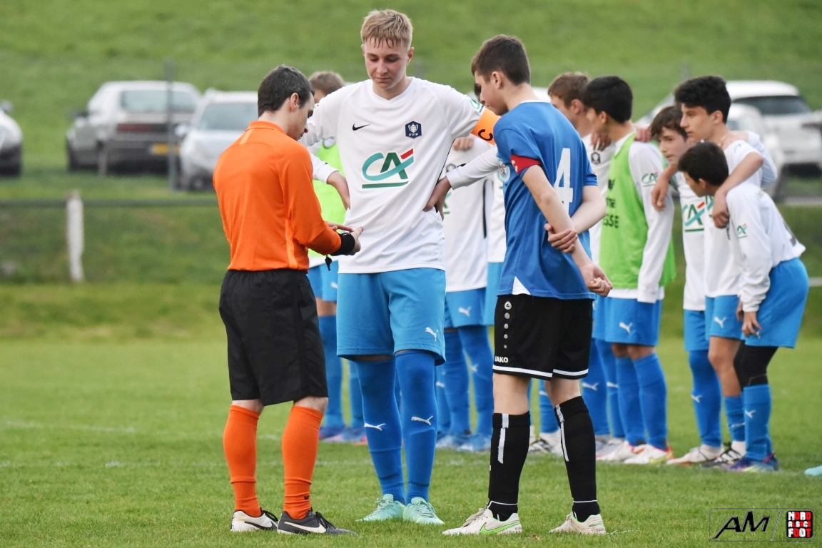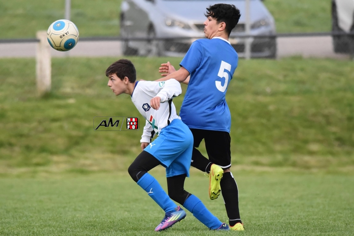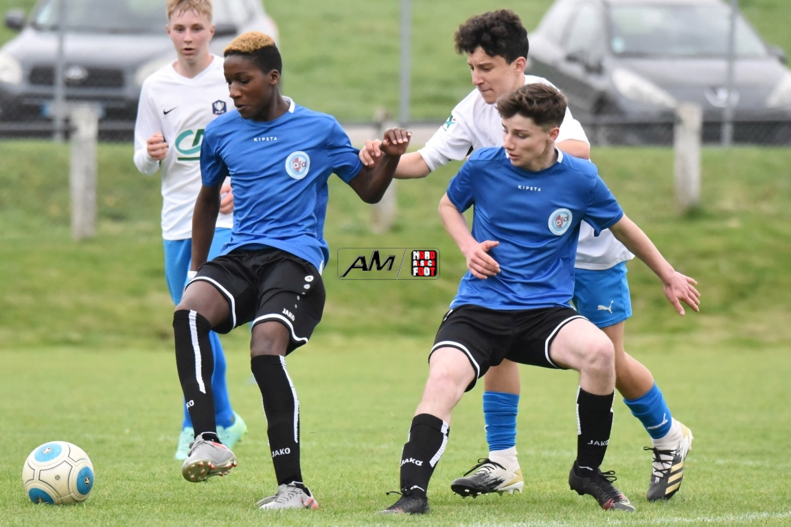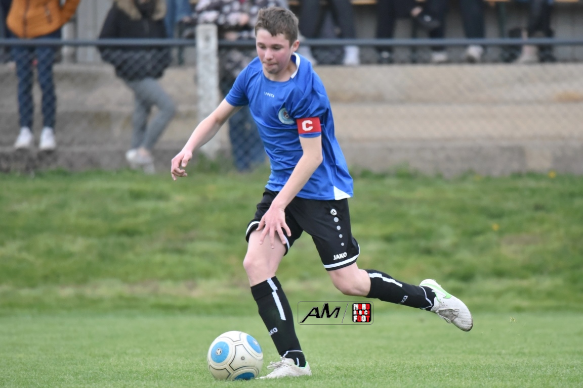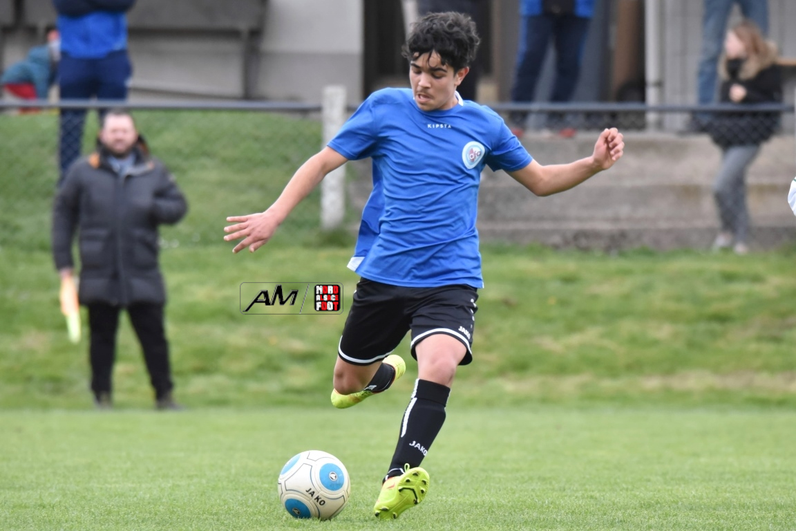 A l’occasion des quarts de finale de la Coupe d’Encouragement – Crédit Mutuel de la catégorie U15, le Groupement Jeunes d’Alsace du Nord (District 1) accueillait l’US Sarre-Union (District 3) afin de tenter de s’adjuger l’un des quatre ticket pour le dernier carré de cette compétition. Après une première période se soldant par un score de parité grâce à l’ouverture du score des locaux signée Schucke Pierre (25e) contre une égalisation des visiteurs signée Mahraoui Naël (30e), les protégés de Treger Yannick allaient reprendre l’avantage à la 45e minute de jeu par l’intermédiaire de Lusumbu Luvumbu Donald avant que les visiteurs ne parviennent à égaliser à la 65e minute de jeu par l’intermédiaire de Emanuele David, les deux formations se neutralisant ensuite jusqu’au coup de sifflet final les envoyant tout droit à la séance de tirs-au-but. Lors du premier tir, Schucke Quentin (GJAN) répondit à Rostoucher Luc. Lors du second tir, Boheim Mathieu (GJAN) répondit à Mahraoui Naël. Lors du troisième tir, Schorn Noah (GJAN) répondit à Leyser Simon. Lors du quatrième tir, Schucke Pierre (GJAN) loupa son face-à-face et Emanuele David transforma parfaitement son penalty. Lors du cinquième tir, Jautzy Maxime (GJAN) convertit son penalty tandis que Schneider Nicolas loupa son face-à-face avec Hoffschier Baptiste. Lors du sixième tir, Lusumbu Luvumbu Donald (GJAN) répondit à Bleichner Noah. Lors du septième tir, Laffitte Leopoldes Kylian (USSU) loupa son face-à-face avant que Khalaf Omar n’offre la qualification au GJAN après avoir pris Bleichner Noah à contre-pied. Retrouvez, ci-dessous, quelques images de cette rencontre et, pour en apprécier le contenu, veuillez cliquer sur l’une d’entre-elles pour afficher le diaporama.