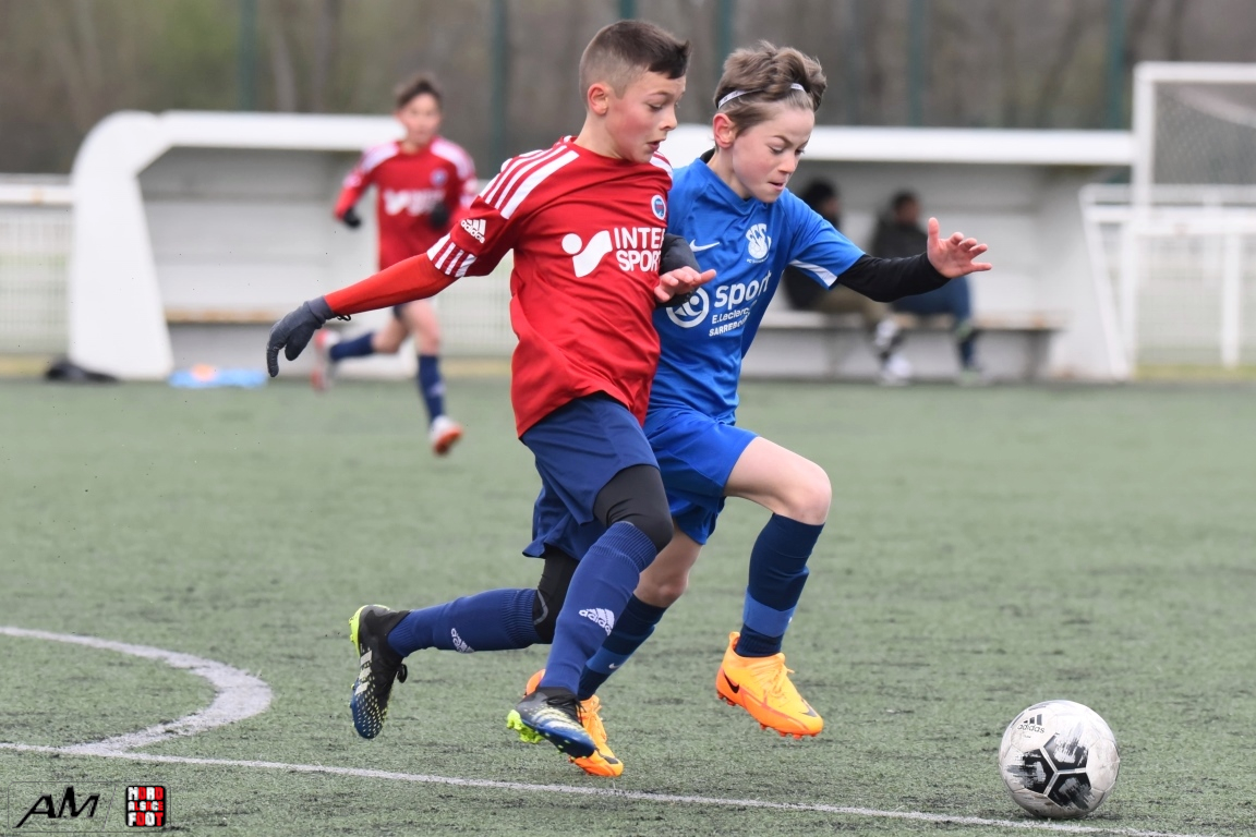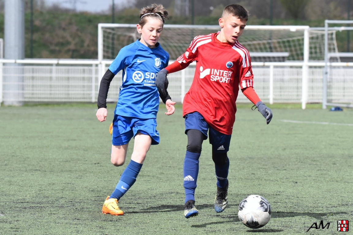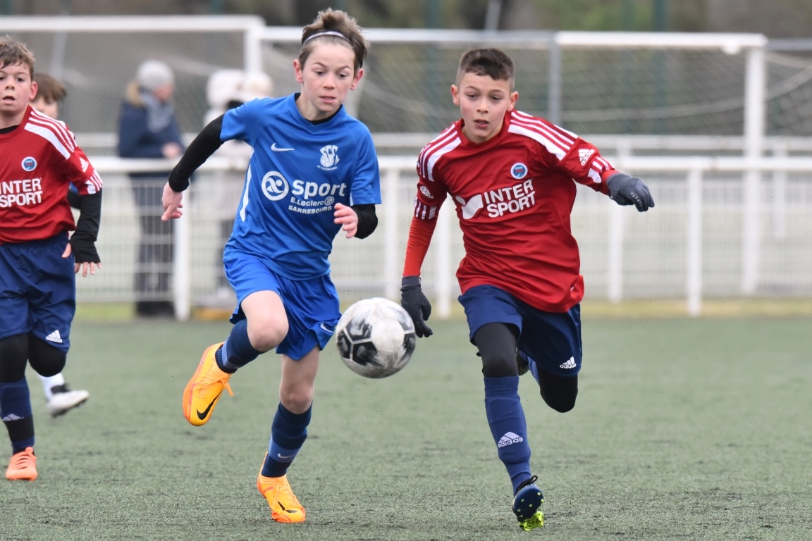 A l’occasion d’un match amical, les U11-1 du FCSR Haguenau accueillaient les U11-1 du FC Sarrebourg afin de tenter de renouer avec la victoire une semaine après avoir été défaits, à domicile, par le SC Schiltigheim (3-5). Après une premier tiers-temps se soldant par un léger avantage en faveur des locaux grâce à des réalisations signées Henni Louis (12e) et Kanga Joachim (18e) contre un but inscrit par Jacquot Pierre (11e) en faveur des visiteurs, le deuxième tiers-temps tourna à l’avantage des visiteurs grâce à des réalisations signées Jacquot Pierre (33e) et Gier Théo (38e) avant que les Mosellans ne corsent l’addition au cours du troisième tiers-temps grâce à des buts inscrits par Gouasdon Maé (60e) et Winterstein Mathys (74e), les Sarrebourgeois finissant donc par s’imposer sur ce score de 2-5! Retrouvez, ci-dessous, quelques images de cette rencontre et, pour en apprécier le contenu, veuillez cliquer sur l’une d’entre-elles pour afficher le diaporama.