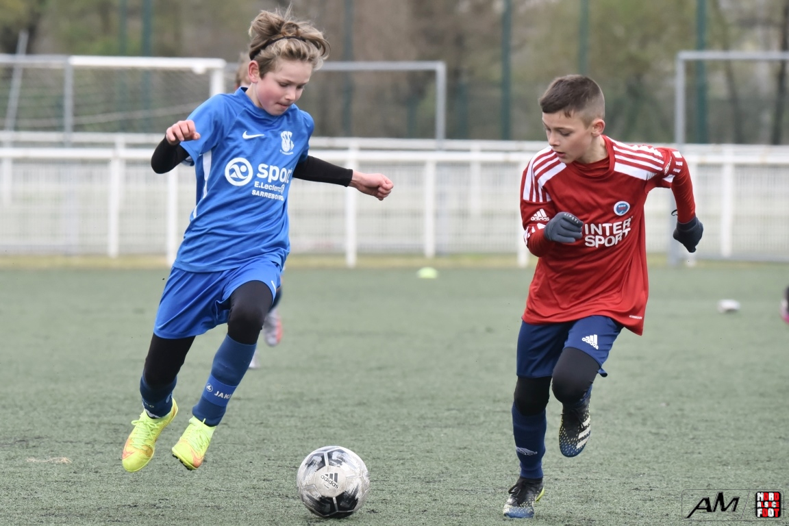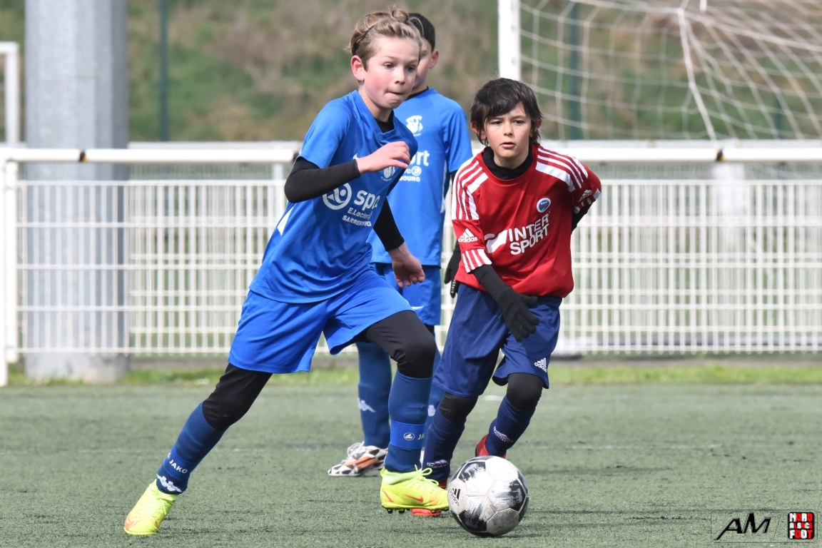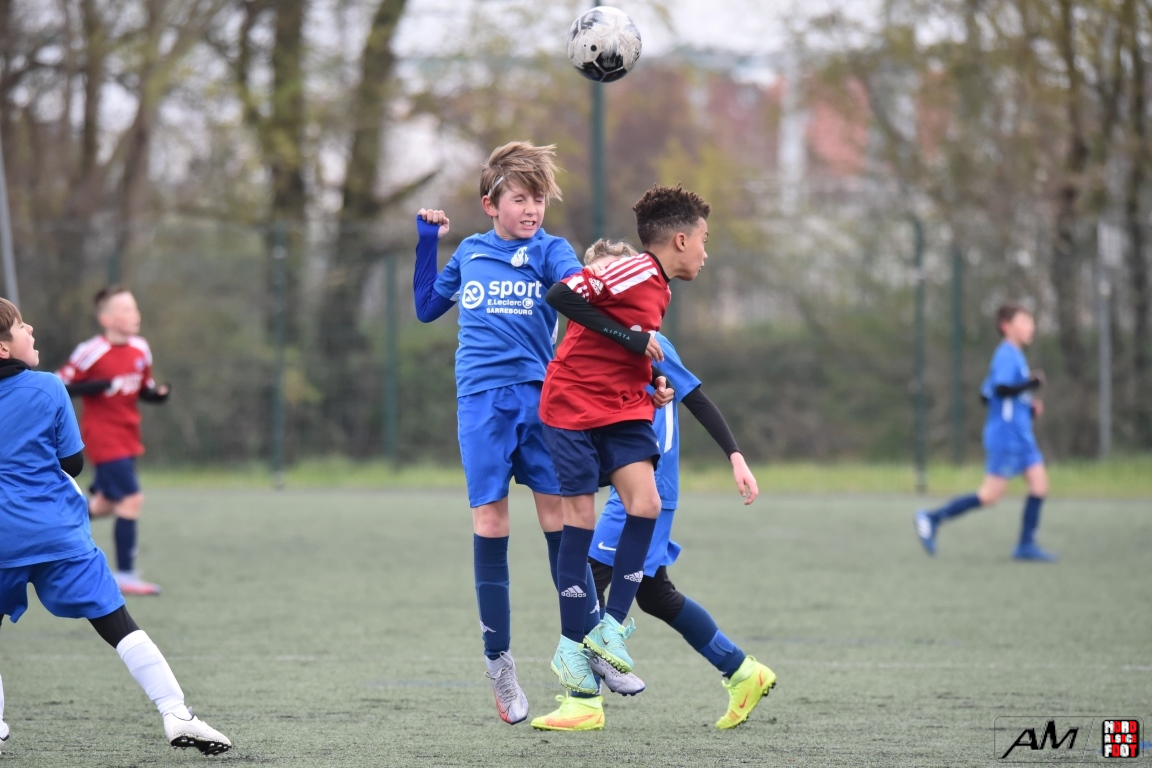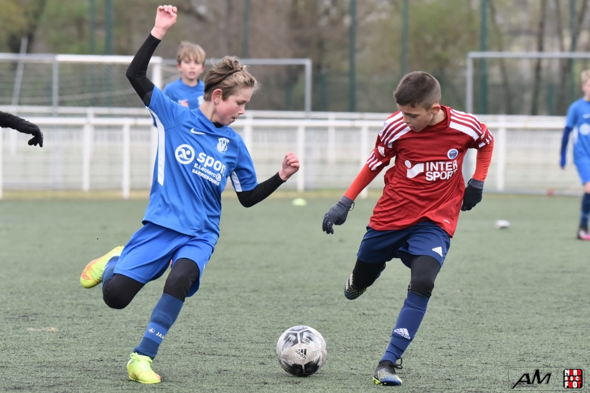 A l’occasion d’un match amical, les U11-1 du FCSR Haguenau accueillaient les U11-1 du FC Sarrebourg afin de tenter de renouer avec la victoire une semaine après avoir été défaits, à domicile, par le SC Schiltigheim (3-5). Après une premier tiers-temps se soldant par un léger avantage en faveur des locaux grâce à des réalisations signées Henni Louis (12e) et Kanga Joachim (18e) contre un but inscrit par Jacquot Pierre (11e) en faveur des visiteurs, le deuxième tiers-temps tourna à l’avantage des visiteurs grâce à des réalisations signées Jacquot Pierre (33e) et Gier Théo (38e) avant que les Mosellans ne corsent l’addition au cours du troisième tiers-temps grâce à des buts inscrits par Gouasdon Maé (60e) et Winterstein Mathys (74e), les Sarrebourgeois finissant donc par s’imposer sur ce score de 2-5! Retrouvez, ci-dessous, quelques images de cette rencontre et, pour en apprécier le contenu, veuillez cliquer sur l’une d’entre-elles pour afficher le diaporama.