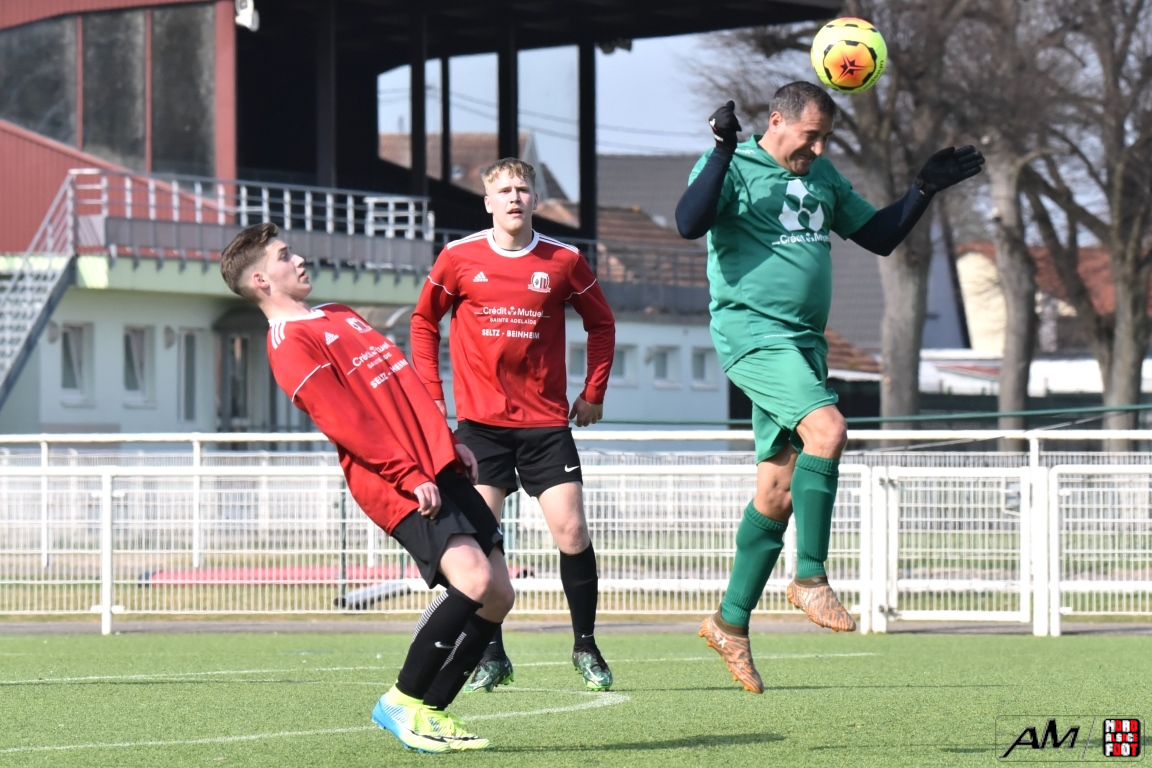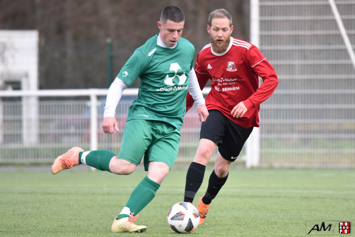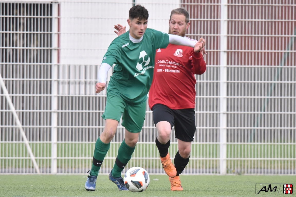 A l’occasion de la quinzième journée de championnat en District 8 (Groupe G), le FC Seltz 4 accueillait la SS Beinheim pour un derby que les visiteurs ne comptaient pas négliger afin de tenter de s’emparer de la place de dauphins du groupe en faveur d’une victoire ce dimanche. Après une première période se soldant par un léger avantage en faveur des visiteurs grâce à des réalisations signées Renard Cyrill (5e) et Oger Raphaël (15e) contre une réduction du score des locaux signée Lauffenburger Théo (31e), les Seltzois allaient inverser la tendance en seconde période en égalisant, dans un premier temps, par l’intermédiaire de Steger Vincent (54e) avant que Roth Julien (84e) et Lauffenburger Théo (87e) ne lui emboite le pas afin de s’adjuger la victoire sur ce score de 4-2! Retrouvez, ci-dessous, quelques images de cette rencontre et, pour en apprécier le contenu, veuillez cliquer sur l’une d’entre-elles pour afficher le diaporama.