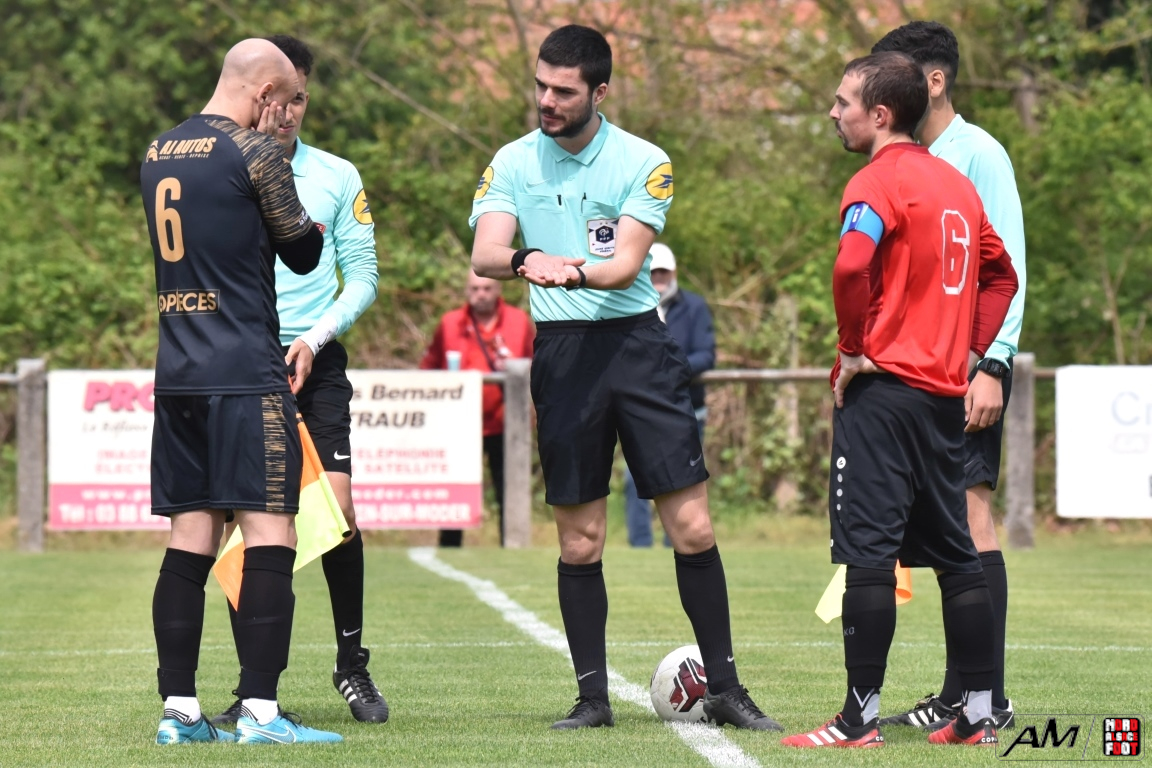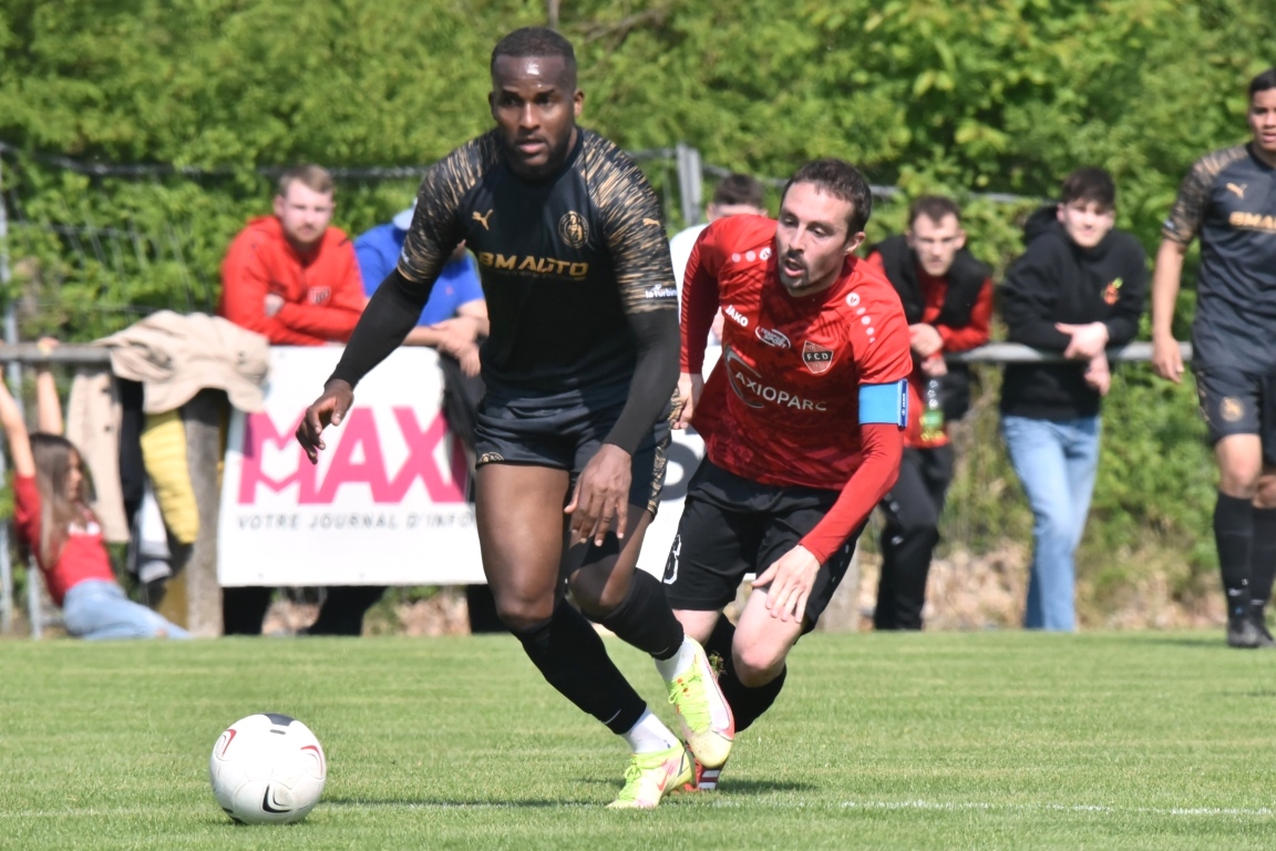 A l’occasion de la dix-neuvième journée de championnat en Régionale 2 (Poule F), le FC Drusenheim (7e) accueillait les dauphins du groupe à savoir Hombourg-Haut SSEP afin de tenter de réaliser un petit exploit face à des adversaires restant sur une belle série de quatre matchs sans défaite. Après une première période se soldant par un score de parité grâce à l’ouverture du score des mosellans signée Da Silva Tavares Emerson (11e) contre une égalisation des locaux signée Ross Mattéo (30e), les rouges et noirs allaient parvenir à faire le break en marquant deux buts coup sur coup après l’heure de jeu grâce notamment à Benyoub Ali (64e) et Roos Mattéo (67e) avant que les cinq dernières minutes du temps réglementaire ne leur soient fatales, les visiteurs parvenant à refaire leur retard en inscrivant deux buts coup sur coup grâce à un CSC de Kistler Raphaël (86e) et grâce à une réalisation signée Kekambus Herman Samuel (89e), les deux équipes finissant finalement par se quitter dos à dos sur ce score de 3-3! Retrouvez, ci-dessous, quelques images de cette rencontre et, pour en apprécier le contenu, veuillez cliquer sur l’une d’entre-elles pour afficher le diaporama.