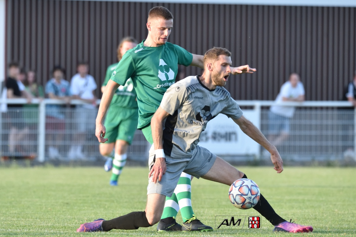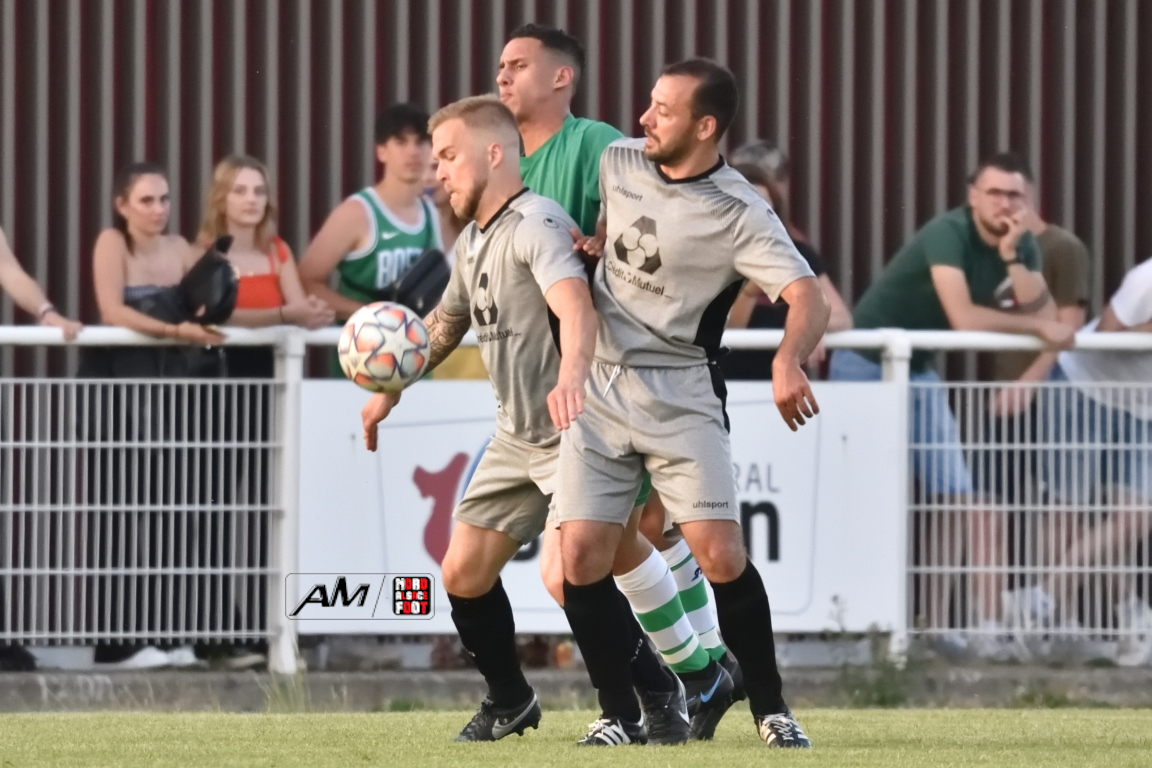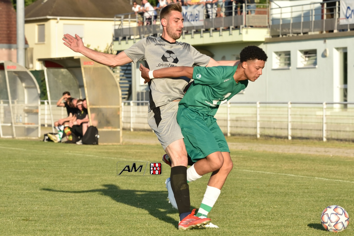 A l’occasion des demi-finales de la Coupe Crédit Mutuel – Secteur Wissembourg, le FC Seltz accueillait le FC Steinseltz afin de tenter de s’offrir une belle parenthèse en coupe après une saison difficile en Régionale 2, les deux formations s’opposant ce mercredi n’étant pas encore assurées de leur maintien à ce niveau. Après une première période se soldant par un court avantage en faveur des visiteurs grâce à l’opportunisme de Fuss Kevan (19e), les Steinseltzois allaient doubler la mise sur un penalty transformé par Debure Kenny (72e) avant que les Seltzois ne se réveillent au cours des dix dernières minutes de jeu en réduisant la marque, dans un premier temps, par l’intermédiaire de Knoery Erwan (80e) puis, dans un second temps, Corneille Luc apporta sa pierre à l’édifice à la 86e minute de jeu en profitant d’une erreur de marquage pour enfiler le ballon au fond des filets mais, alors que les verts pensaient se diriger tout droit vers la séance de tirs-au-but, Mosquera Maxence donna définitivement l’avantage au FC Steinseltz en faisant preuve de sang froid face à Imbery Enzo à la 93e minute de jeu, la troupe à Juncker Thierry rejoignant finalement l’US Oberlauterbach en finale de cette compétition qui aura lieu à Wissembourg le 4 juin prochain. Retrouvez, ci-dessous, quelques images de cette rencontre et, pour en apprécier le contenu, veuillez cliquer sur l’une d’entre-elles pour afficher le diaporama.