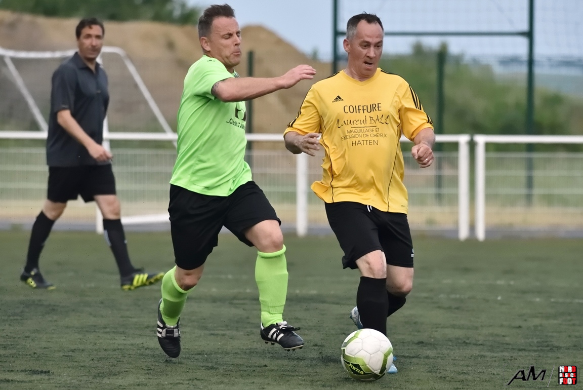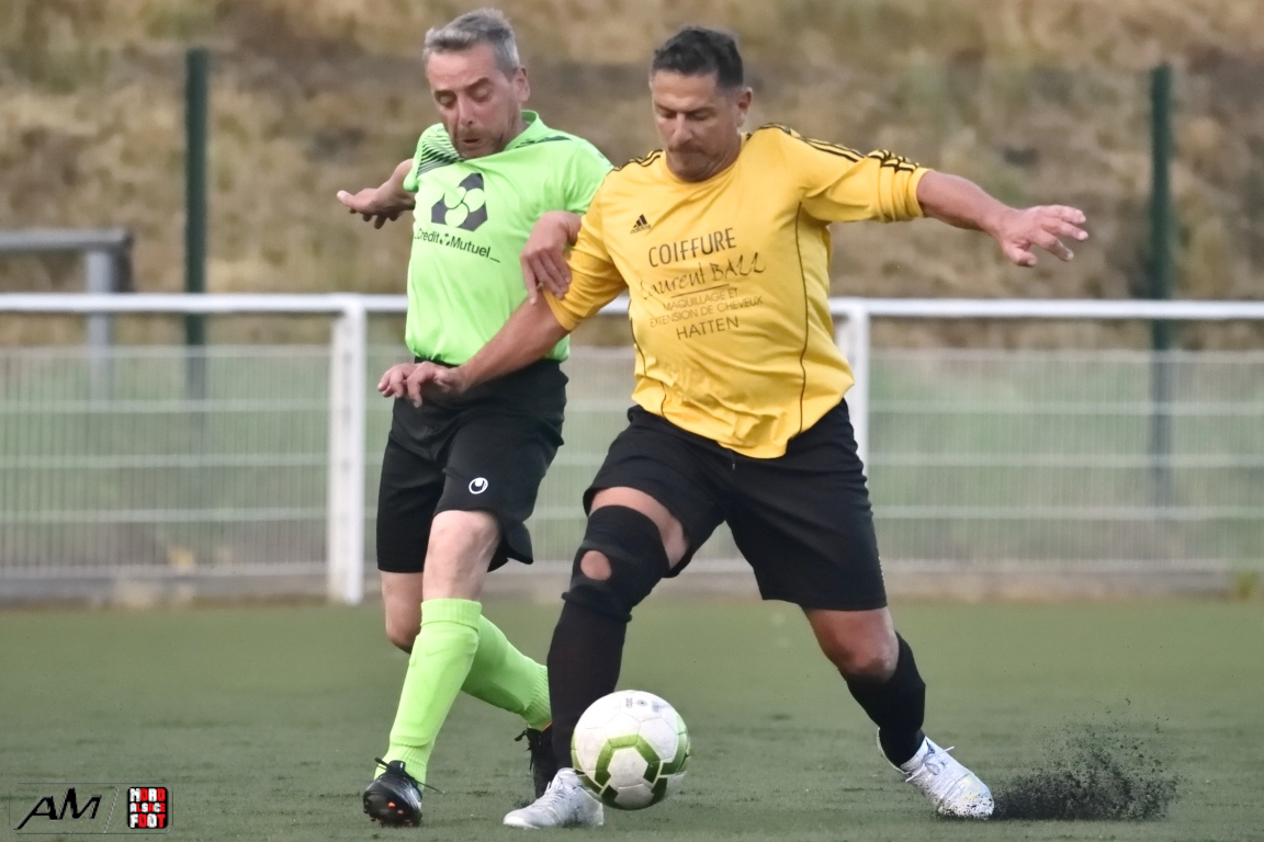 A l’occasion de la treizième journée de championnat chez les Super Vétérans (Groupe I), l’AS Hatten 61 accueillait le FC Seltz 61 pour un derby que les locaux comptaient s’adjuger afin de prendre leur revanche sur le match aller qui s’était soldé par une victoire des Seltzois (4-3). Après une première période se soldant par un score de parité grâce à l’ouverture du score des locaux signée Eisele Christophe (11e) contre une égalisation des visiteurs signée Vix Jean-Yves (12e), les jaunes et noirs allaient reprendre l’avantage en seconde période grâce à un but inscrit par Meyer Sébastien (38e) avant que les Seltzois ne finissent par arracher l’égalisation suite à un penalty transformé par Beushausen Robert (58e), les deux équipes se quittant finalement dos-à-dos sur ce score de 2-2! Retrouvez, ci-dessous, quelques images de cette rencontre et, pour en apprécier le contenu, veuillez cliquer sur l’une d’entre-elles pour afficher le diaporama.