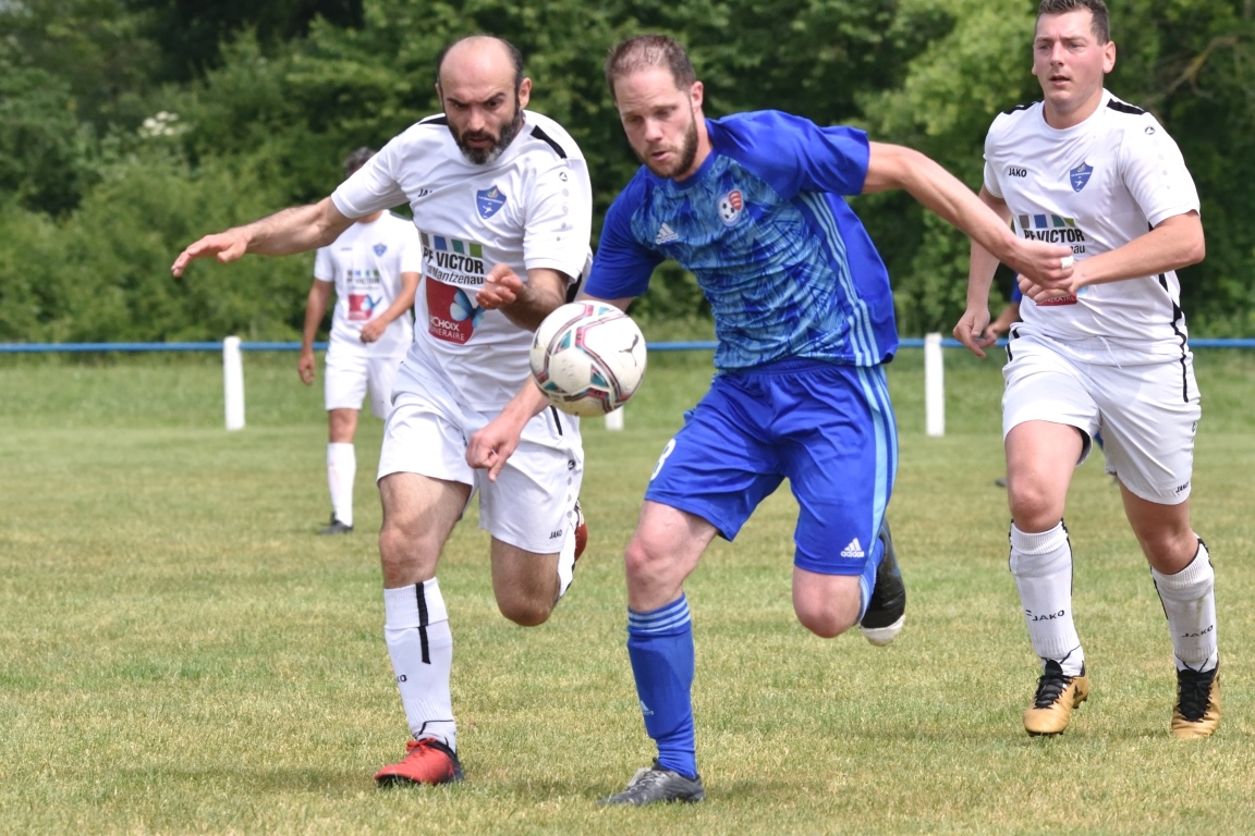 | 75′ | Suite à l’ouverture du score précédente, les visiteurs allaient tenter de rapidement réagir mais, après une perte de balle sur le flanc droit de leur attaque, Jaggi Maxime (Durrenbach/Hegeney 2) partit en contre dans le couloir gauche et, après une course de plus de 30m, il songea à décaler le ballon dans l’axe pour Kleiderer Florian, ce dernier n’hésitant pas à prendre sa chance d’une frappe étant contrée par un défenseur, le ballon revenant ensuite vers Schall Lucas, le meneur de jeu ne se faisant pas prier pour décocher une frappe passant au-dessus du but gardé par Guillou Yann. | |
