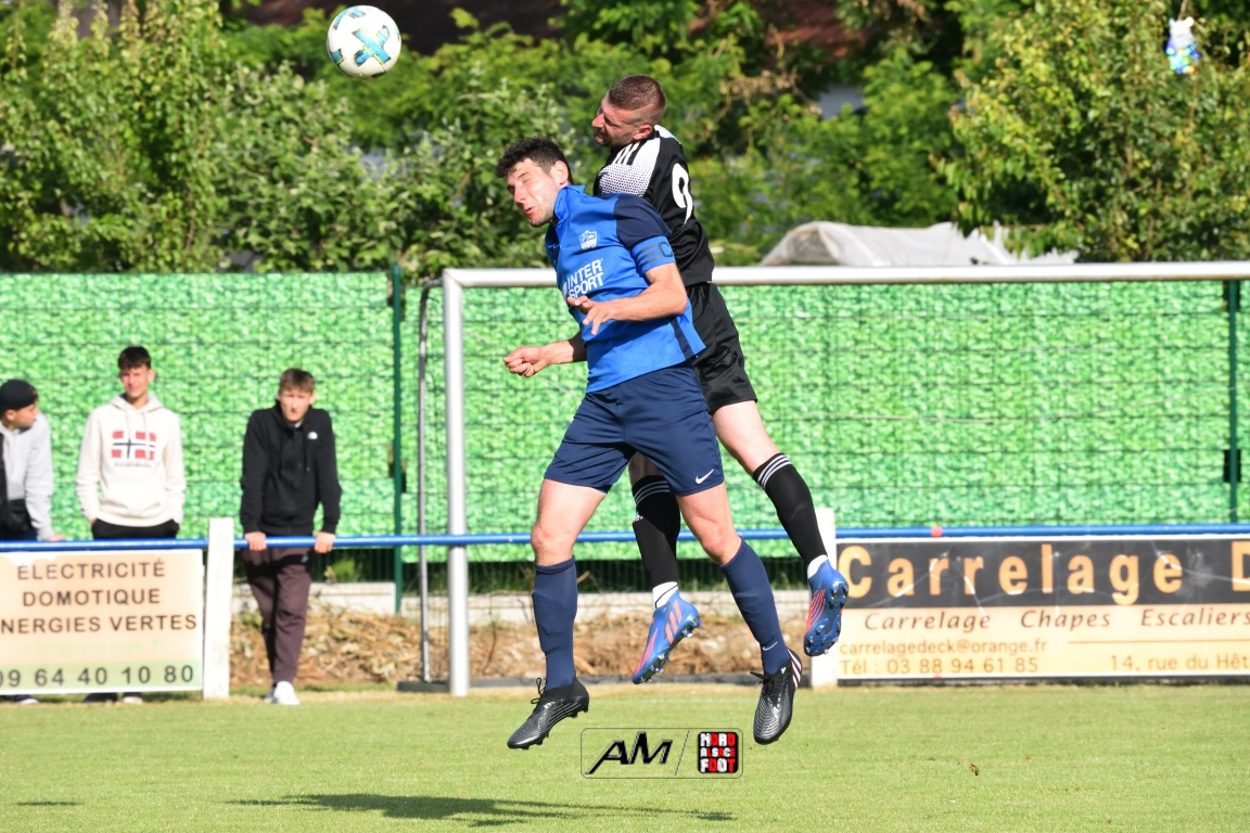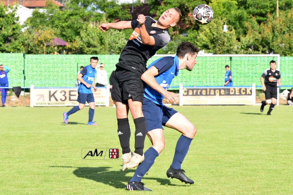 A l’occasion de la vingtième journée de championnat en District 1 (Groupe B), l’entente Mothern/Munchhausen (3e) accueillait l’entente Kaltenhouse/Marienthal (2e) afin de tenter de réduire l’écart avec son adversaires du jour pour continuer à croire à une hypothétique montée à l’étage supérieur (avec beaucoup de si). Après une première période se soldant par un score nul et vierge, les deux équipes continuèrent à se neutraliser jusqu’à la 80e minute de jeu, moment choisi par les visiteurs pour définitivement prendre l’avantage par l’intermédiaire de Steffen Jordan malgré les nombreuses actions développées par les locaux pour espérer égaliser au cours des dix dernières minutes de jeu. Retrouvez, ci-dessous, quelques images de cette rencontre et, pour en apprécier le contenu, veuillez cliquer sur l’une d’entre-elles pour afficher le diaporama.