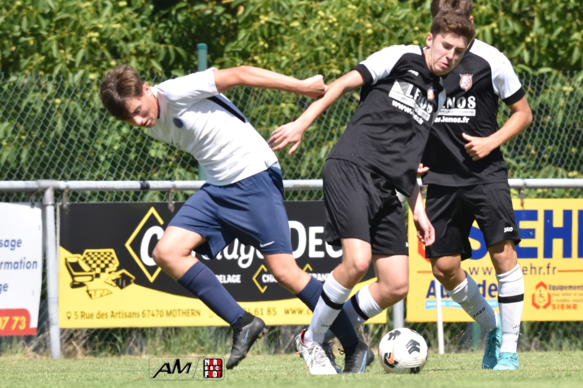 A l’occasion du 80e anniversaire de l’US Schleithal, les U19 du GJAN affrontaient les U18 du FCSR Haguenau afin de tenter de s’adjuger une dernière victoire avant la trêve estivale. Après une première période se soldant par un score nul et vierge, il fallut attendre la dernière minute du temps réglementaire pour voir les jeunes de l’Alsace du Nord ouvrir le score par l’intermédiaire de Weber Noé avant qu’ils ne s’imposent sur le plus petit des scores. Retrouvez, ci-dessous, quelques images de cette rencontre et, pour en apprécier le contenu, veuillez cliquer sur l’une d’entre-elles pour afficher le diaporama.