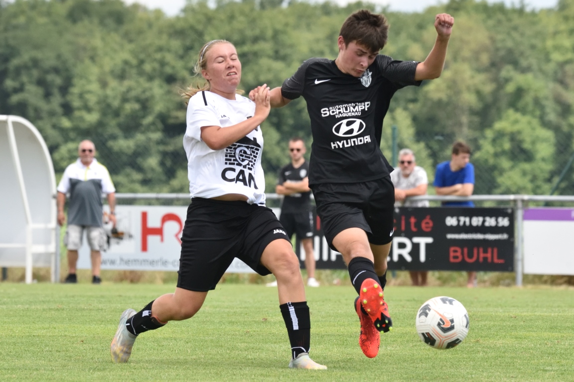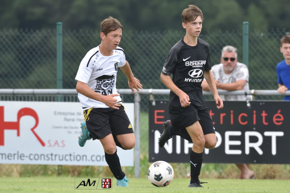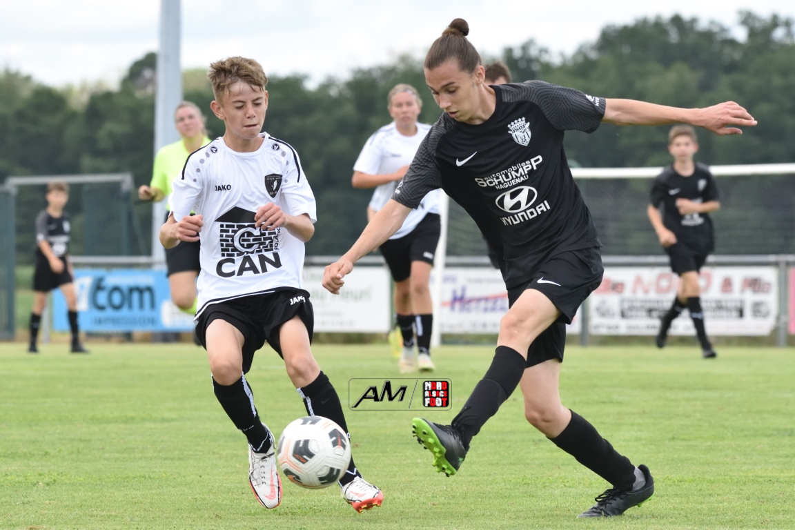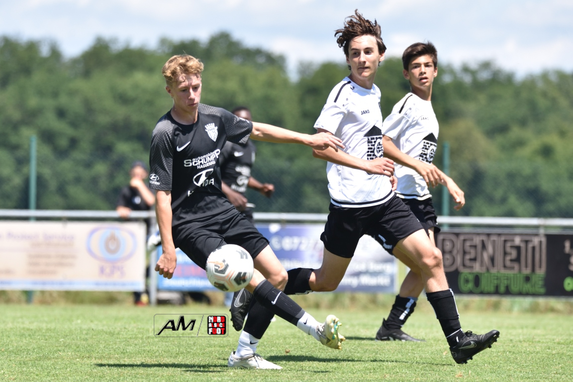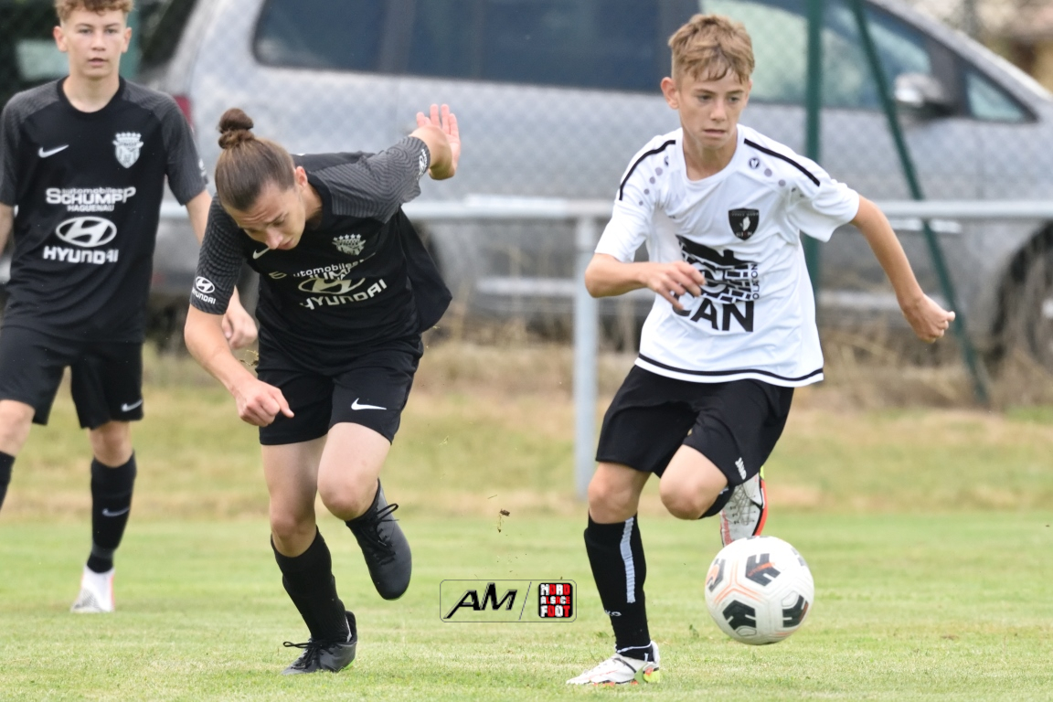 A l’occasion du 80e anniversaire de l’US Schleithal, les U15-2 du GJAN (U15/D3) accueillaient les U15-1 de la Jeunesse Sportive de l’Outre-Forêt (U15/D3) afin de tenter de clôturer le mois de juin par une victoire sur ce dernier match amical. Après une première période se soldant par un avantage confortable en faveur des visiteurs grâce à des réalisations signées Fadel Zongo (7e) et Eyermann Romain (24e), ces derniers allaient corser l’addition en seconde période en ajoutant trois buts au compteur par l’intermédiaire de Fadel Zongo (47e et 66e) et de Guthmuller Yoan (73e) tout en en concédant deux sur ce doublé signé Rempp Aurélien (61e et 70e), ce dernier ne les empêchant pas de s’imposer sur ce score de 2-5! Retrouvez, ci-dessous, quelques images de cette rencontre et, pour en apprécier le contenu, veuillez cliquer sur l’une d’entre-elles pour afficher le diaporama.