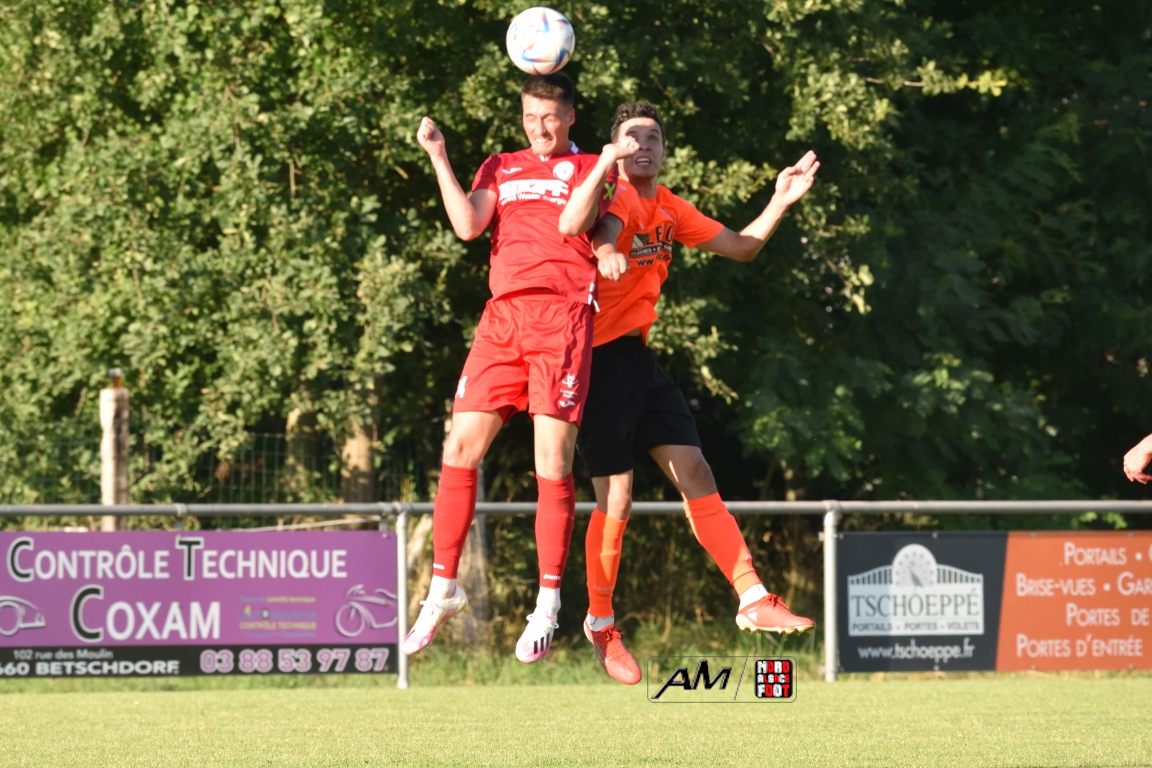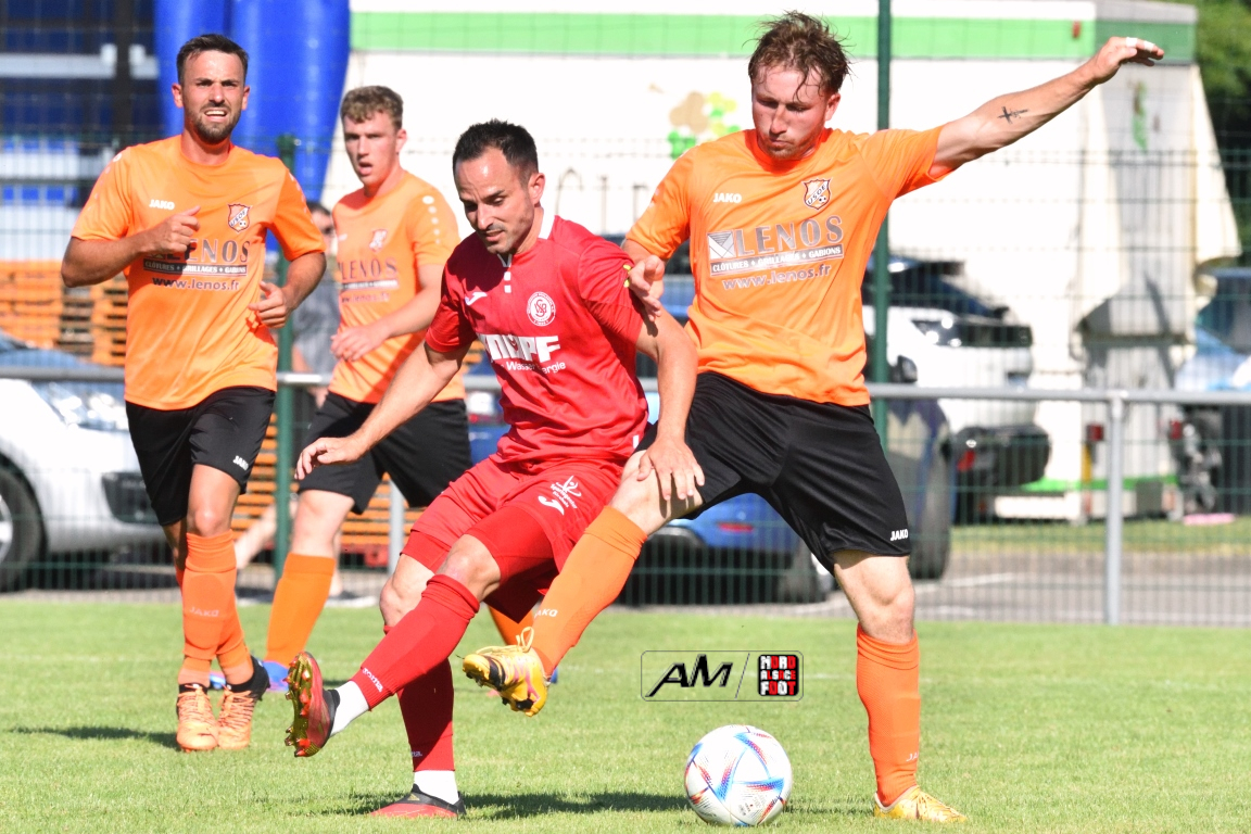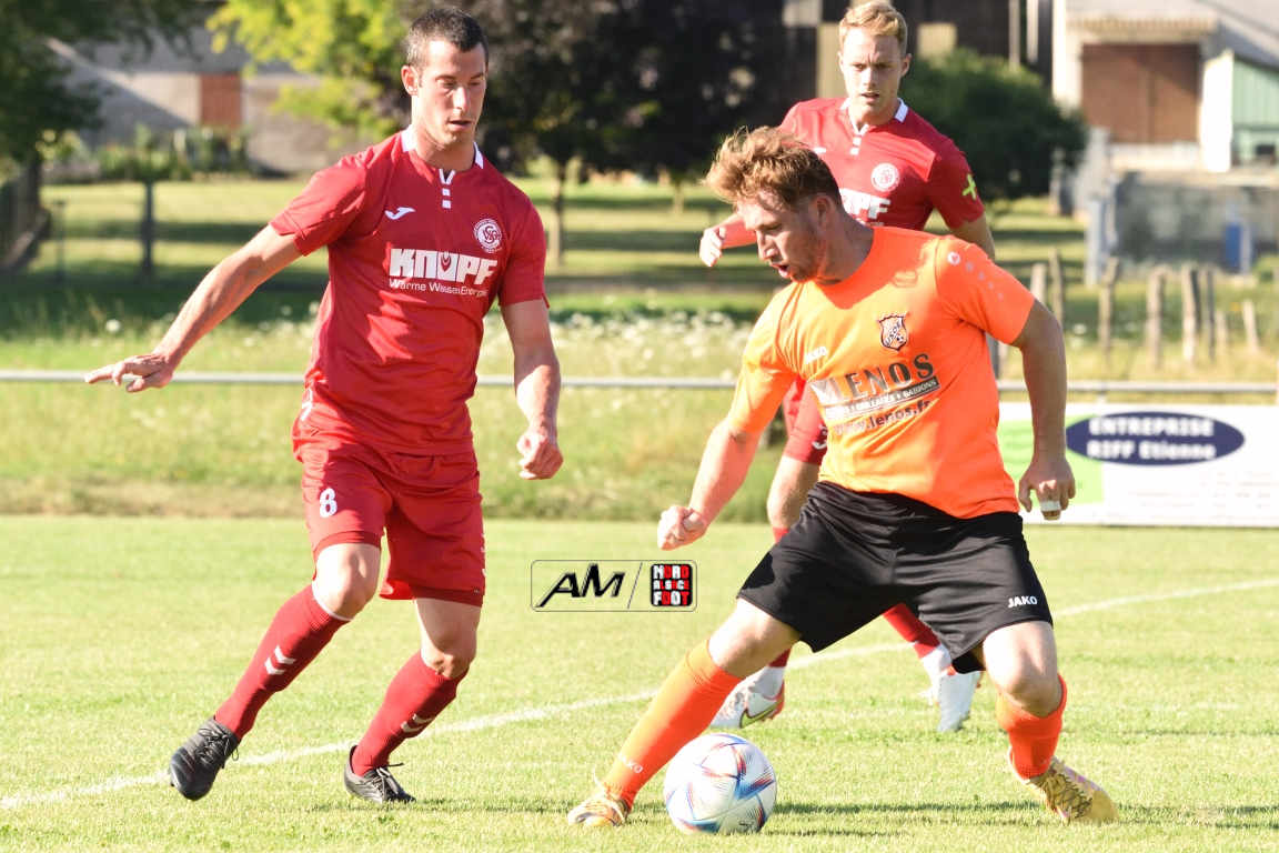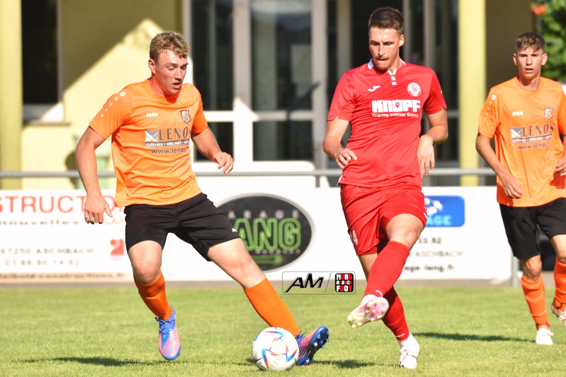 A l’occasion du 50e anniversaire du FC Oberroedern, l’US Oberlauterbach (Régionale 2) affrontait le SV Bühlertal (Verbandsliga Südbaden) pour une rencontre aux allures de match de gala lançant la préparation estivale des hommes à Fabrice Muller, et ce, face à des adversaires voyant le retour à la compétition avancer à grands pas. Après une première période se soldant par un court avantage en faveur des “Oranges” grâce à une réalisation signée Jurczak William (27e), ces derniers allaient faire le break au retour des vestiaires par l’intermédiaire de Renckert Léo (47e) avant que les Allemands ne réussissent à renverser la vapeur par l’intermédiaire de Westermann Nico (59e et 68e) et Keller Philipp (84e), les Bad-Wurtembergeois finissant donc par s’imposer sur ce score de 2-3! Retrouvez, ci-dessous, quelques images de cette rencontre et, pour en apprécier le contenu, veuillez cliquer sur l’une d’entre-elles pour afficher le diaporama.