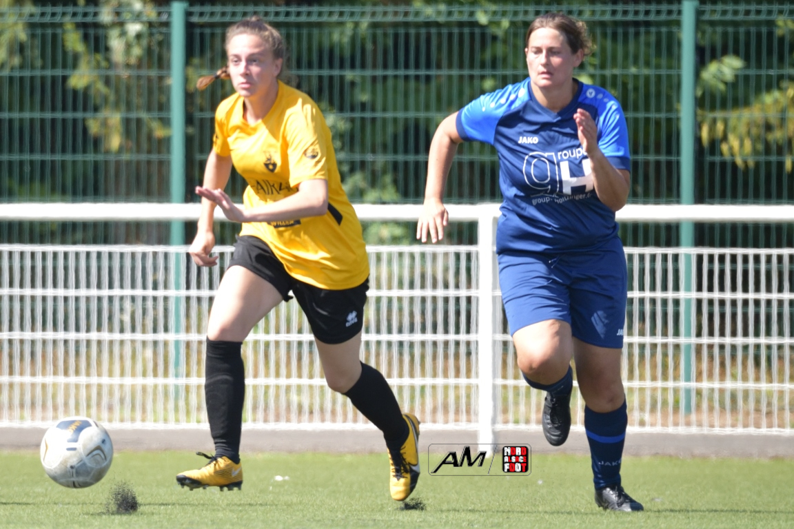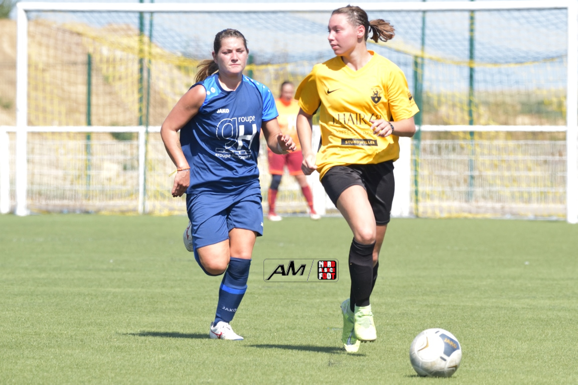 A l’occasion d’un match de préparation, l’AS Hatten F (Régionale 2/F) accueillait l’AS Wingen/s/Moder F (D1/F) afin de tenter de bien débuter cette phase face à une équipe de l’échelon inférieur. Après une première période se soldant par un score de parité grâce à l’ouverture du score des visiteuses signée Dorn Laura (17e) contre une égalisation inscrite par Ahrens Cécilia (28e), les Hattenoises allaient prendre le large en seconde période en ajoutant pas moins de trois buts au compteur par l’intermédiaire de Güller Bulut (51e), de Streissel Hélène (63e) et de Ahrens Cécilia (68e), les protégées de Bonnet Esteban s’imposant finalement sur ce score sans appel de 4-1! Retrouvez, ci-dessous, quelques images de cette rencontre et, pour en apprécier le contenu, veuillez cliquer sur l’une d’entre-elles pour afficher le diaporama.