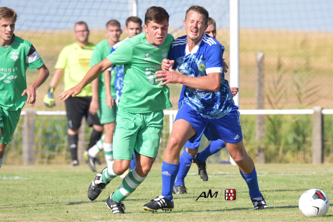 A l’occasion du premier tour de la Coupe de France, le SC Rittershoffen (District 3) accueillait le FC Seltz (Régionale 3) afin de tenter d’effacer les trois divisions d’écart face à des adversaires voulant lancer leur saison de la meilleure des manières. Après une première période se soldant par un court avantage en faveur des Seltzois grâce à un but signé Corneille Luc (38e), ces derniers allaient prendre le large en seconde période en ajoutant cinq buts au compteur par l’intermédiaire de Taibi Soufian (46e), de Le Terrier Mathys (71e), de Mansour Fawaz (77e, 81e) et de Wolf Benjamin (87e), cette avalanche de buts permettant aux hommes de Sturm Claude de se qualifier en disposant de leurs adversaires du jour sur ce score sans appel de 0-6! Retrouvez, ci-dessous, quelques images de cette rencontre et, pour en apprécier le contenu, veuillez cliquer sur l’une d’entre-elles pour afficher le diaporama.