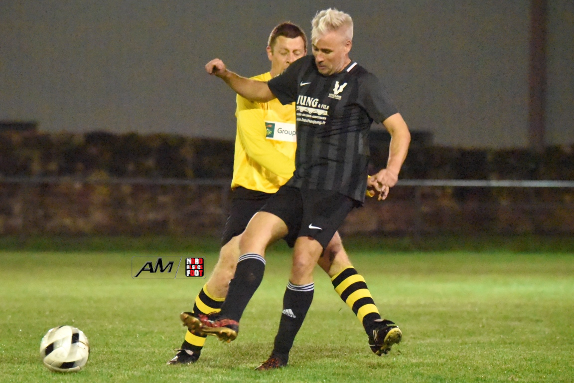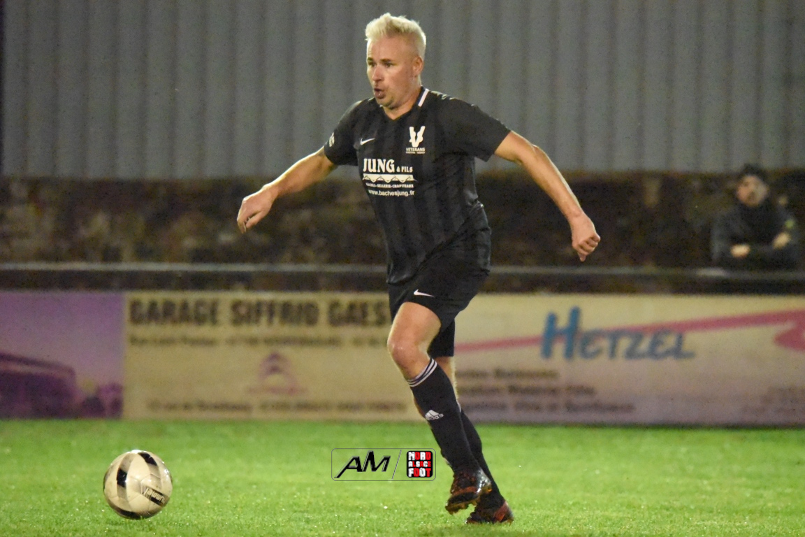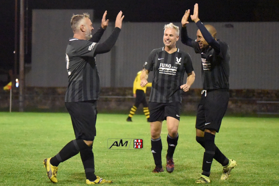 A l’occasion de la cinquième journée de championnat chez les Vétérans (Groupe D), l’entente Wissembourg/ESTALT 51 (5e) accueillait l’entente Schleithal/E2SO 51 (4e) pour une rencontre aux allures de derby qu’aucune des deux équipes ne comptaient négliger à deux journées de la trêve hivernale. Après une première période se soldant par un score nul et vierge, les visiteurs allaient prendre le large en début de seconde période par l’intermédiaire de Wagner Thierry (37e) et de Lejal Christophe (42e) avant que les locaux ne réduisent la marque par l’intermédiaire de Hoff Vincent (48e) et, à l’entame du dernier quart d’heure de jeu, Wagner Thierry allait inscrire un doublé en transformant un penalty, cette dernière réalisation permettant finalement à l’entente Schleithal/E2SO de s’imposer sur ce score de 1-3! Retrouvez, ci-dessous, quelques images de cette rencontre et, pour en apprécier le contenu, veuillez cliquer sur l’une d’entre-elles pour afficher le diaporama.