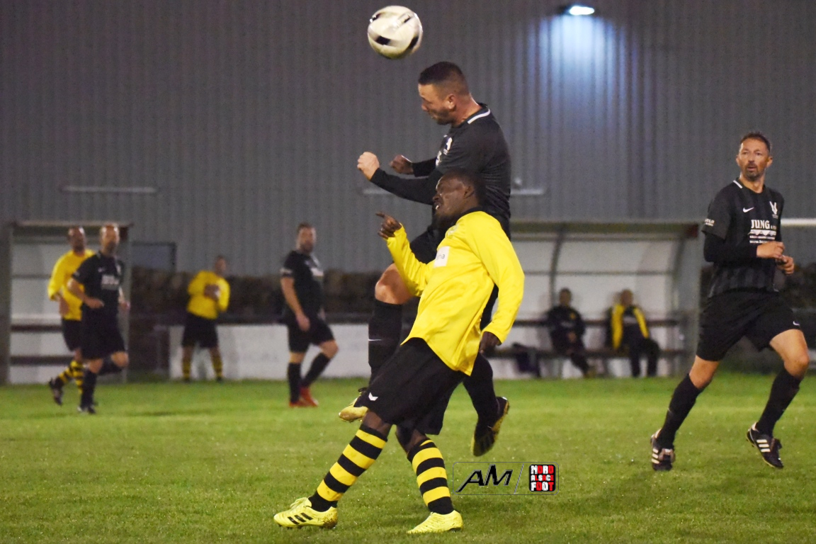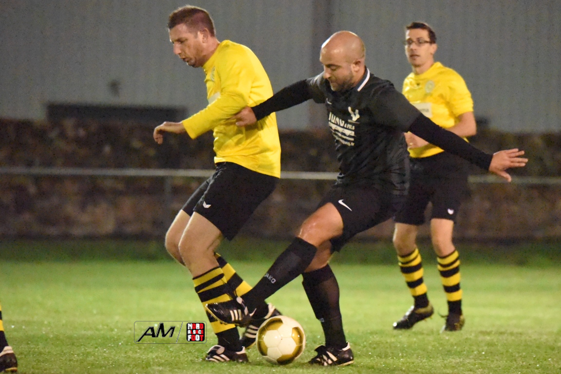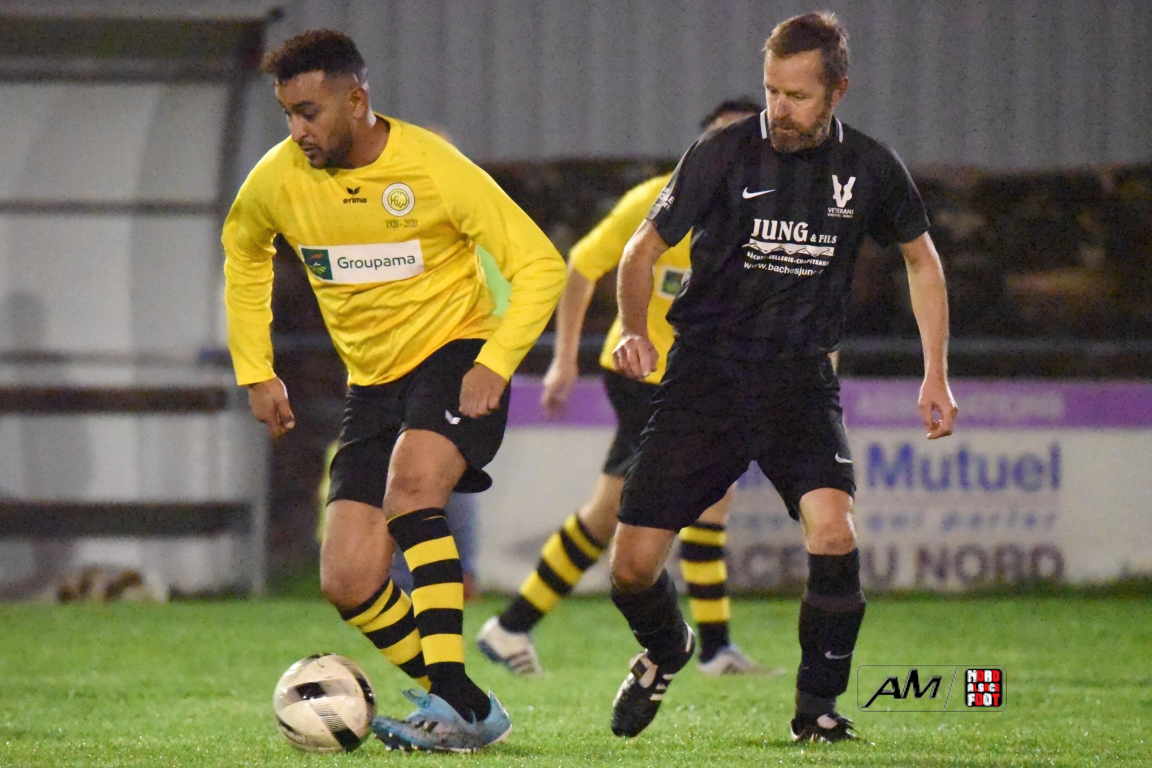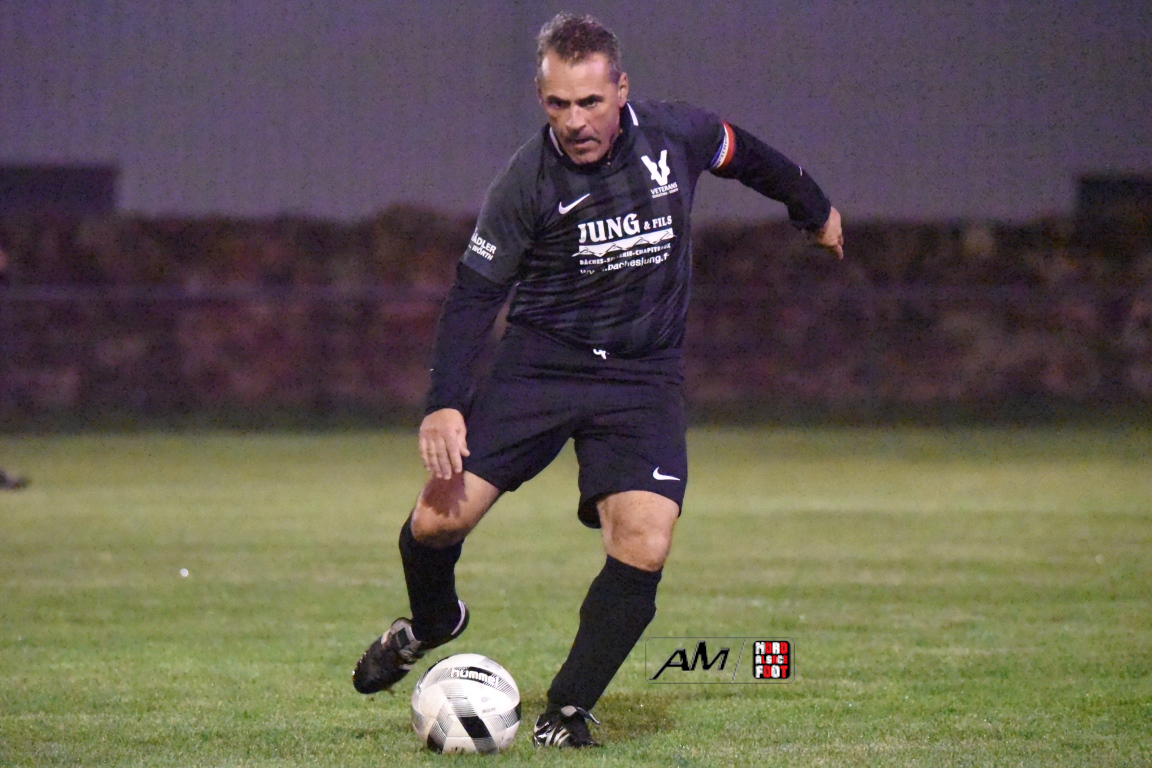 A l’occasion de la cinquième journée de championnat chez les Vétérans (Groupe D), l’entente Wissembourg/ESTALT 51 (5e) accueillait l’entente Schleithal/E2SO 51 (4e) pour une rencontre aux allures de derby qu’aucune des deux équipes ne comptaient négliger à deux journées de la trêve hivernale. Après une première période se soldant par un score nul et vierge, les visiteurs allaient prendre le large en début de seconde période par l’intermédiaire de Wagner Thierry (37e) et de Lejal Christophe (42e) avant que les locaux ne réduisent la marque par l’intermédiaire de Hoff Vincent (48e) et, à l’entame du dernier quart d’heure de jeu, Wagner Thierry allait inscrire un doublé en transformant un penalty, cette dernière réalisation permettant finalement à l’entente Schleithal/E2SO de s’imposer sur ce score de 1-3! Retrouvez, ci-dessous, quelques images de cette rencontre et, pour en apprécier le contenu, veuillez cliquer sur l’une d’entre-elles pour afficher le diaporama.