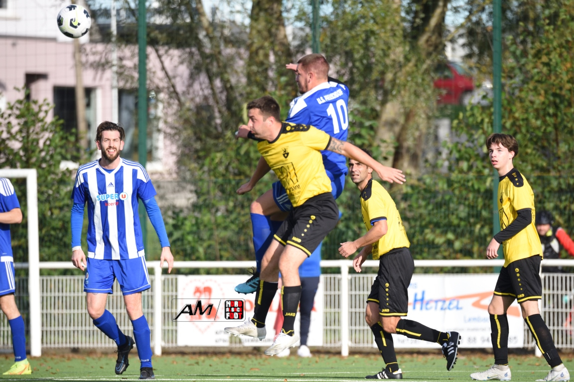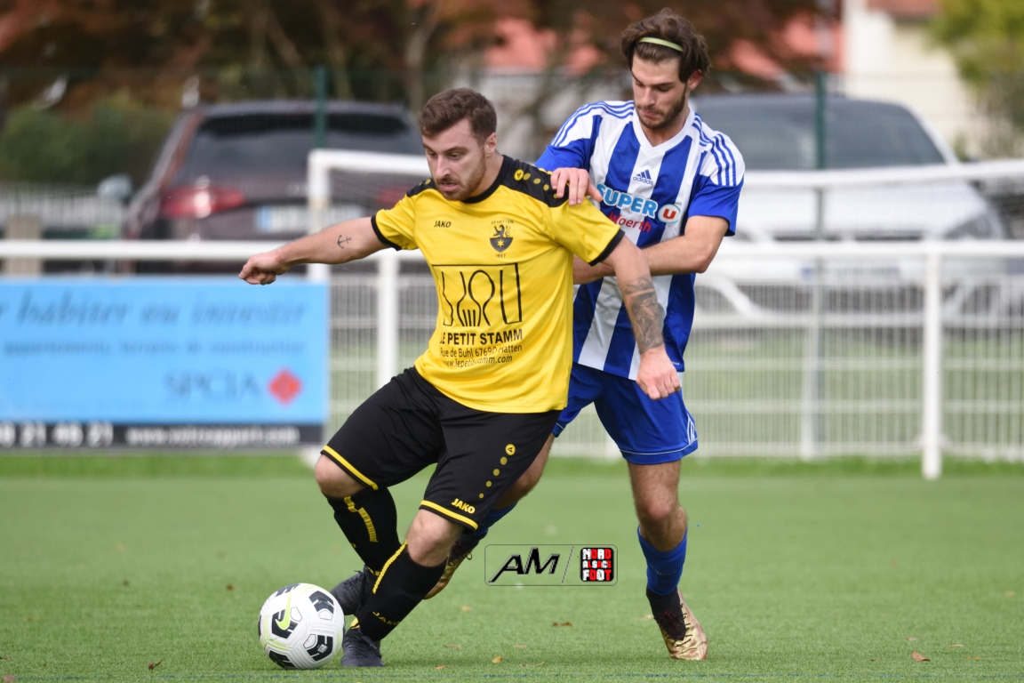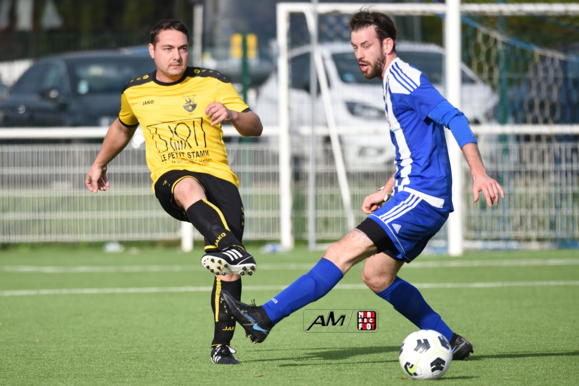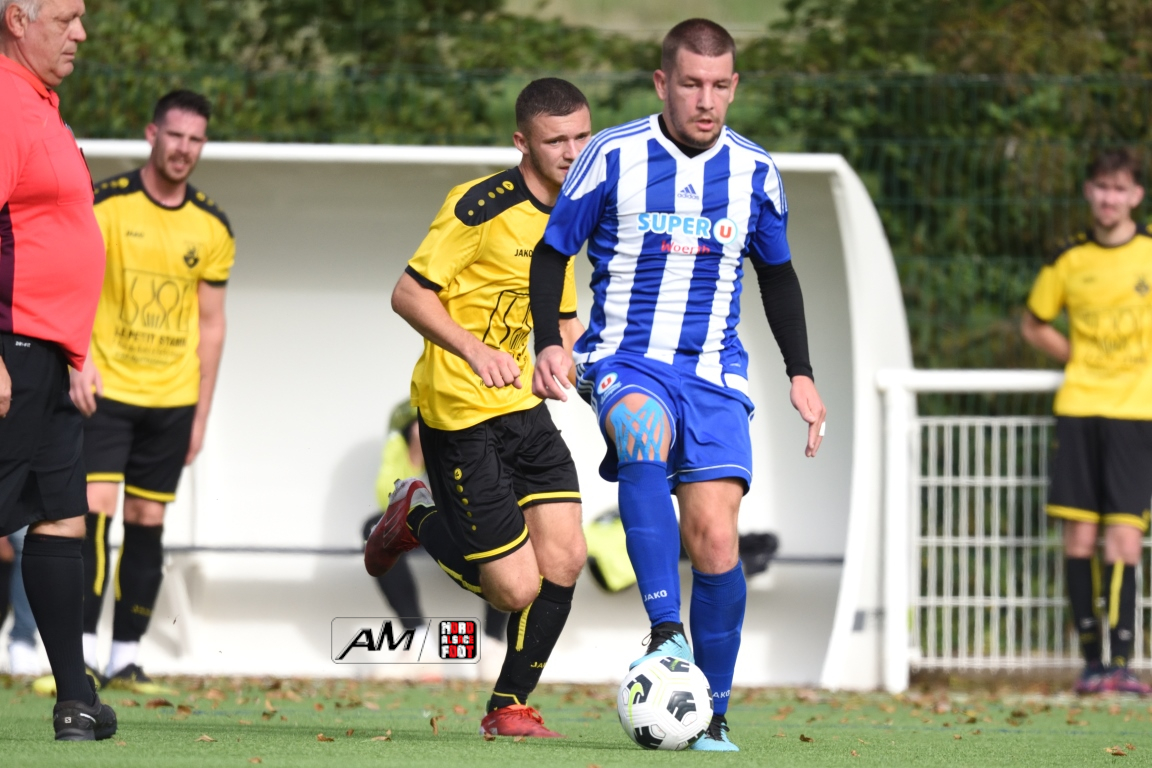 A l’occasion de la cinquième journée de championnat en District 8 (Groupe C), l’US Preuschdorf 3 accueillait l’AS Hatten 2 afin de faire perdurer leur série d’invincibilité (4 matchs, 4 victoires), et ce, face à des adversaires pouvant réduire l’écart avec le trio de tête en faveur d’une victoire ce dimanche. Après une première période se soldant par un léger avantage en faveur des locaux grâce à des réalisations locales signées Spielmann Jordan (3e) et Nunge Jonathan (39e) contre un but inscrit par Dubois Nicolas (31e) pour les visiteurs, les locaux allaient faire le break à la 64e minute de jeu par l’intermédiaire de Nasra Yanis avant que Schmitt Axel ne redonne de l’espoir aux visiteurs à la 79e minute de jeu mais ce fut sans compter sur Nunge Jonathan, le meneur de jeu s’offrant un doublé à la 86e minute de jeu, cette dernière réalisation permettant finalement à l’US Preuschdorf 3 de s’imposer sur ce score de 4-2! Retrouvez, ci-dessous, quelques images de cette rencontre et, pour en apprécier le contenu, veuillez cliquer sur l’une d’entre-elles pour afficher le diaporama.