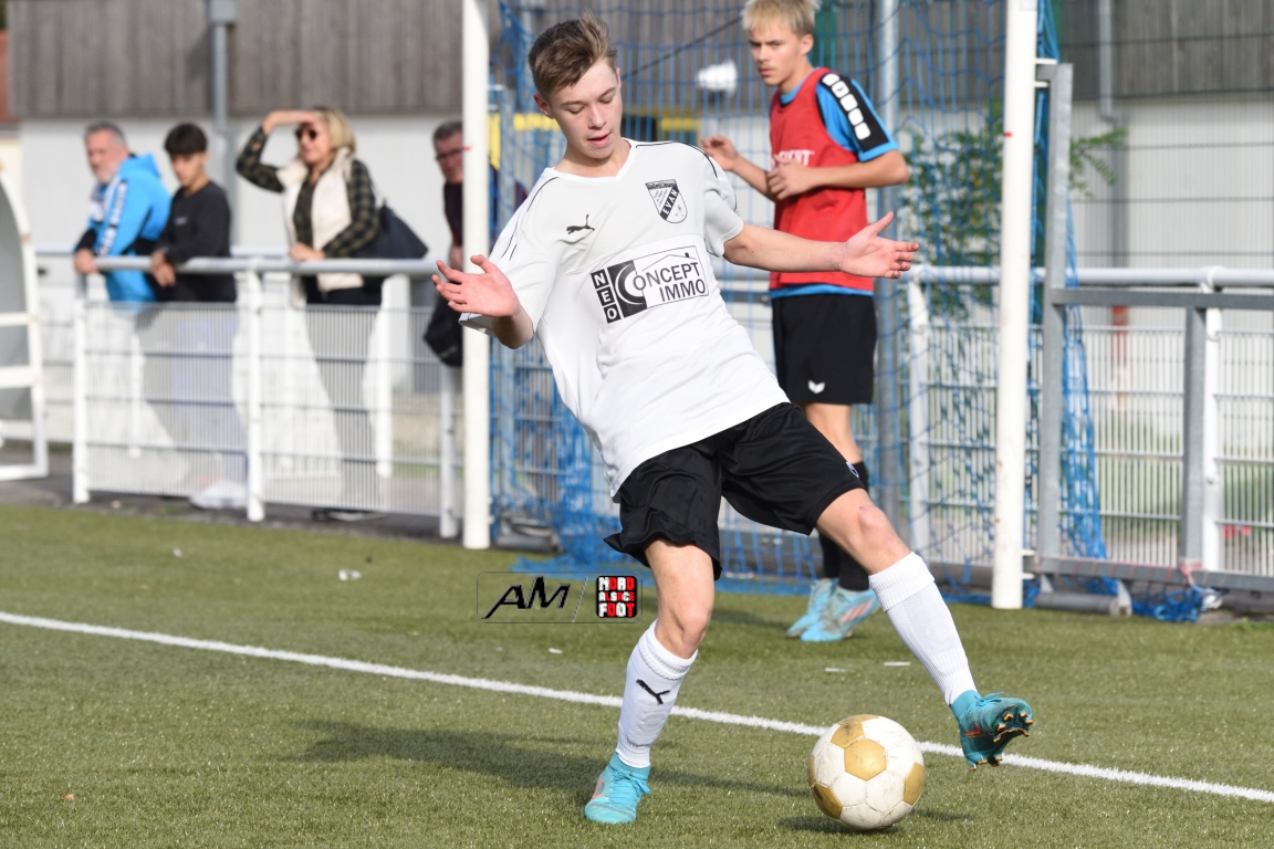 A l’occasion de la sixième journée de championnat chez les U18/D2 (Groupe A), le Groupement Jeunes d’Alsace du Nord accueillait le FA Val de Moder afin de tenter de s’adjuger un premier succès cette saison (hors forfait), et ce, face à des adversaires cherchant à confirmer leur récent succès décroché du côté de Herrlisheim il y a deux semaines (3-5). Après une première période se soldant par un avantage confortable en faveur des visiteurs (0-2), ces derniers allaient corser l’addition à quatre reprises tout en encaissant deux buts au cours du second acte avant qu’ils ne finissent finalement par s’imposer sur ce score de 2-6! Retrouvez, ci-dessous, quelques images de cette rencontre et, pour en apprécier le contenu, veuillez cliquer sur l’une d’entre-elles pour afficher le diaporama.