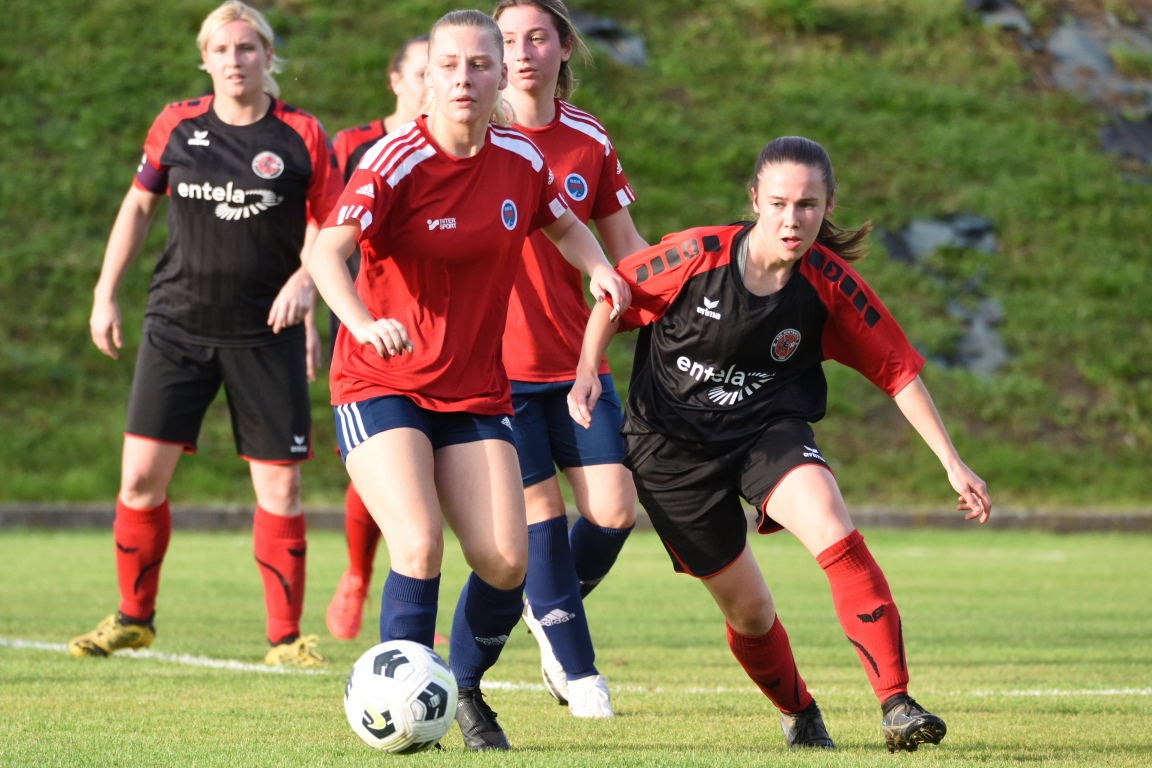 | 58′ | Euphoriques, les visiteuses allaient priver leurs hôtesses de ballon au milieu de terrain avant qu’elles ne soient en mesure de lancer un assaut sur la gauche par l’intermédiaire de Stengel Laura, cette dernière s’avançant le ballon sur plusieurs mètres dans le couloir avant de glisser le ballon dans la course de Ruhf Perrine, l’attaquante pénétrant ensuite dans la surface de réparation pour y battre Muths Marie d’une frappe sèche, 3-3! | |