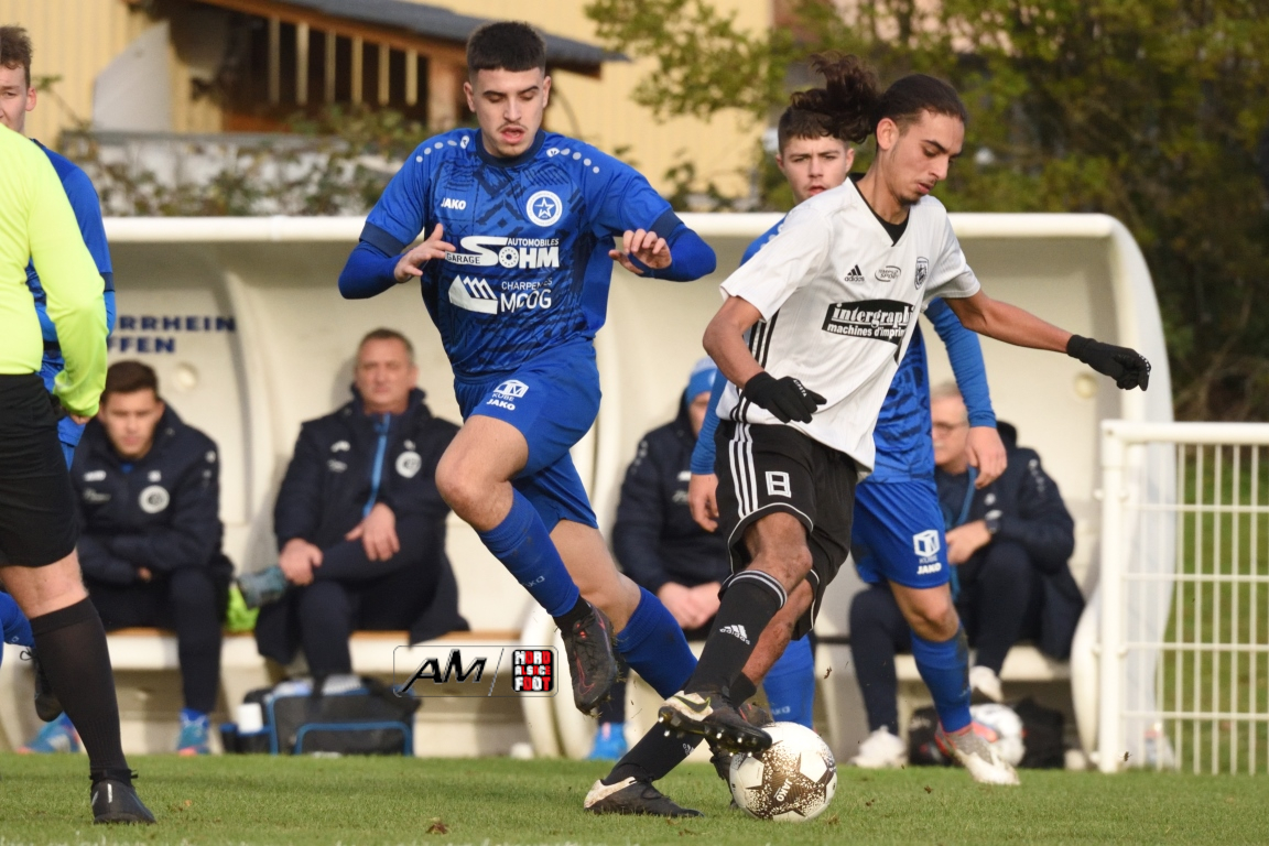 A l’occasion de la neuvième journée de championnat en District 1 (Groupe B), les doublures du FCE Schirrhein-Schirrhoffen (7e) accueillaient le SR Hoenheim (1er) afin de tenter de mettre un terme à cette série de trois matchs sans succès, et ce, face à des adversaires voulant faire perdurer leur belle série de trois matchs couronnés de trois victoires. Après une première période se soldant par un large avantage en faveur des visiteurs grâce à des réalisations signées Loua Fassou Olivier (12e) et Bursa Abidin (17e, 35e), ces derniers allaient corser l’addition en seconde période en ajoutant un but au compteur par l’intermédiaire de Bursa Abidin (88e) avant qu’ils ne finissent par s’imposer sur ce score de 0-4! Retrouvez, ci-dessous, quelques images de cette rencontre et, pour en apprécier le contenu, veuillez cliquer sur l’une d’entre-elles pour afficher le diaporama.